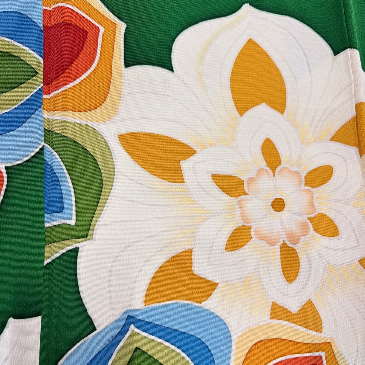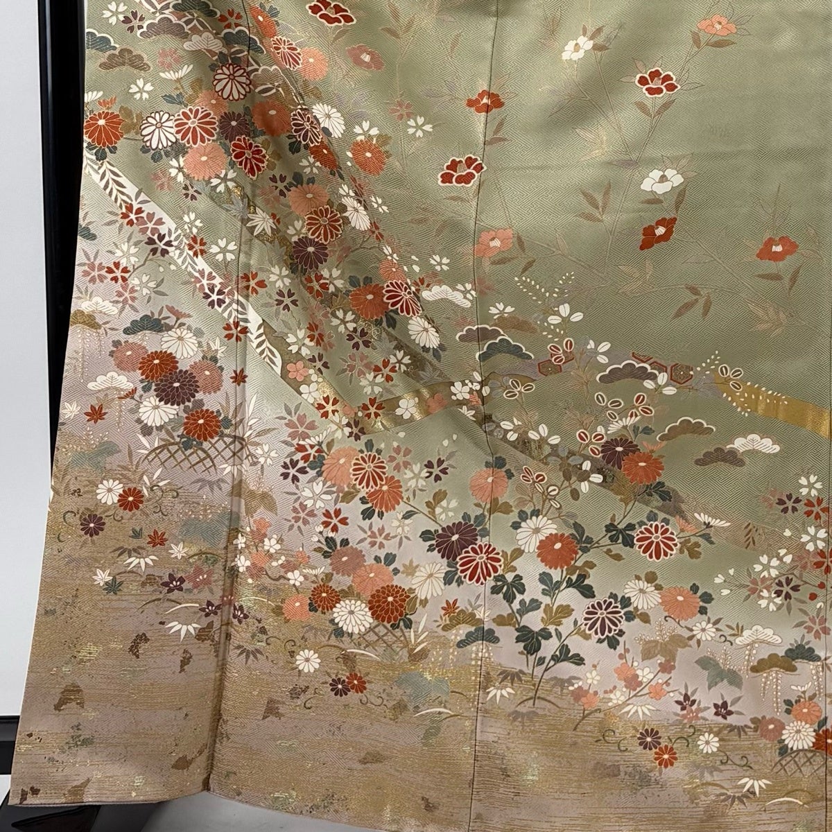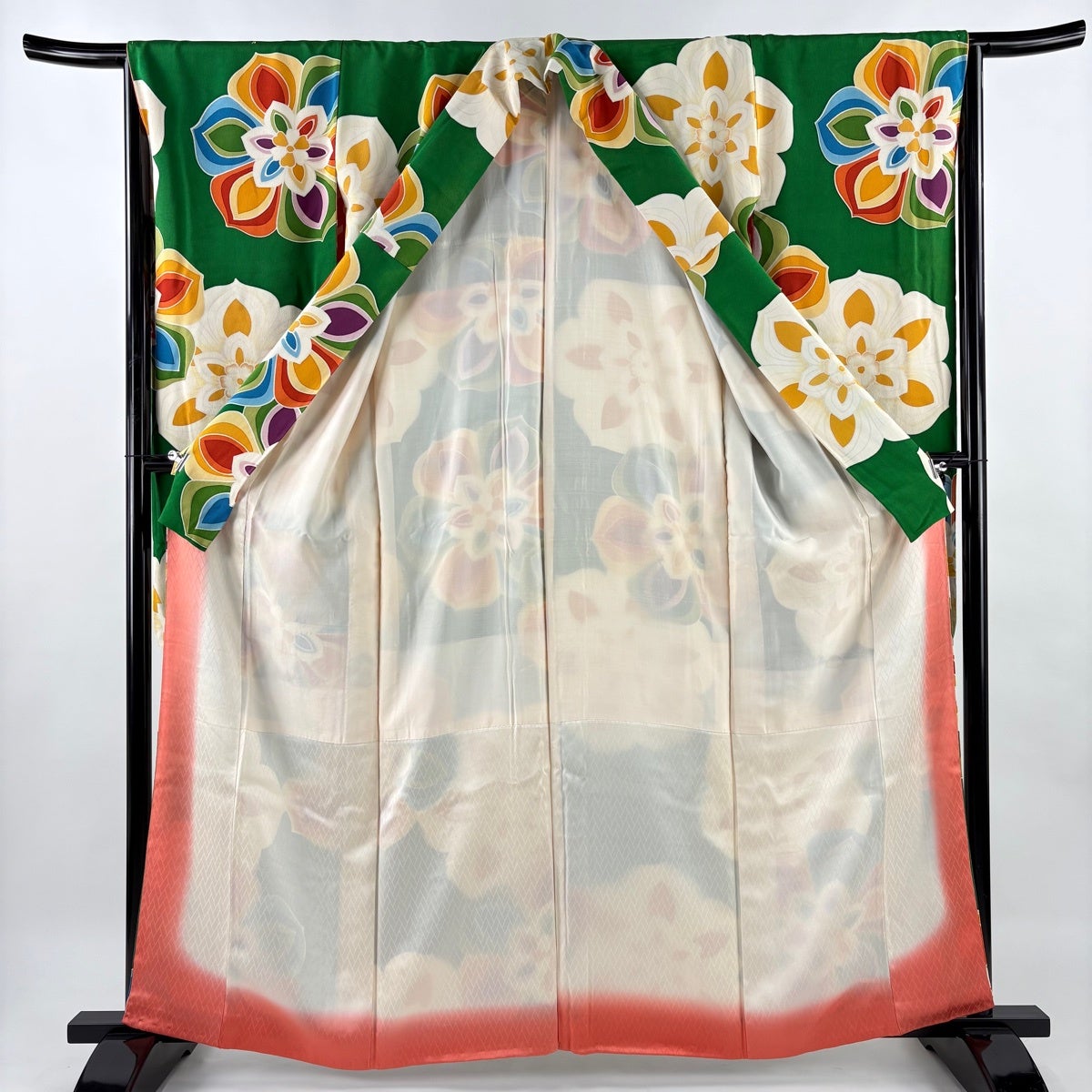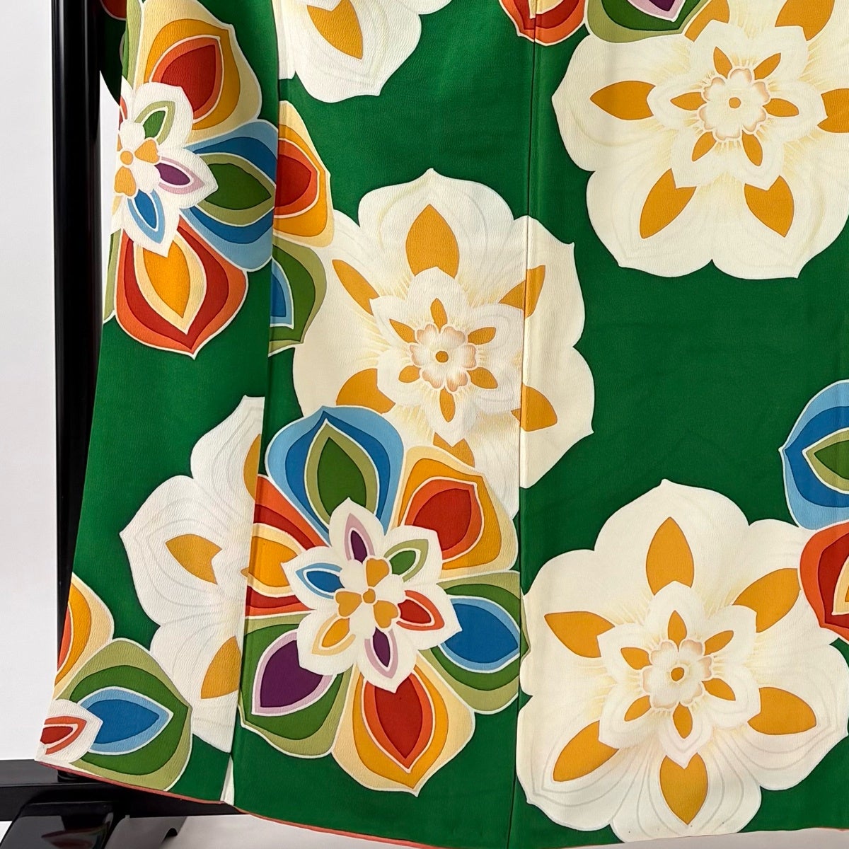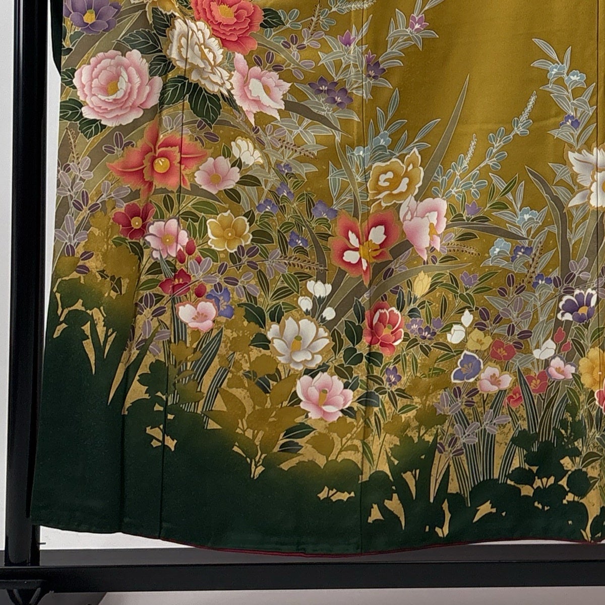振袖 身丈162cm 裄丈64.5cm M 袷 花 緑 正絹 秀品