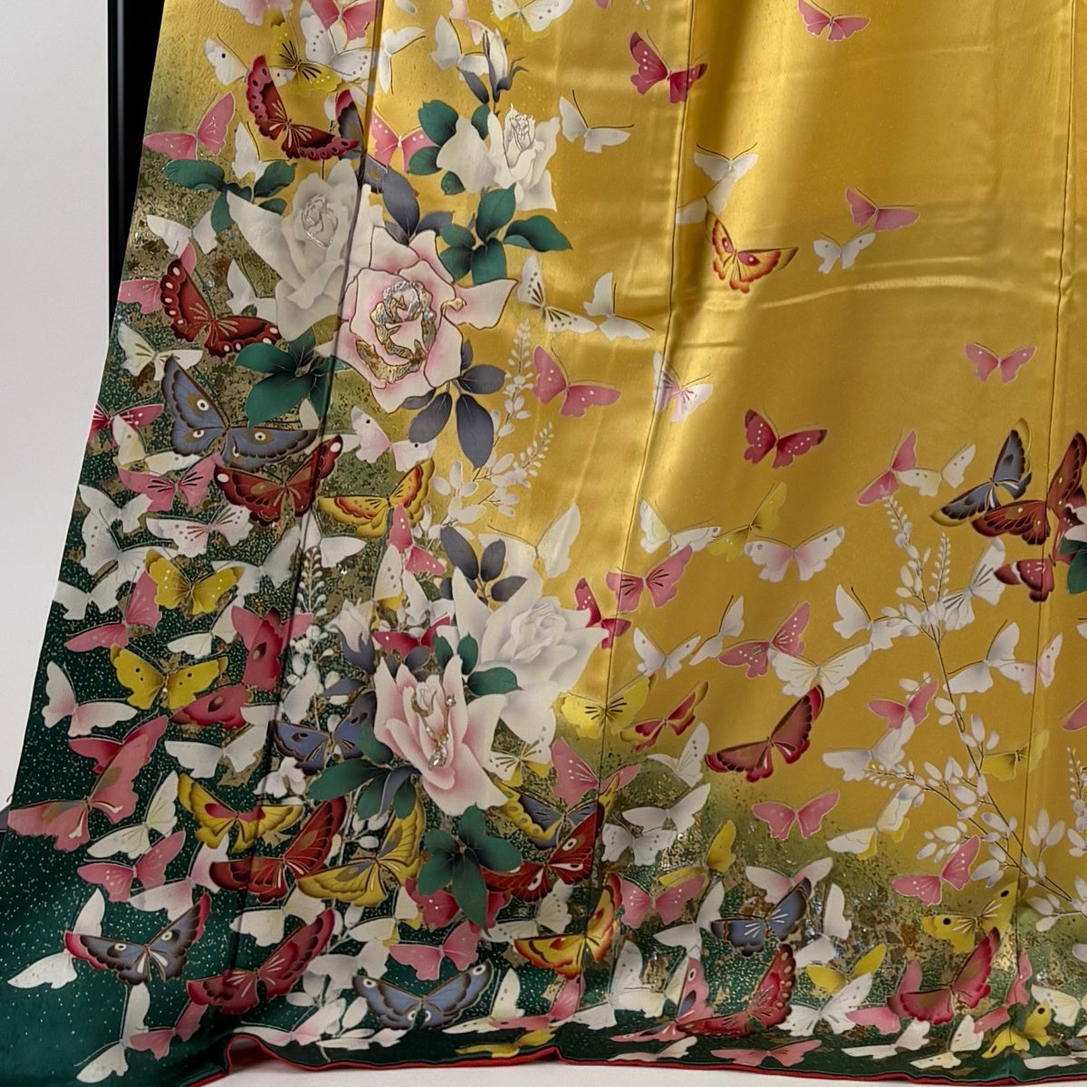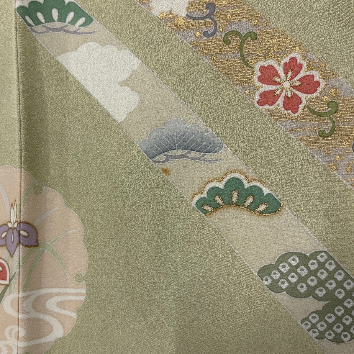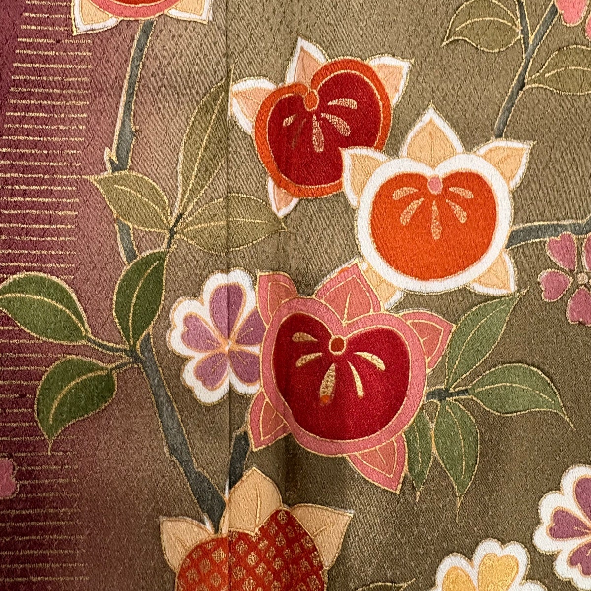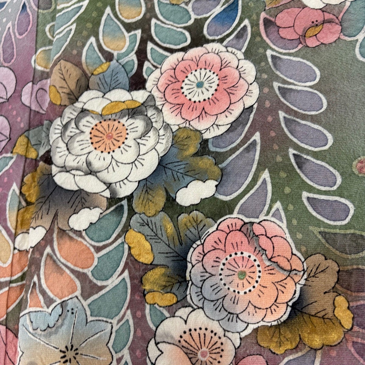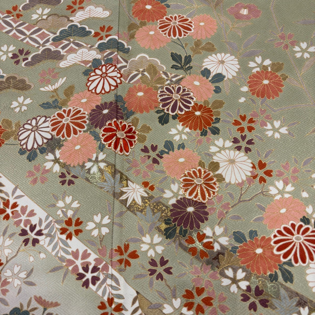 振袖 身丈162cm 裄丈64.5cm M 袷 花 緑 正絹 秀品