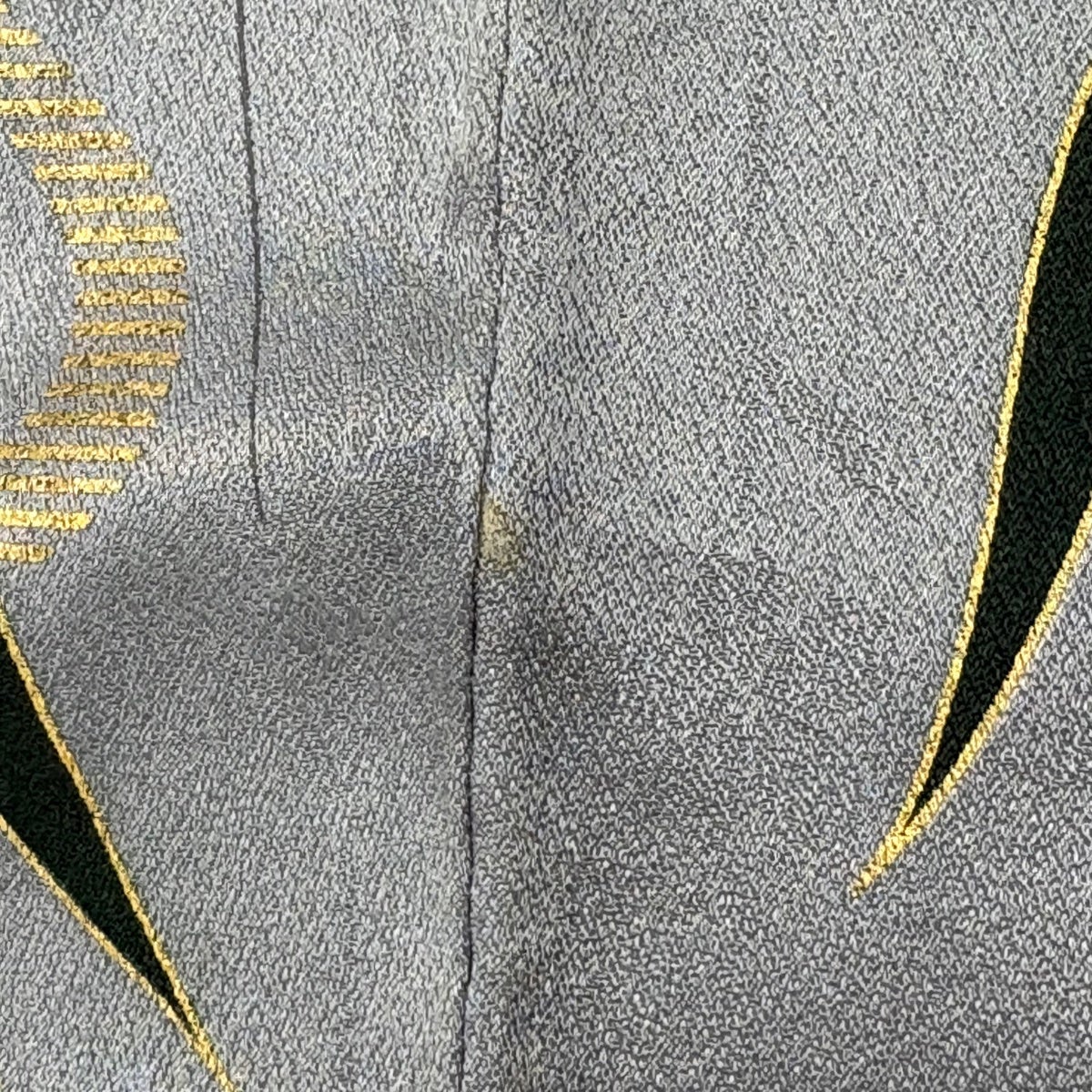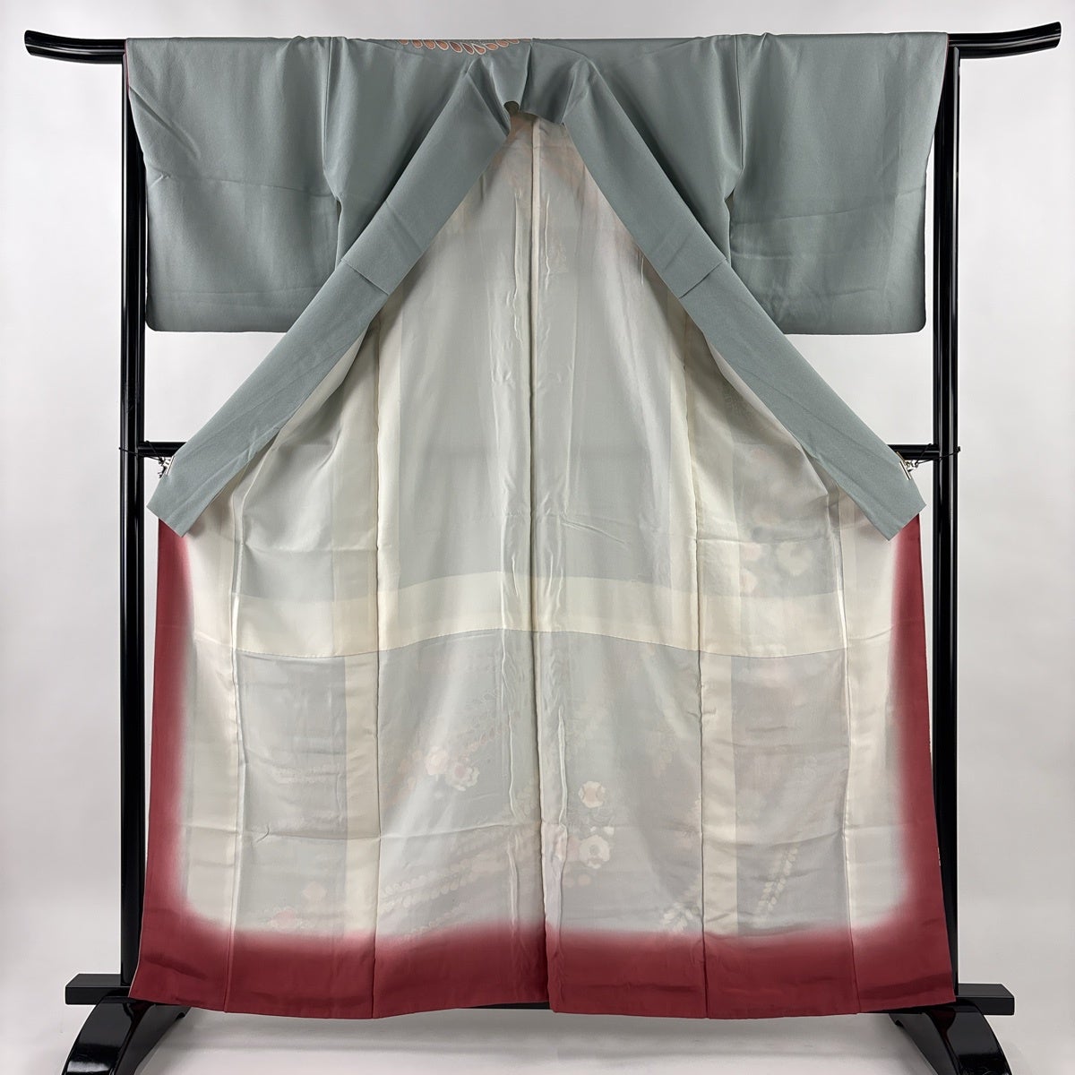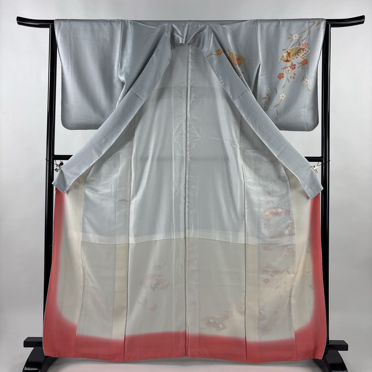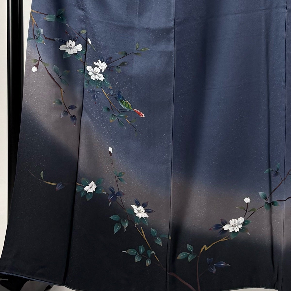 訪問着 身丈163cm 裄丈68cm L 袷 枝花 鳥 金彩 ぼかし 青灰色 正絹 秀品