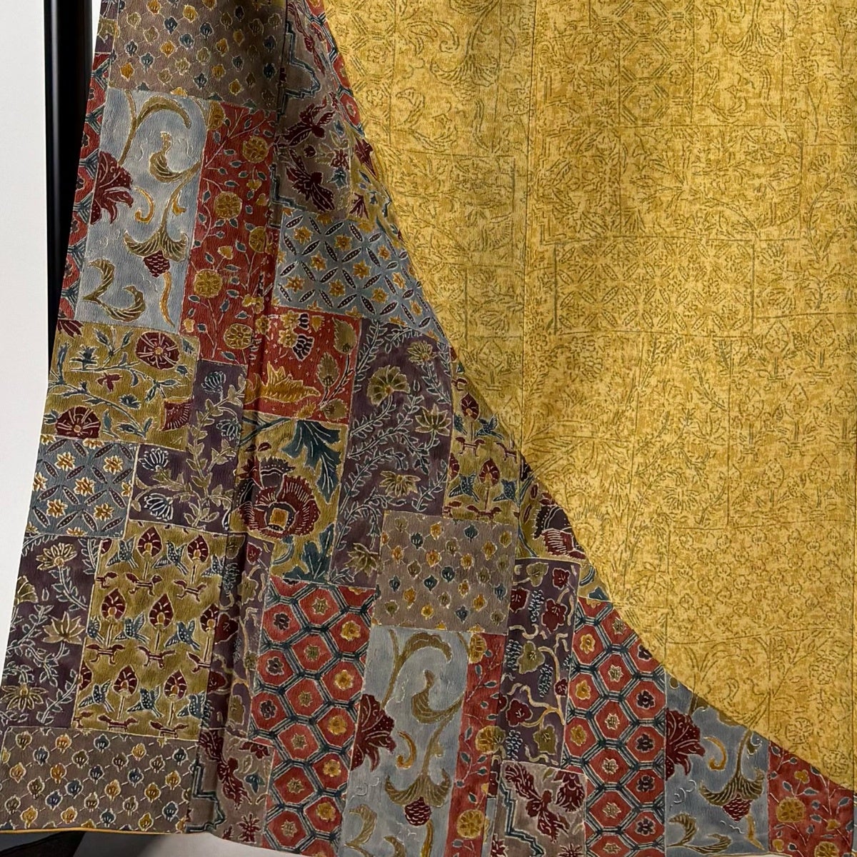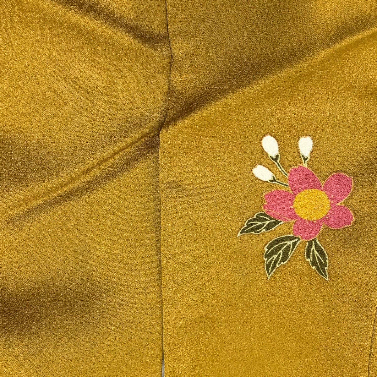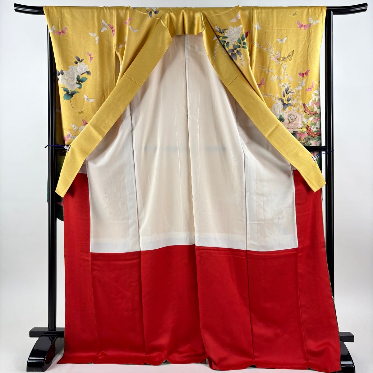 訪問着 身丈166cm 裄丈64.5cm M 袷 草花 鳥 染め分け 黄土色 正絹 秀品