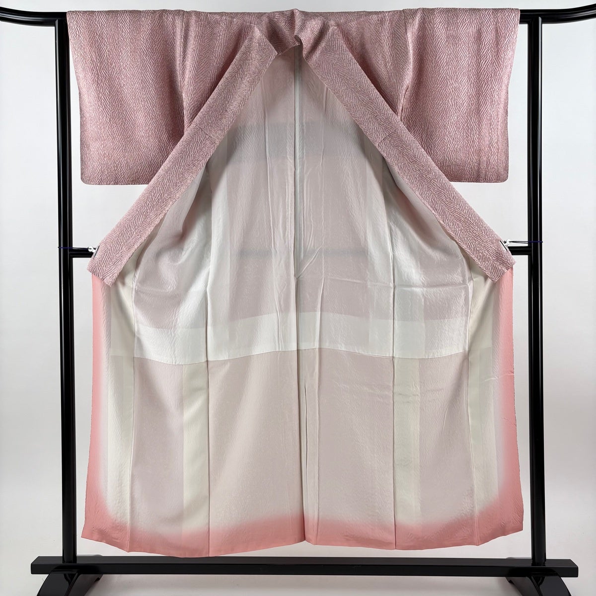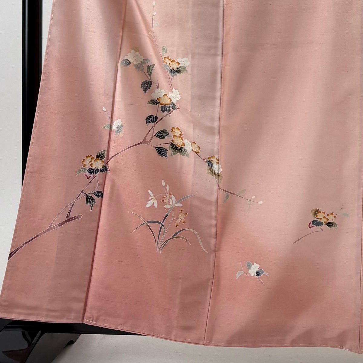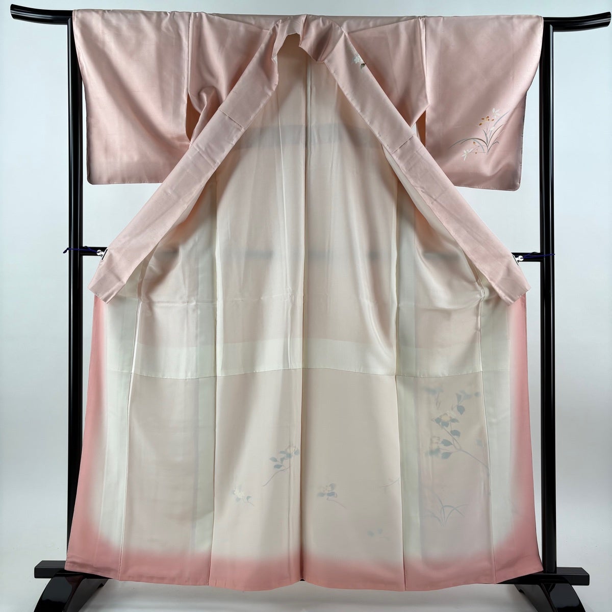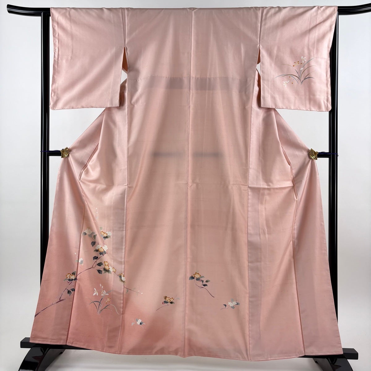 付下げ 身丈162.5cm 裄丈65cm M 袷 紬地 枝花 草花 ぼかし ピンク 正絹 秀品