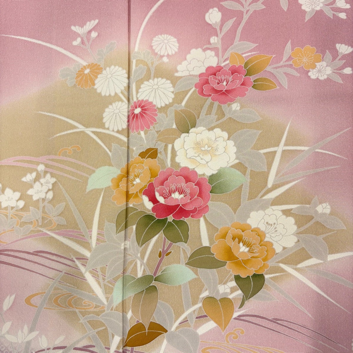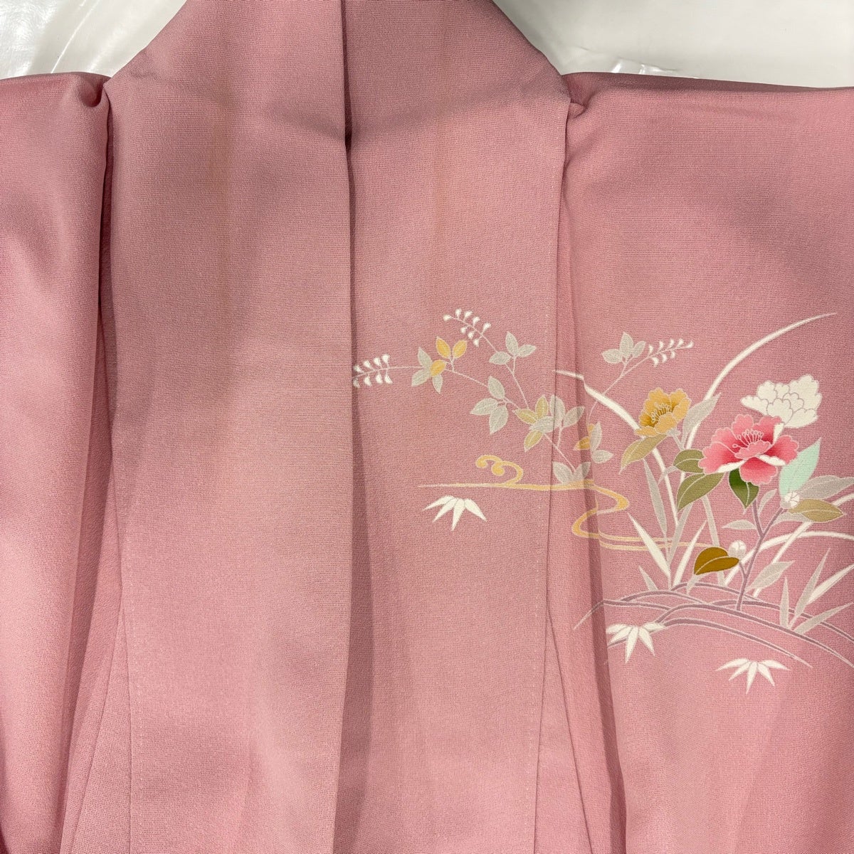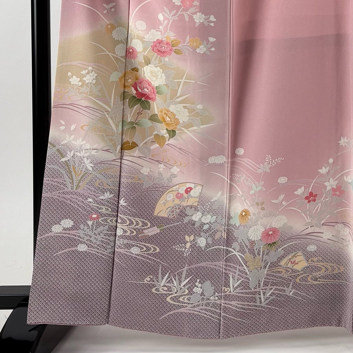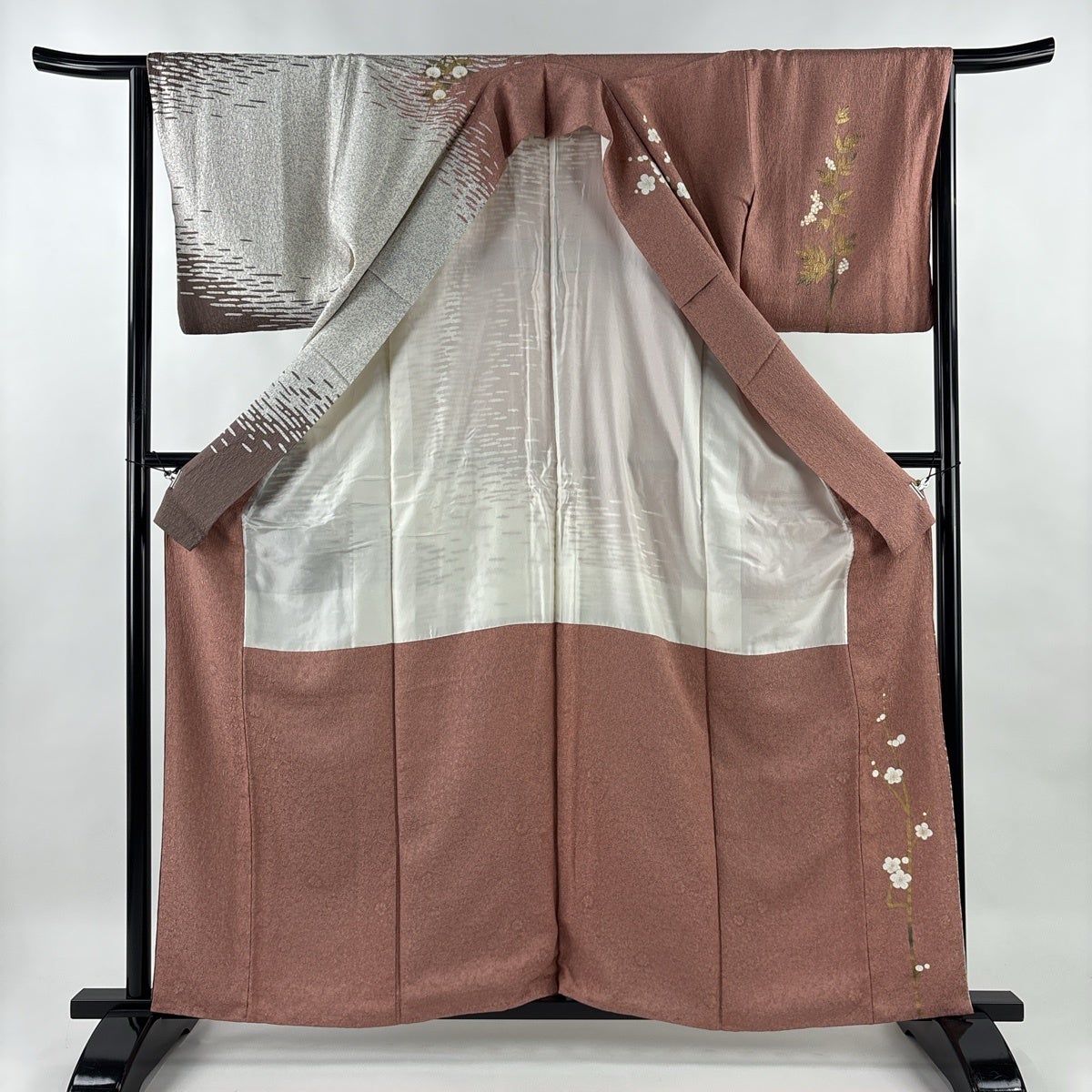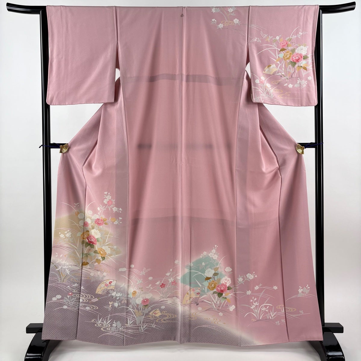 付下げ 身丈162.5cm 裄丈65cm M 袷 紬地 枝花 草花 ぼかし ピンク 正絹 秀品