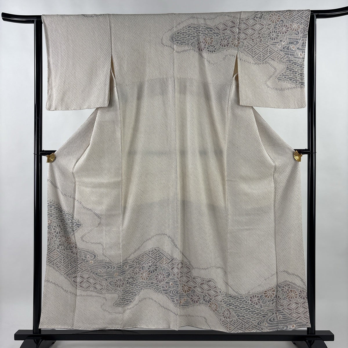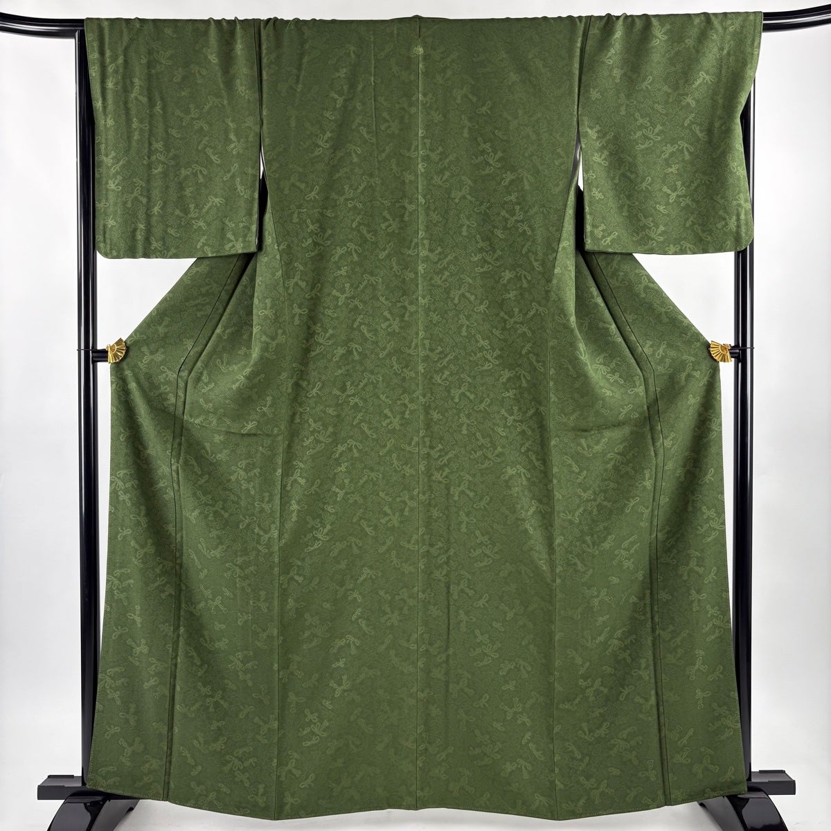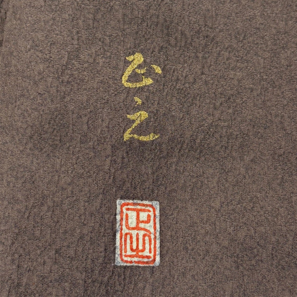 訪問着 身丈155cm 裄丈64cm M 袷 南部幸雄 落款あり 松竹梅 露芝 縮緬 灰茶 正絹 秀品