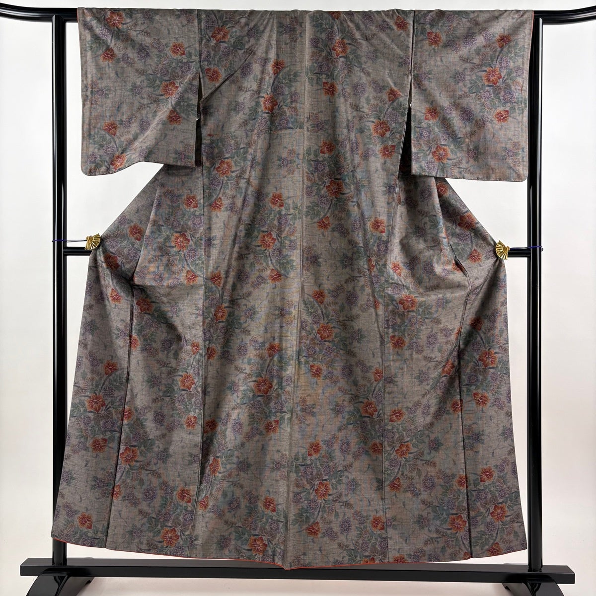 【美品】 紬 身丈156.5cm 裄丈63cm S 袷 草花 灰紫 正絹 秀品