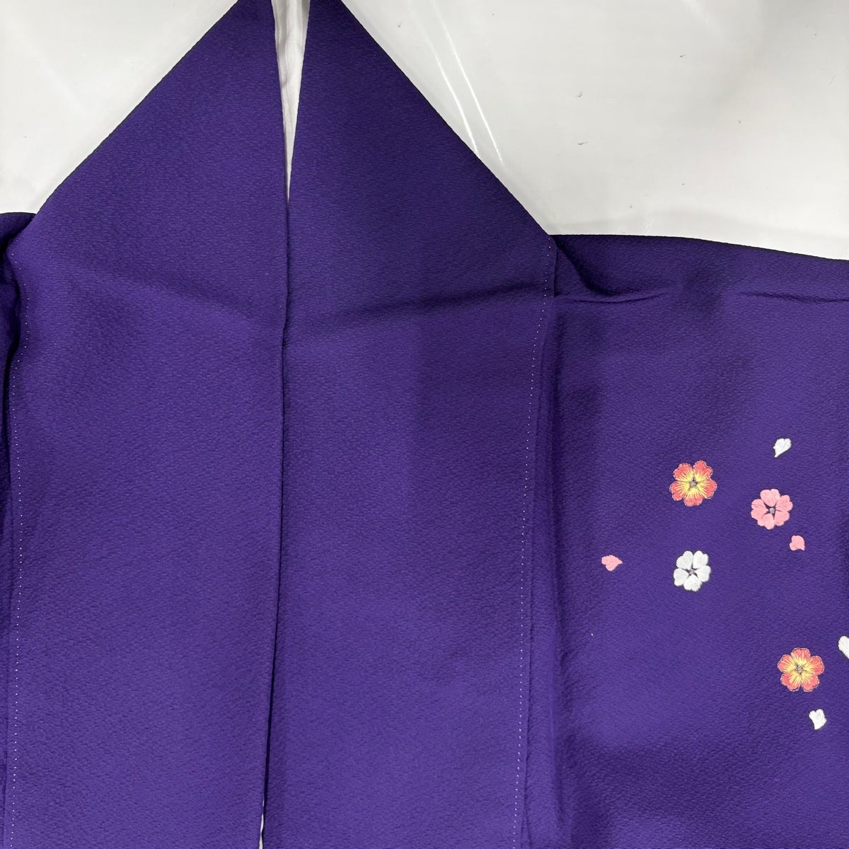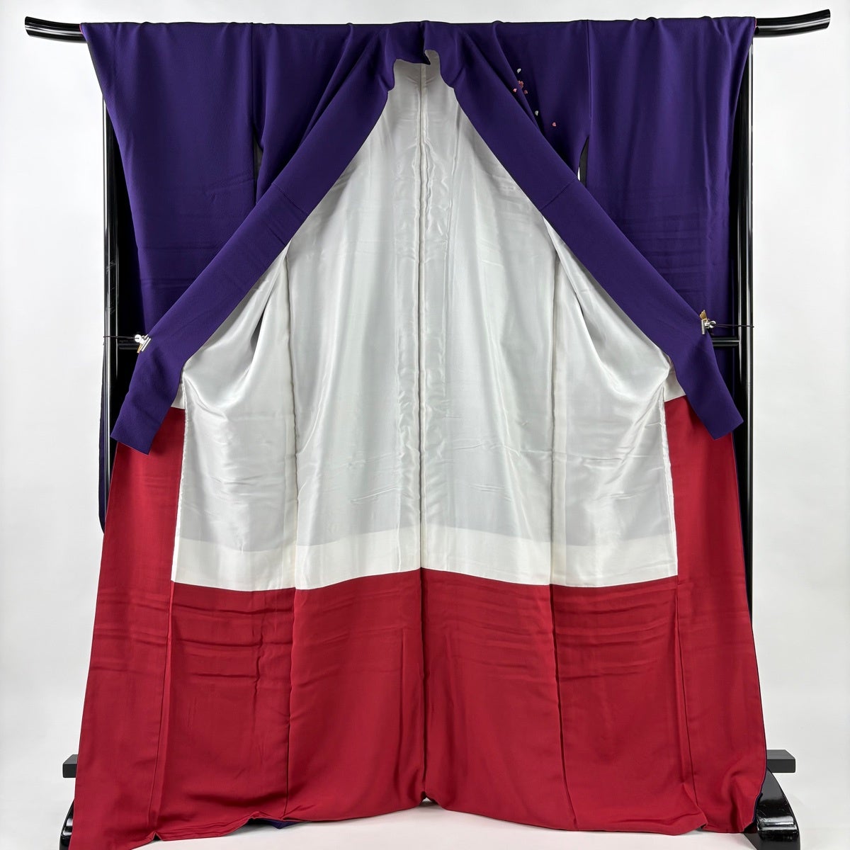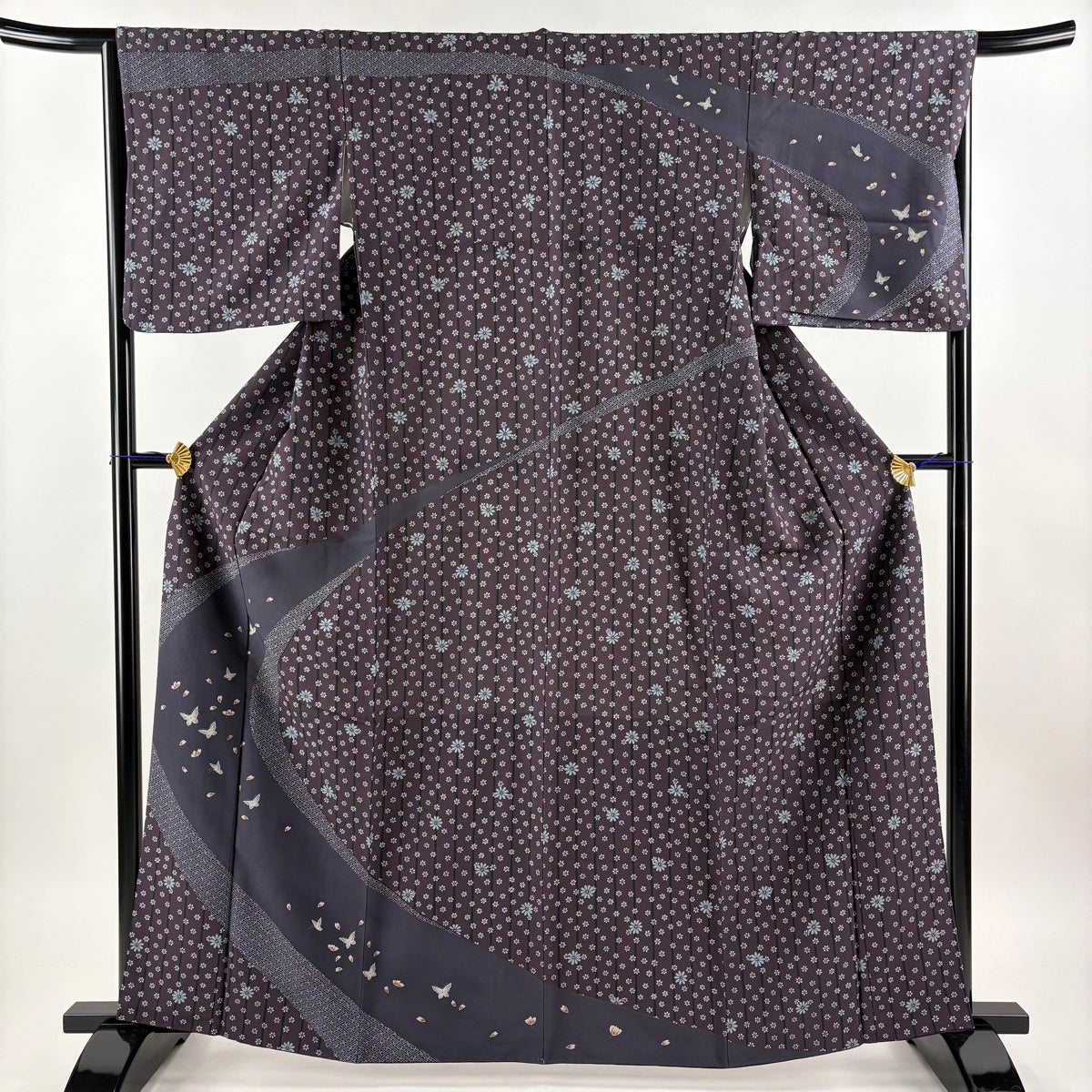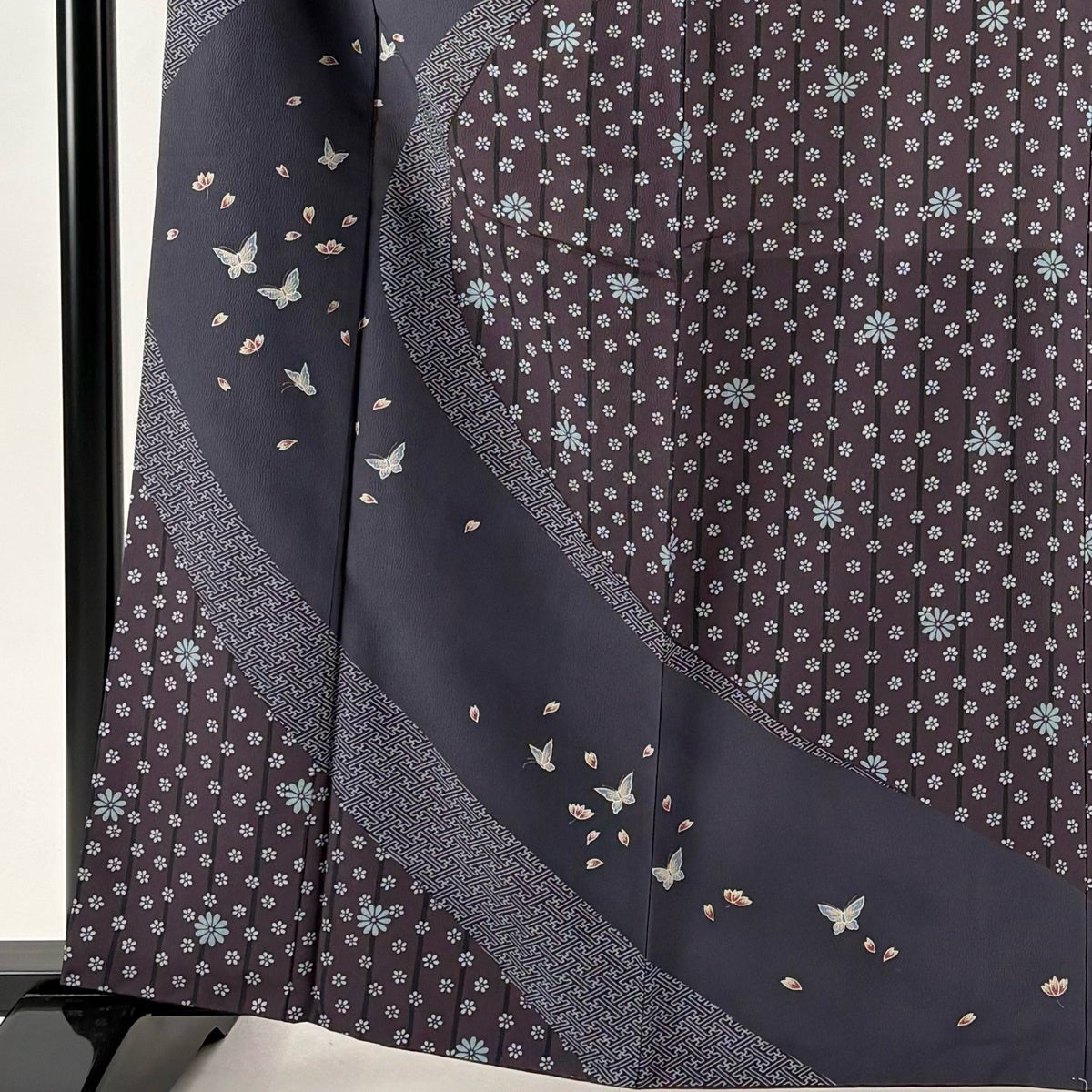 訪問着 身丈164cm 裄丈66cm M 袷 蝶 小花 紫 化繊 秀品