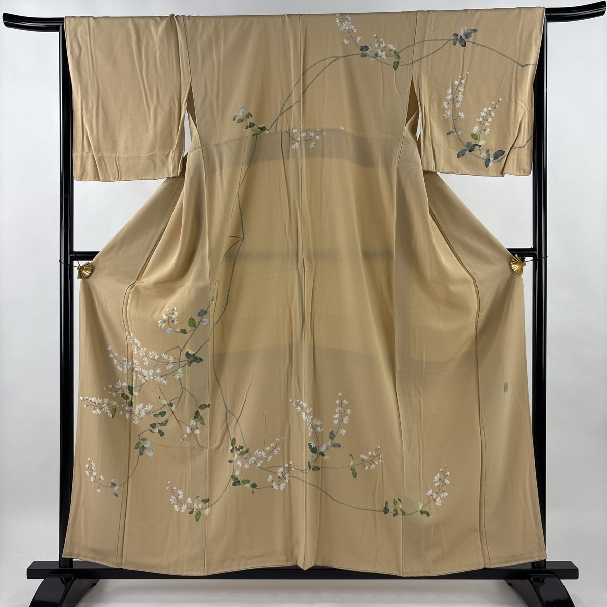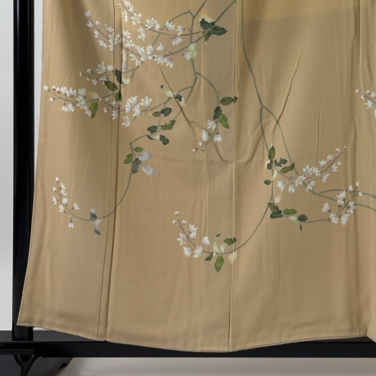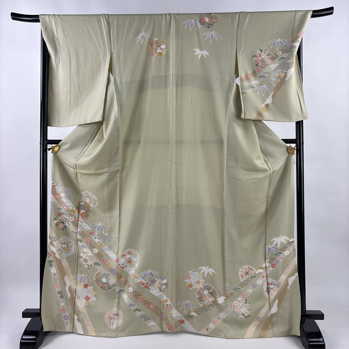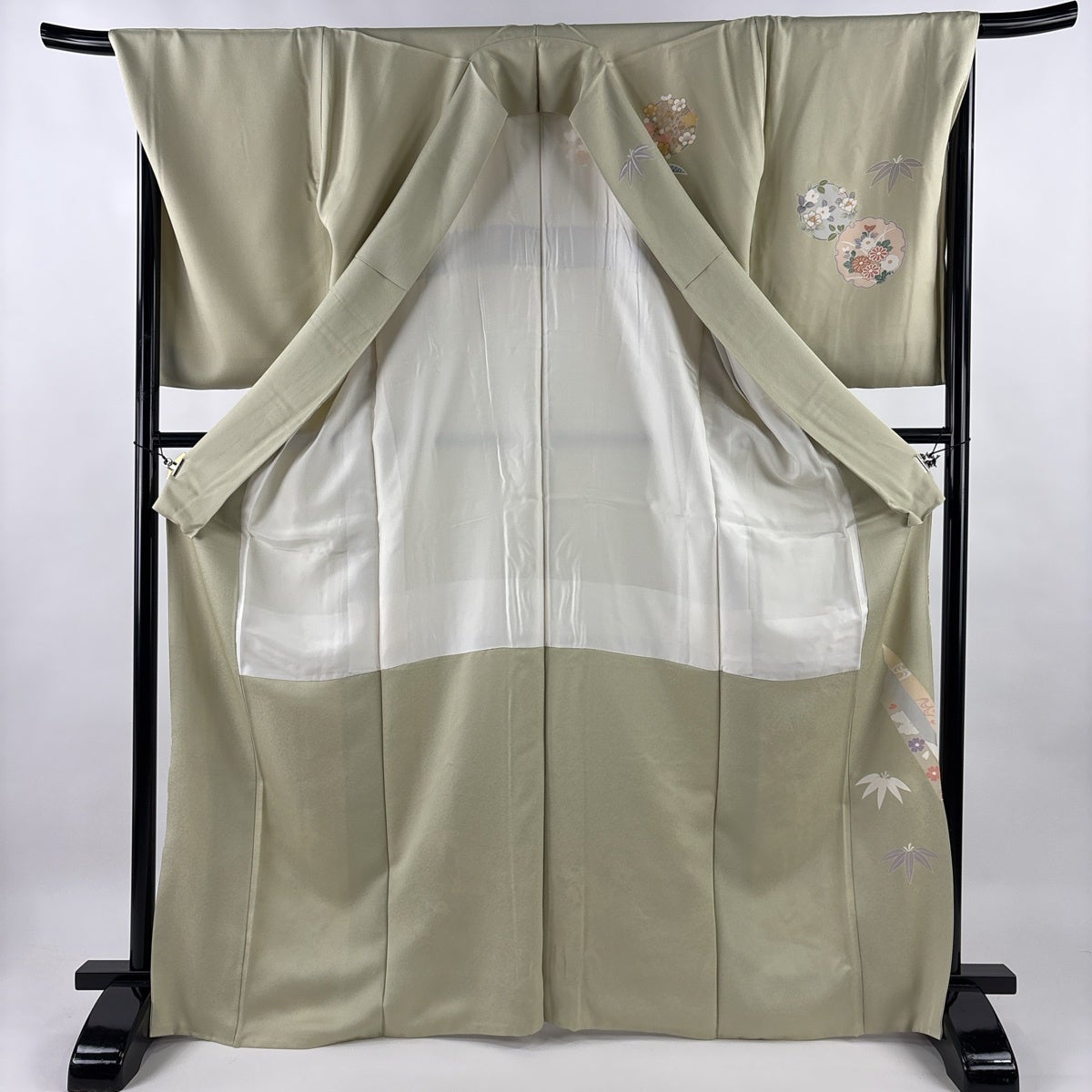 訪問着 身丈163.5cm 裄丈64.5cm M 袷 鏡裏文 枝花 金彩 刺繍 ベージュ 正絹 秀品