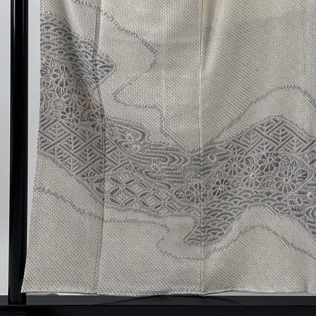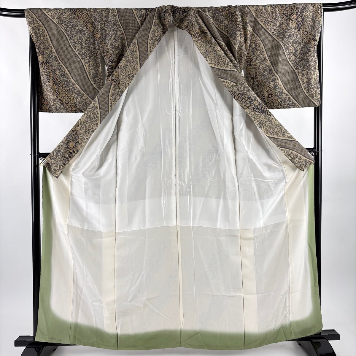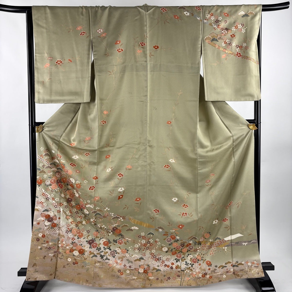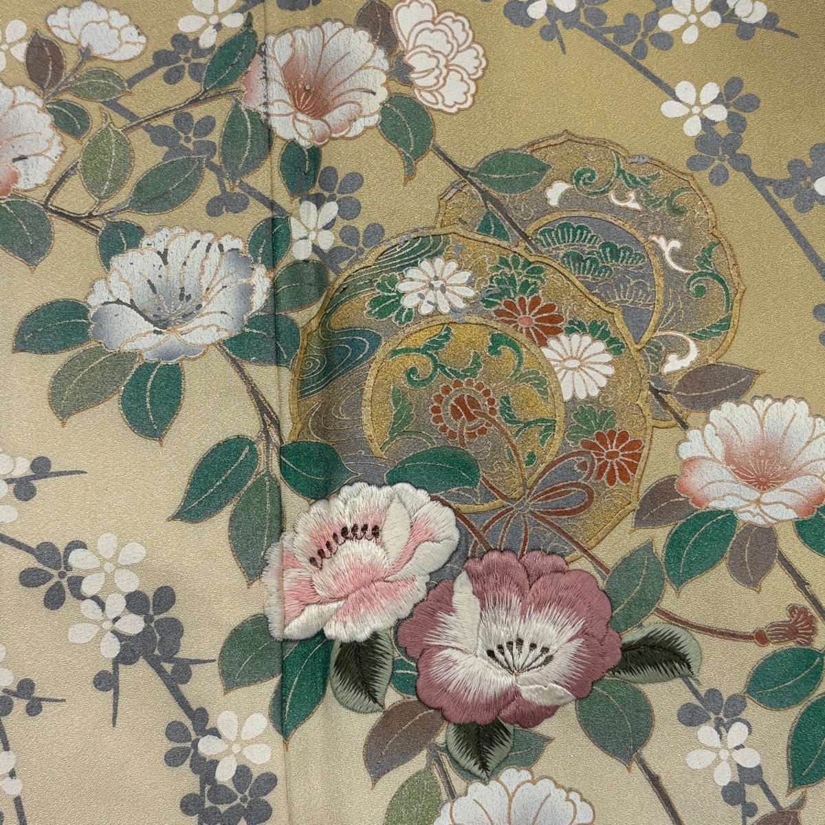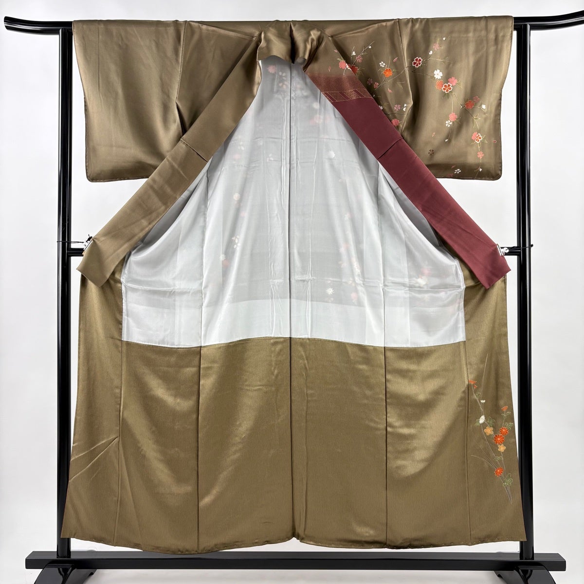 訪問着 身丈163.5cm 裄丈64.5cm M 袷 鏡裏文 枝花 金彩 刺繍 ベージュ 正絹 秀品