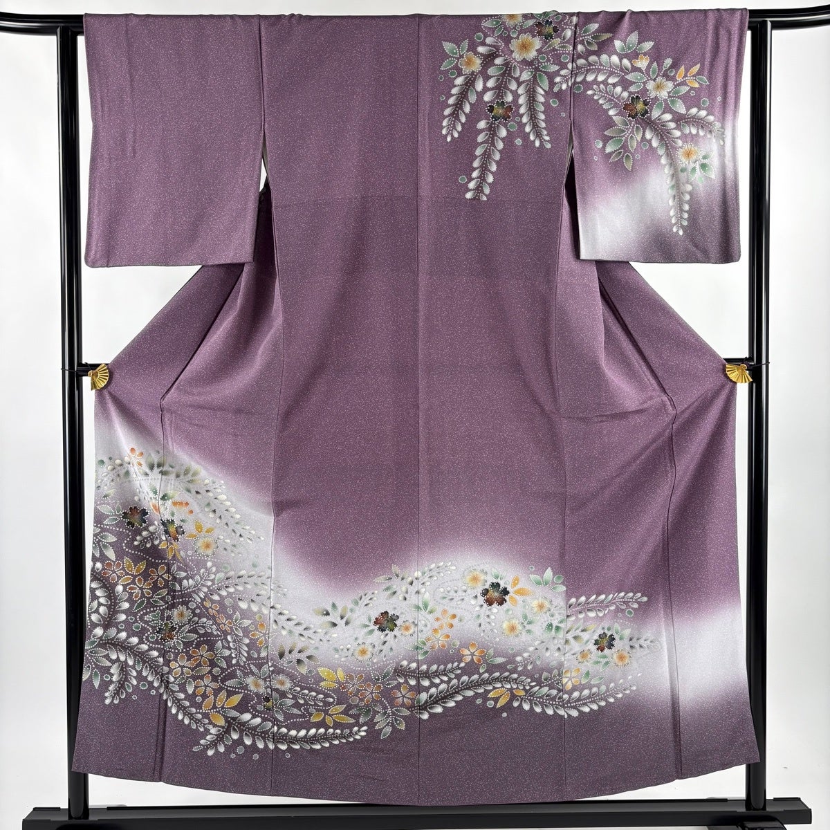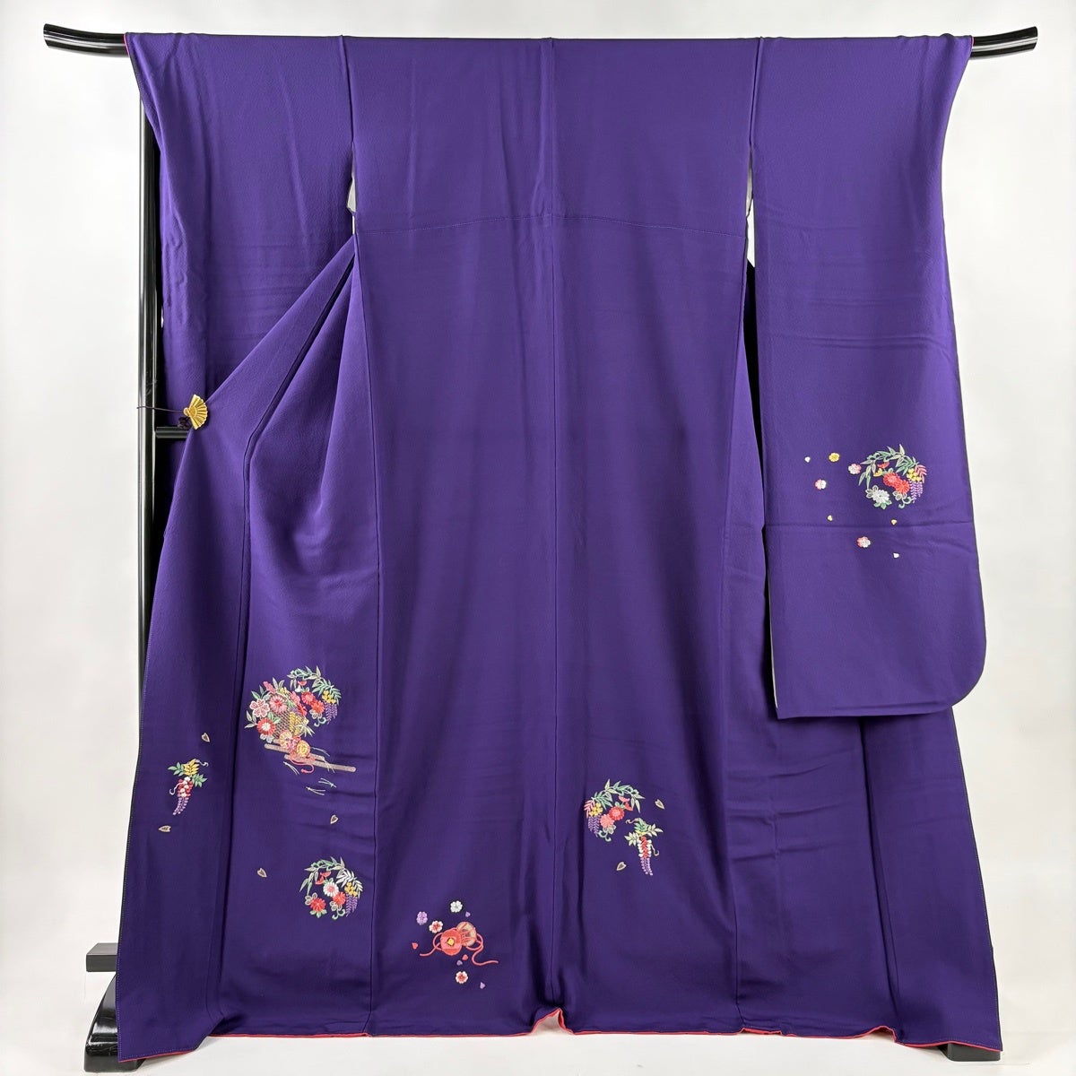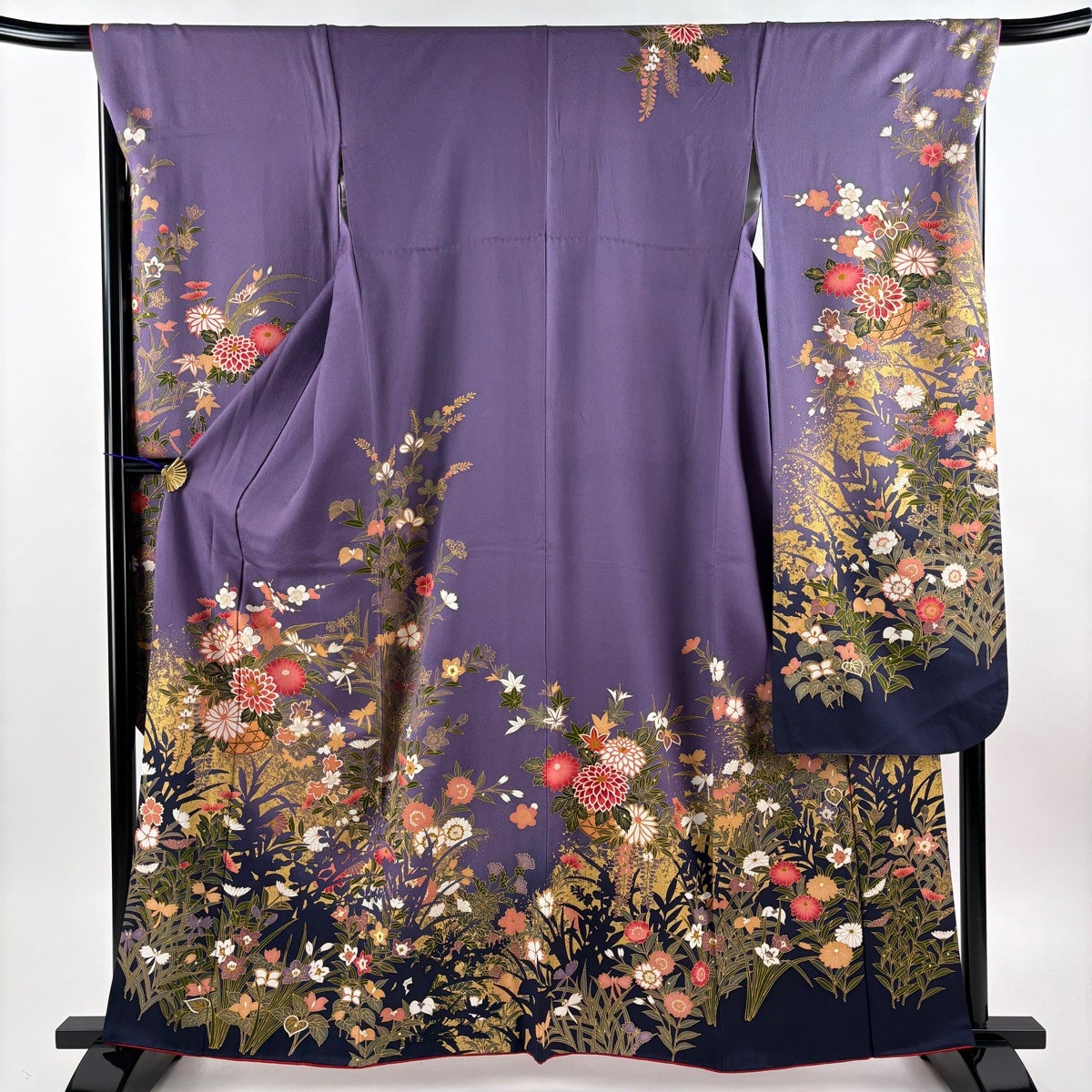 振袖 身丈162cm 裄丈68cm L 袷 花籠 シルエット 金彩 紫 正絹 秀品