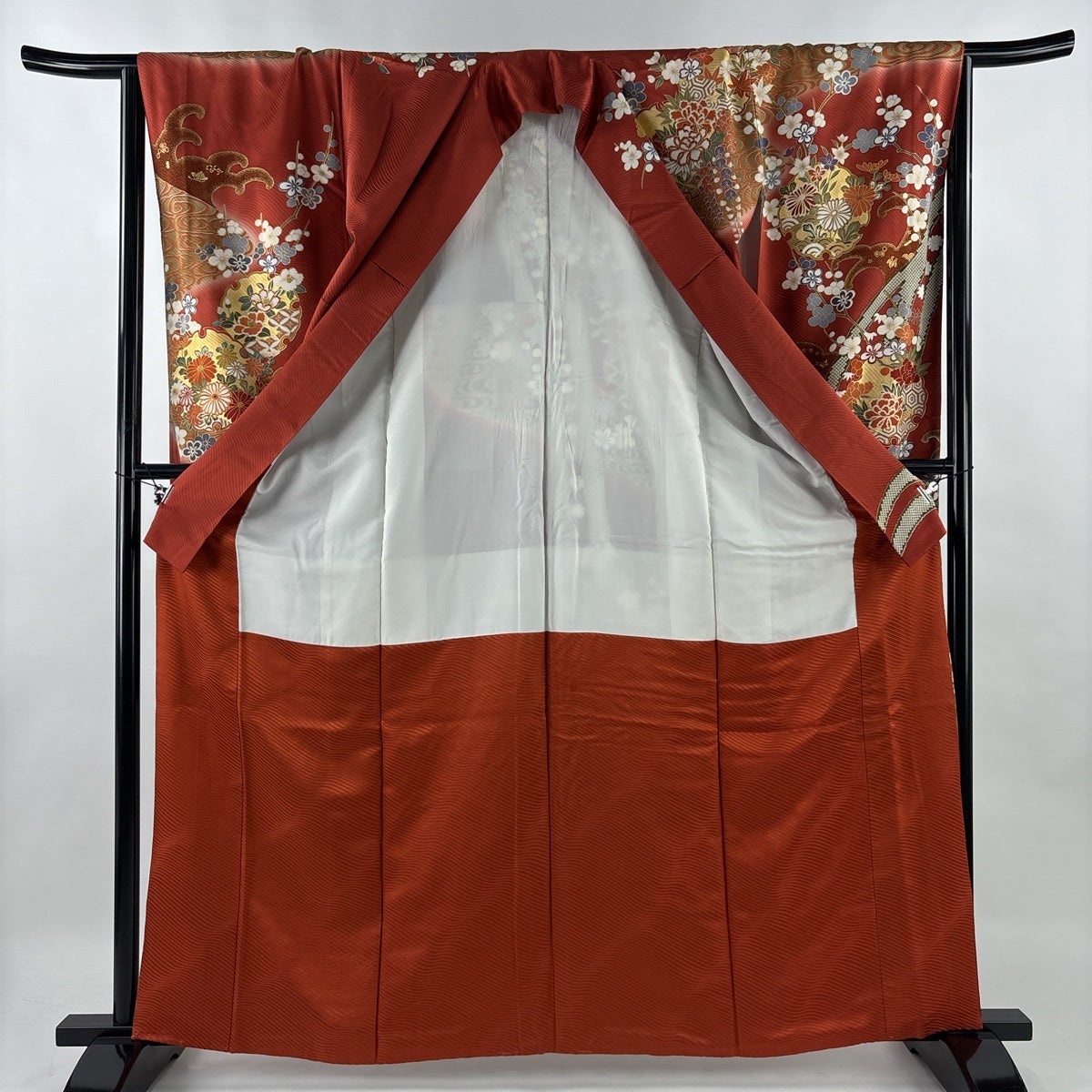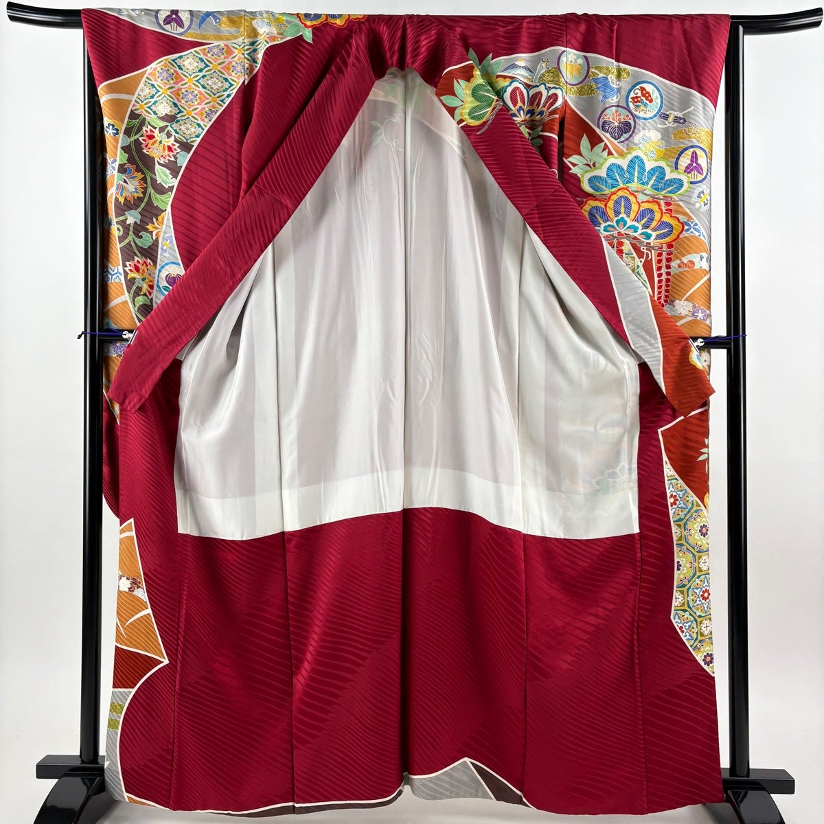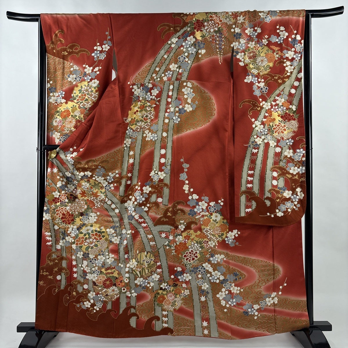 振袖 身丈163cm 裄丈65.5cm M 袷 笠松 鎌倉文 金糸 金彩 赤 正絹 秀品