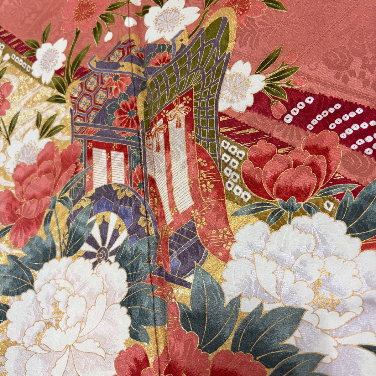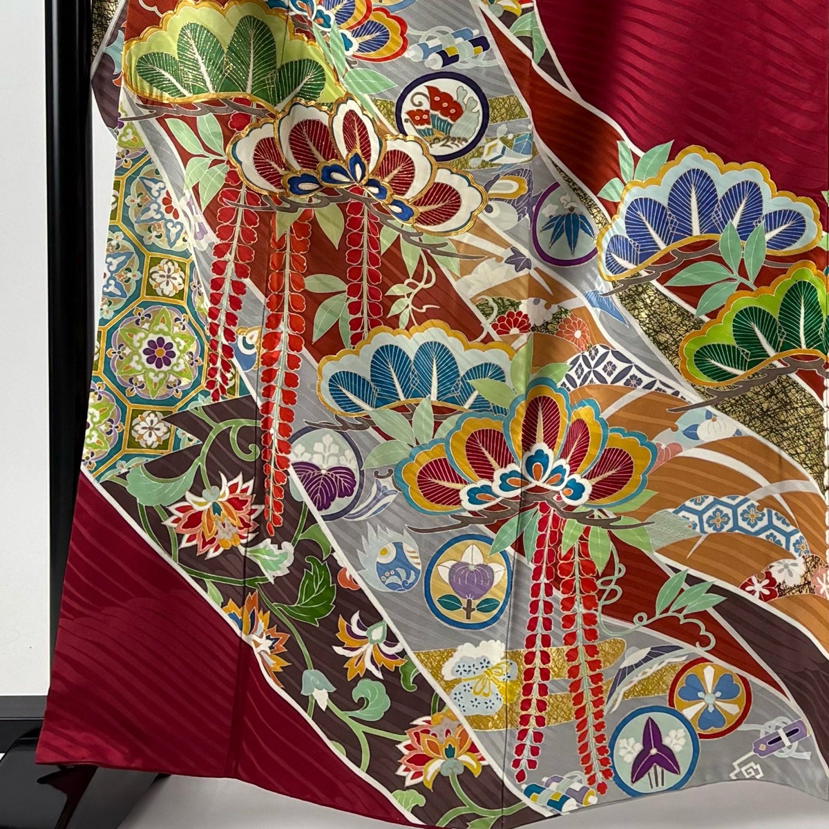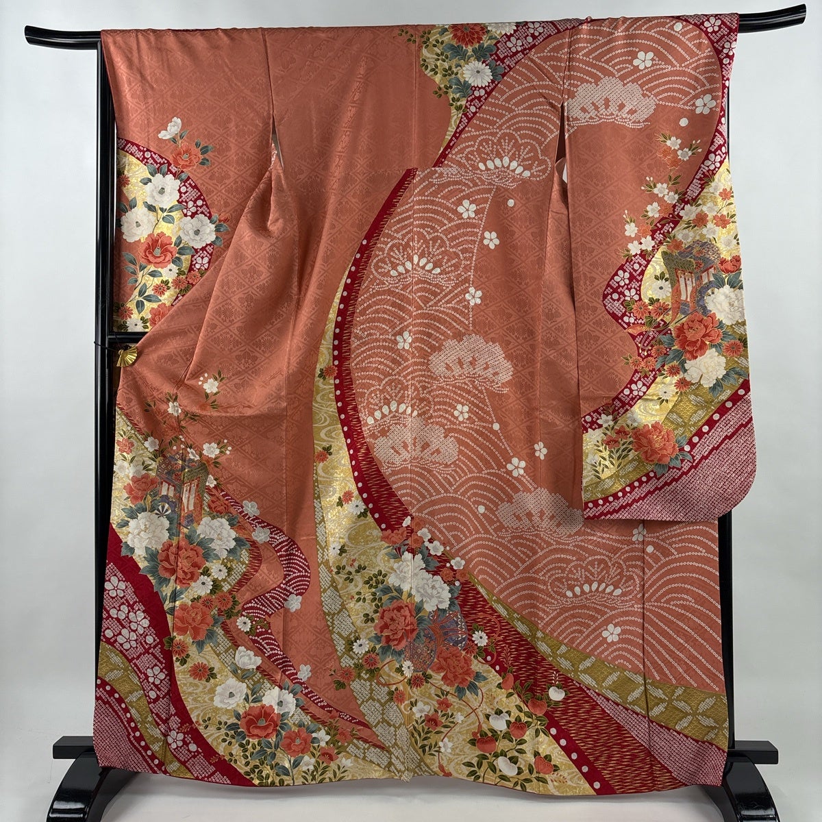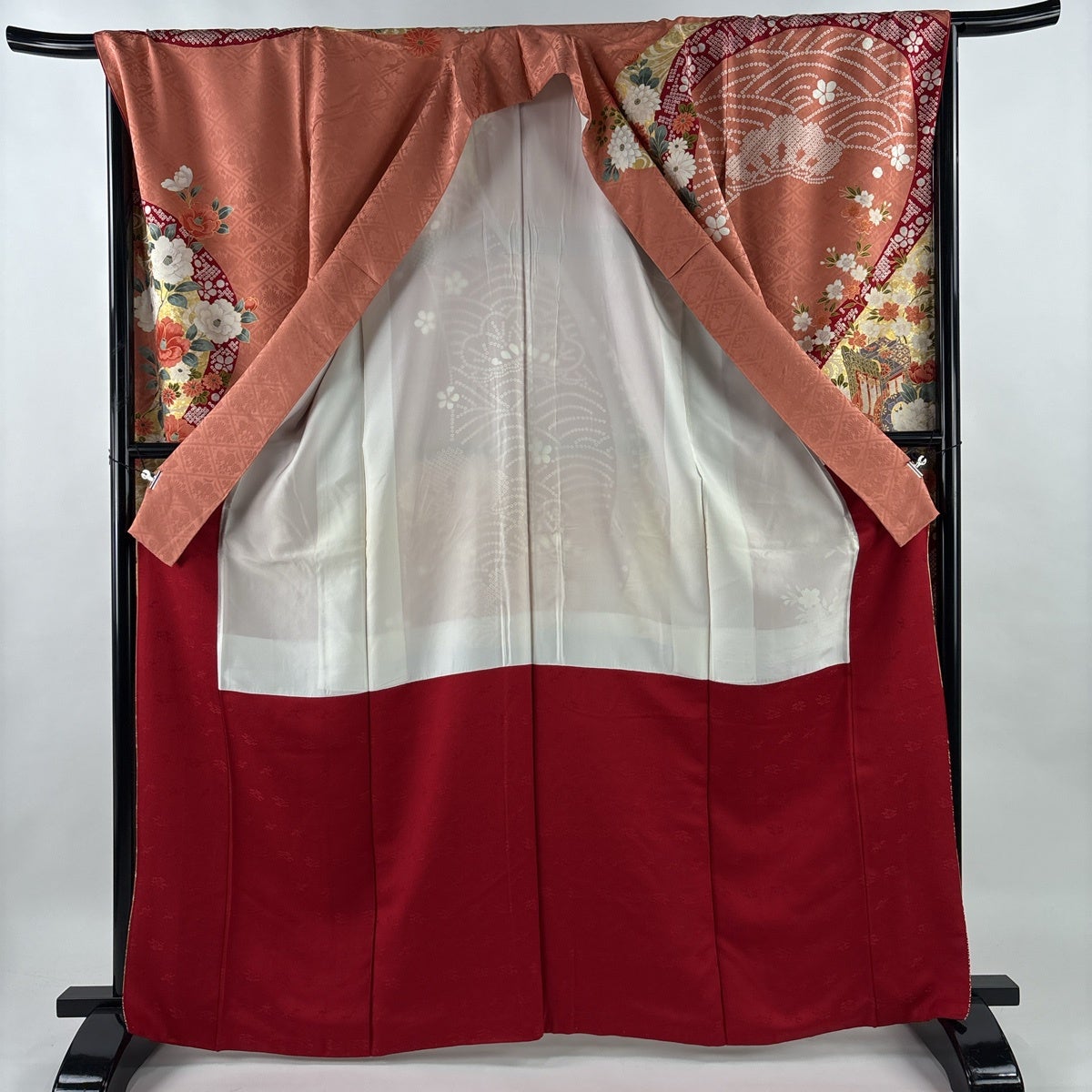 振袖 身丈163cm 裄丈65.5cm M 袷 笠松 鎌倉文 金糸 金彩 赤 正絹 秀品