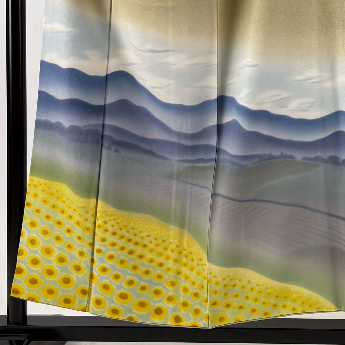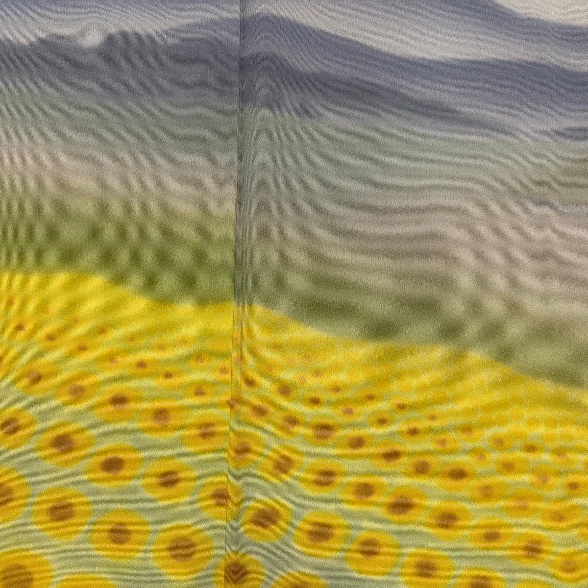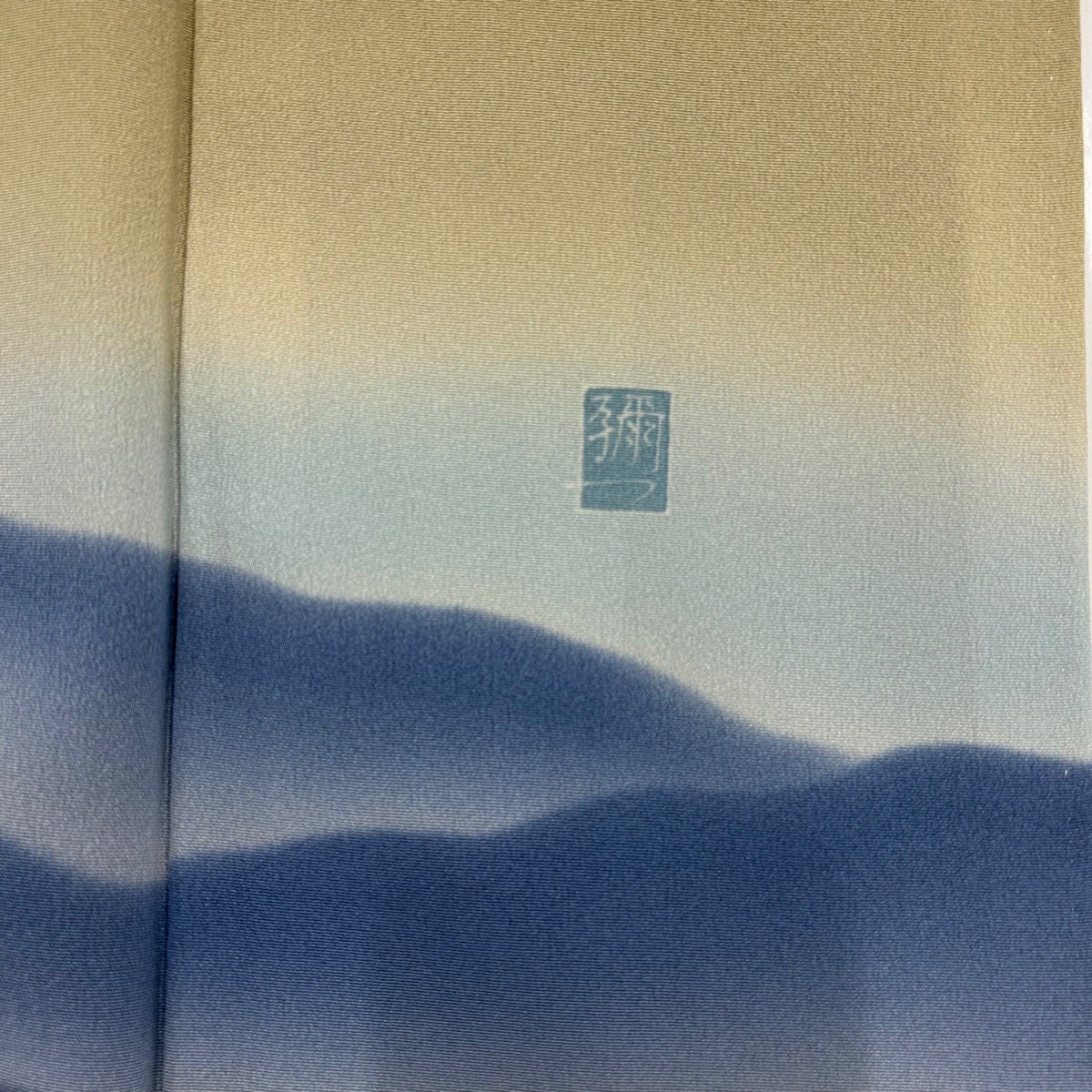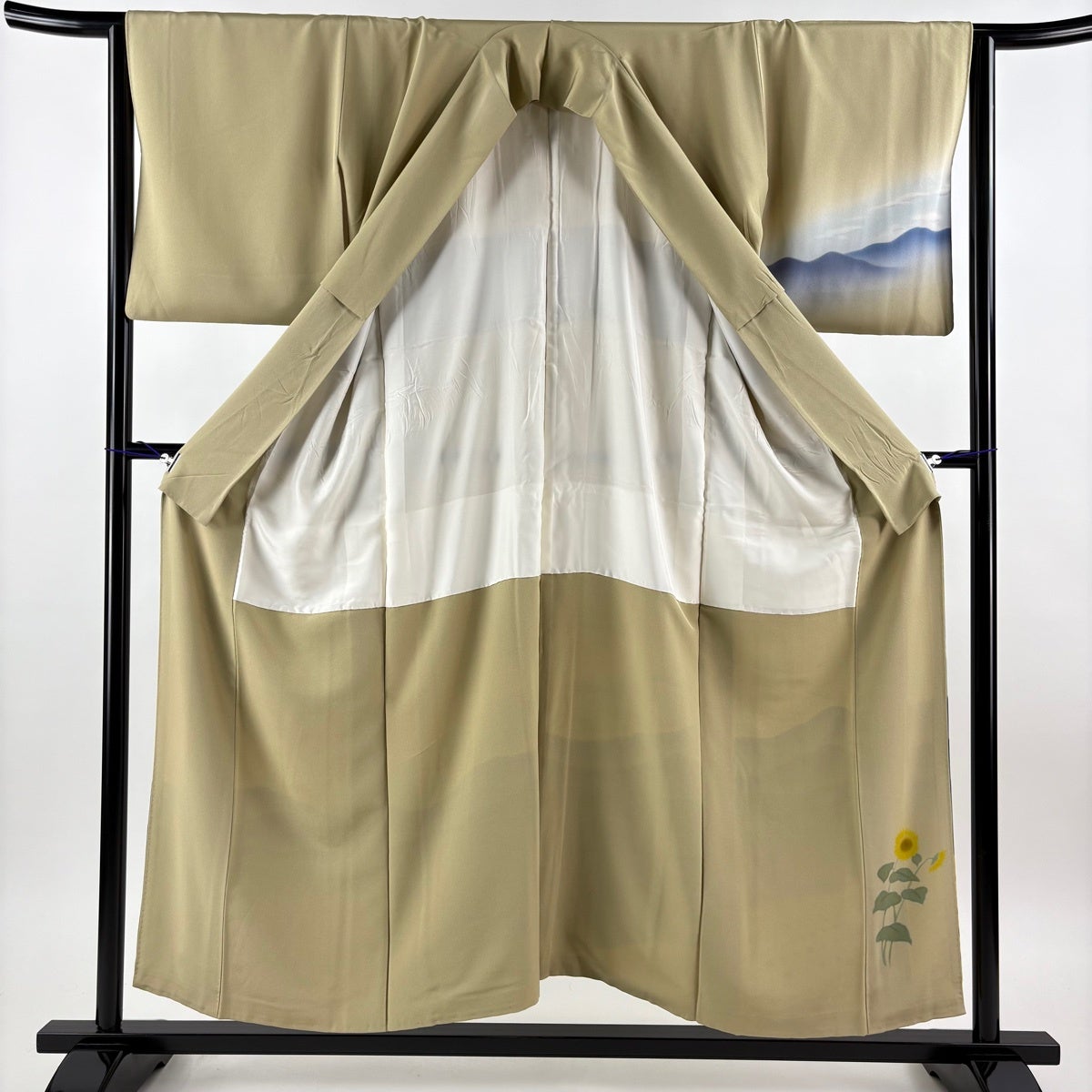 訪問着 身丈154cm 裄丈64.5cm M 袷 落款あり 山並み ひまわり ぼかし ベージュ 正絹 秀品
