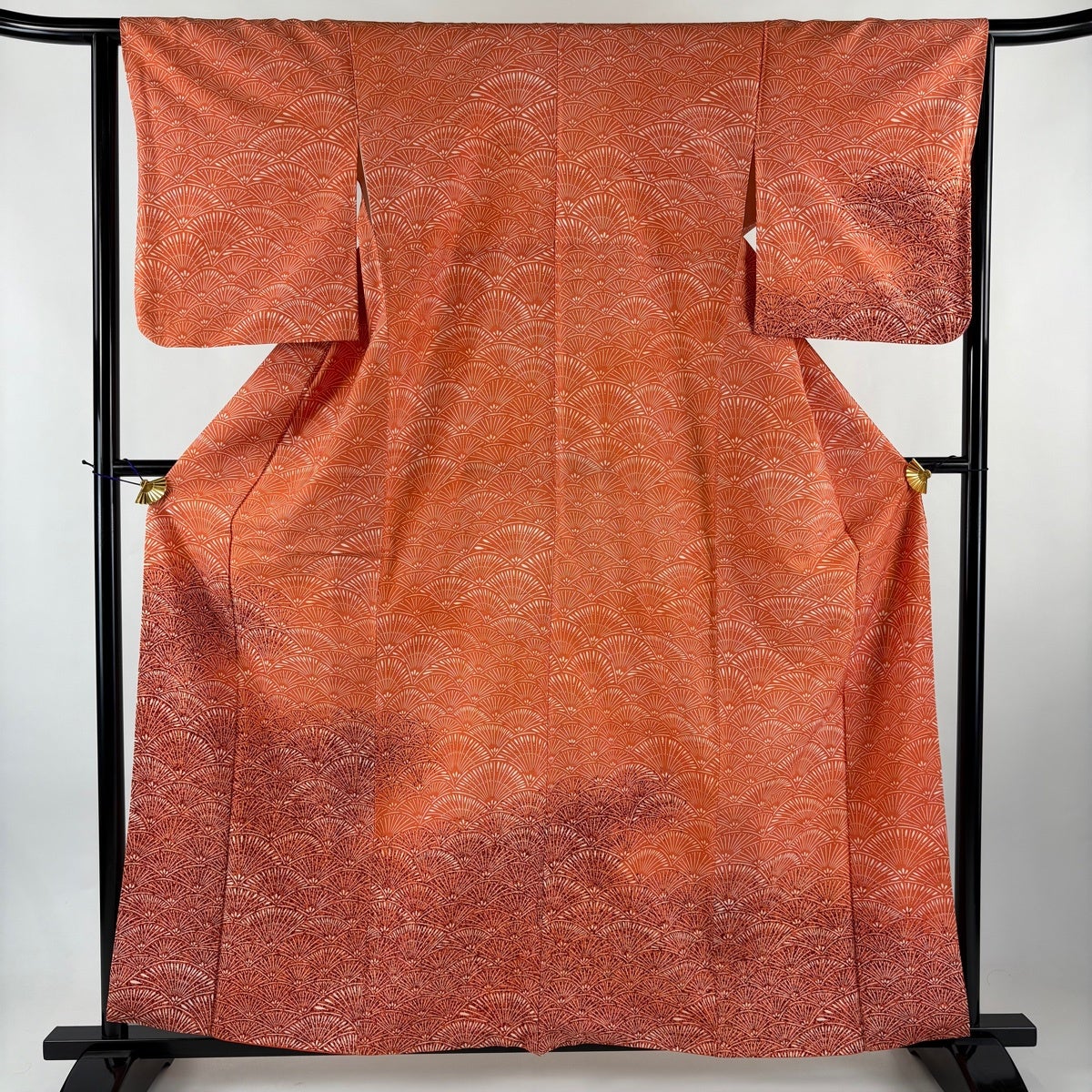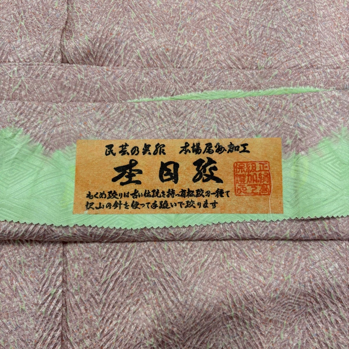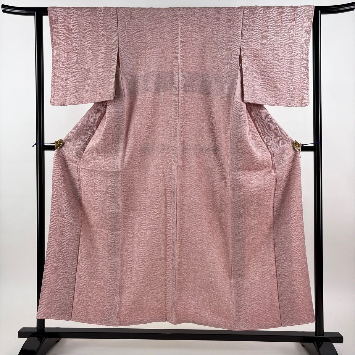 【美品】 小紋 身丈153cm 裄丈62cm S 袷 幾何学模様 杢目絞 ピンク 正絹 秀品