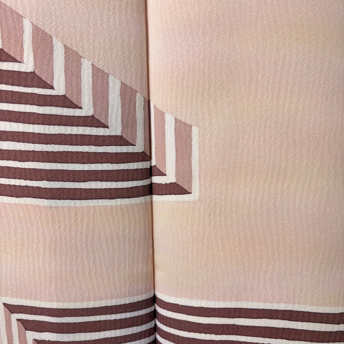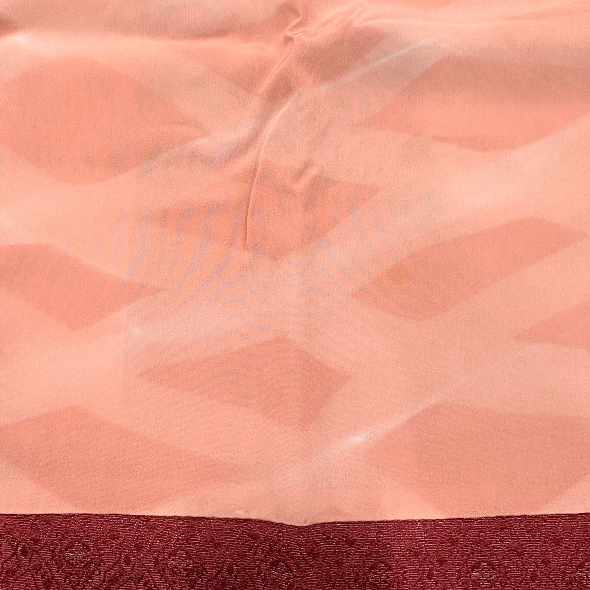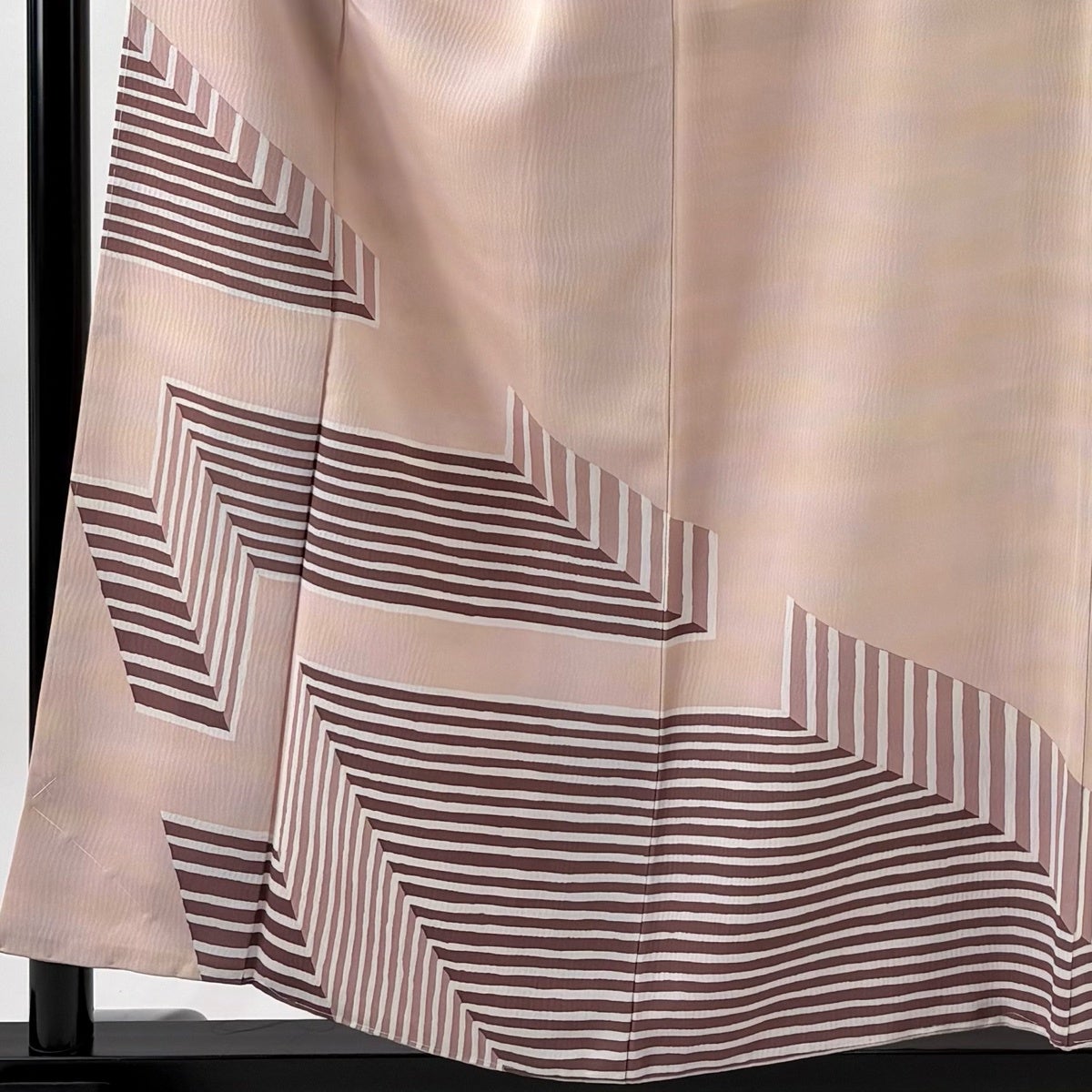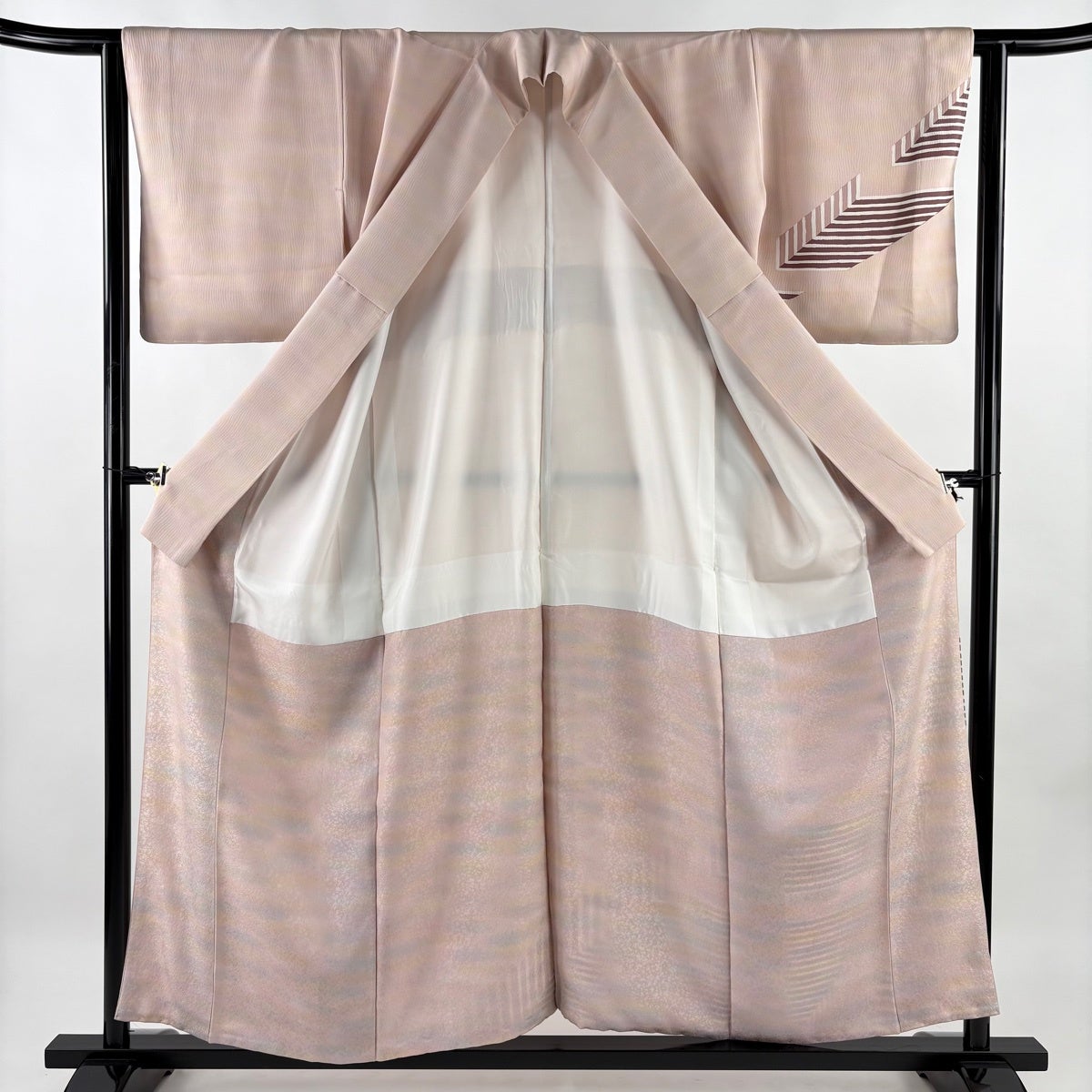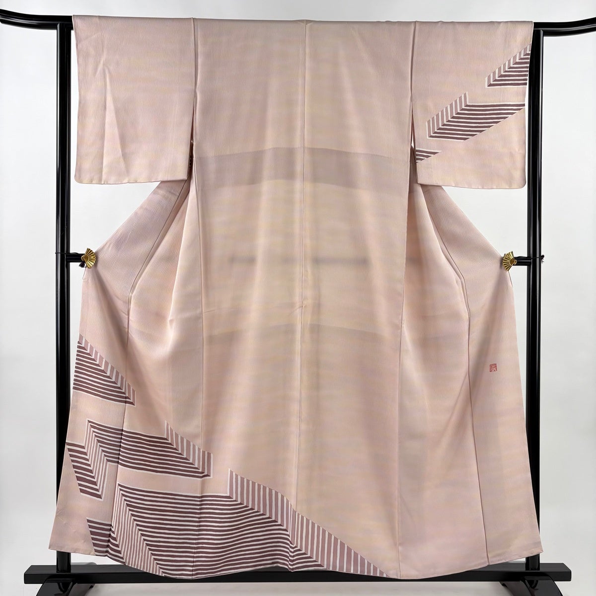 【美品】 付下げ 身丈157cm 裄丈63cm S 袷 落款あり 縞 幾何学 ぼかし ピンク 正絹 秀品