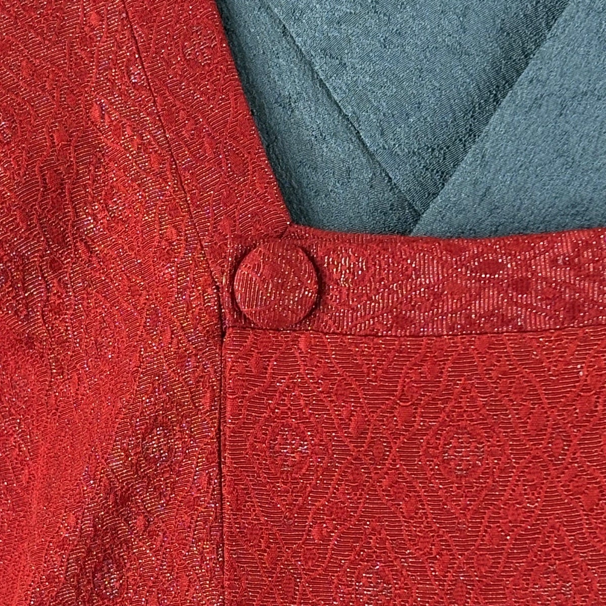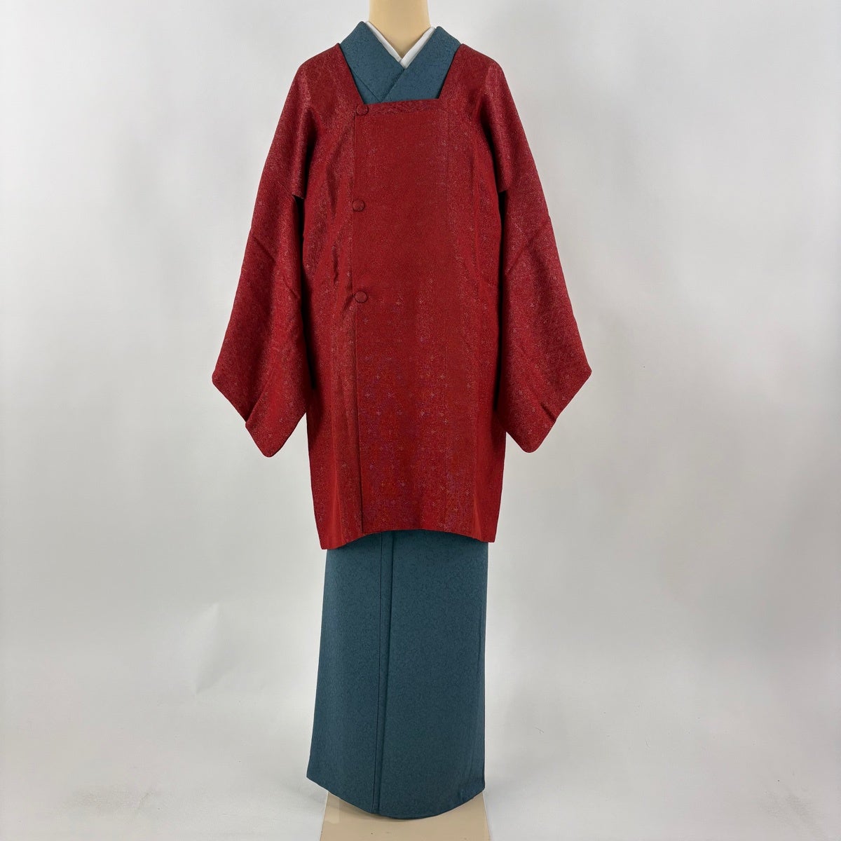 道行 身丈63cm 裄丈65.5cm M 和装コート 角衿 菱 花 銀通し 赤 正絹 秀品