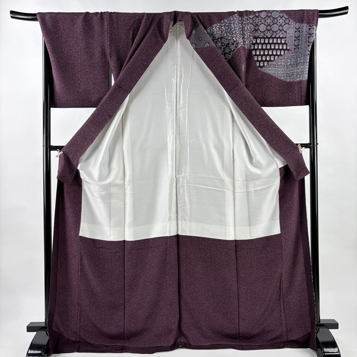 訪問着 身丈171.5cm 裄丈68cm L 袷 落款あり 寄せ柄 名物裂文様 紫 正絹 秀品