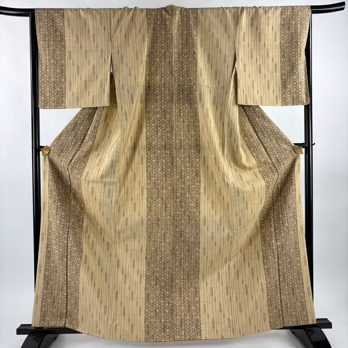 【美品】 小紋 身丈162cm 裄丈66cm M 袷 幾何学模様 ベージュ 正絹 秀品