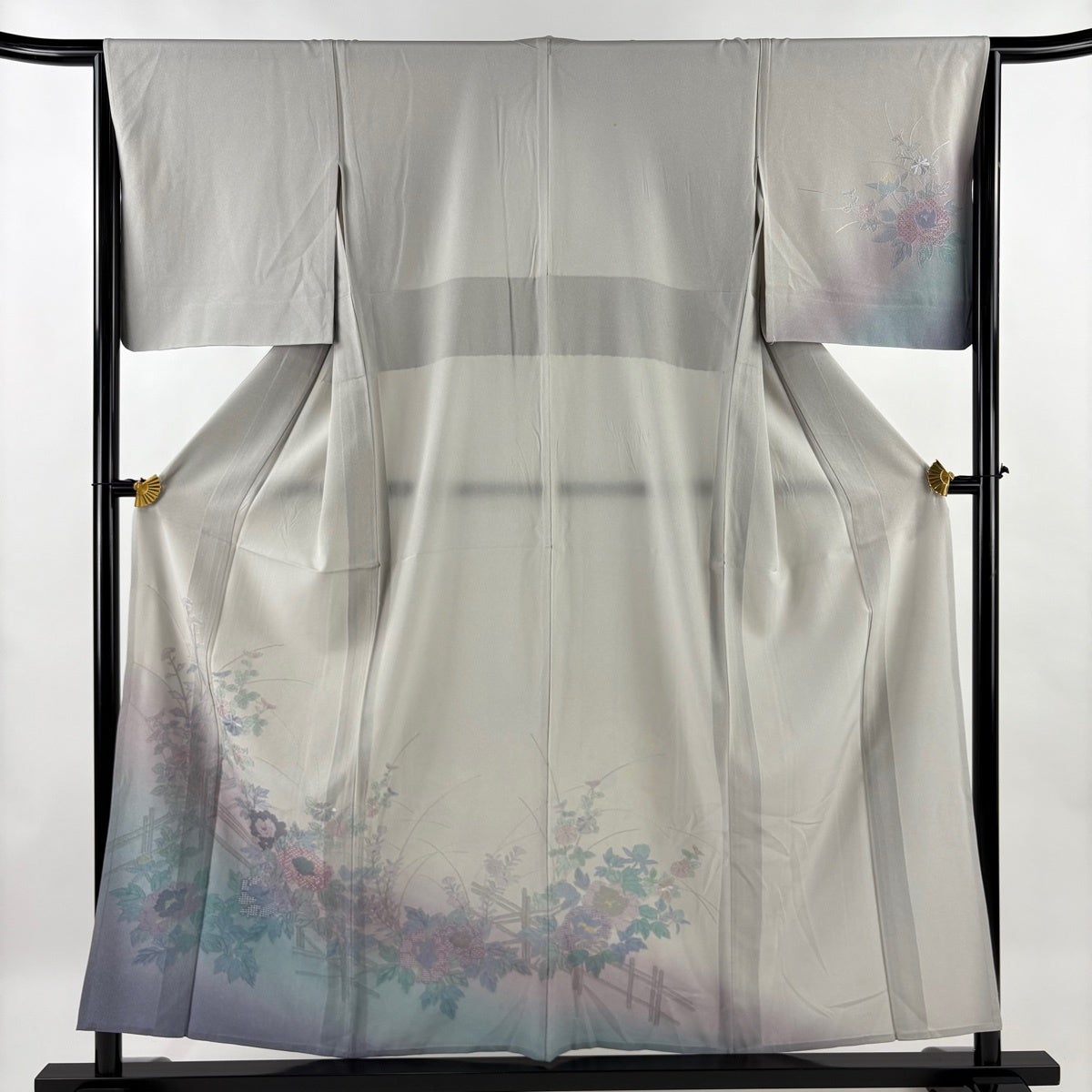 訪問着 身丈162.5cm 裄丈63.5cm S 袷 鴛鴦 松竹梅 金彩 ぼかし 灰緑 正絹 秀品