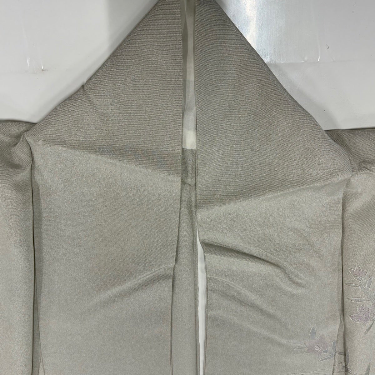 付下げ 身丈161.5cm 裄丈64cm M 単衣 桜 波 刺繍 銀糸 よもぎ色 正絹 秀品