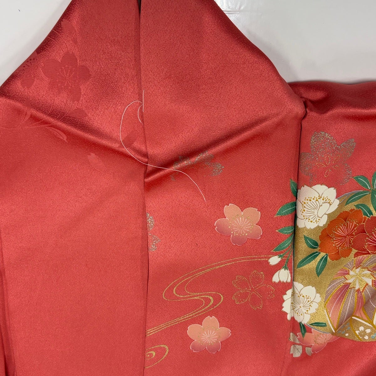 振袖 身丈165.5cm 裄丈67cm M 袷 菊 宝尽くし 絞り 金糸 赤 正絹 秀品