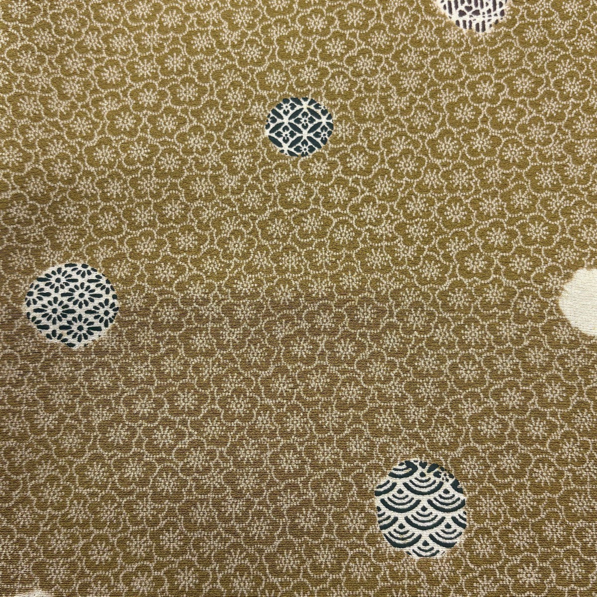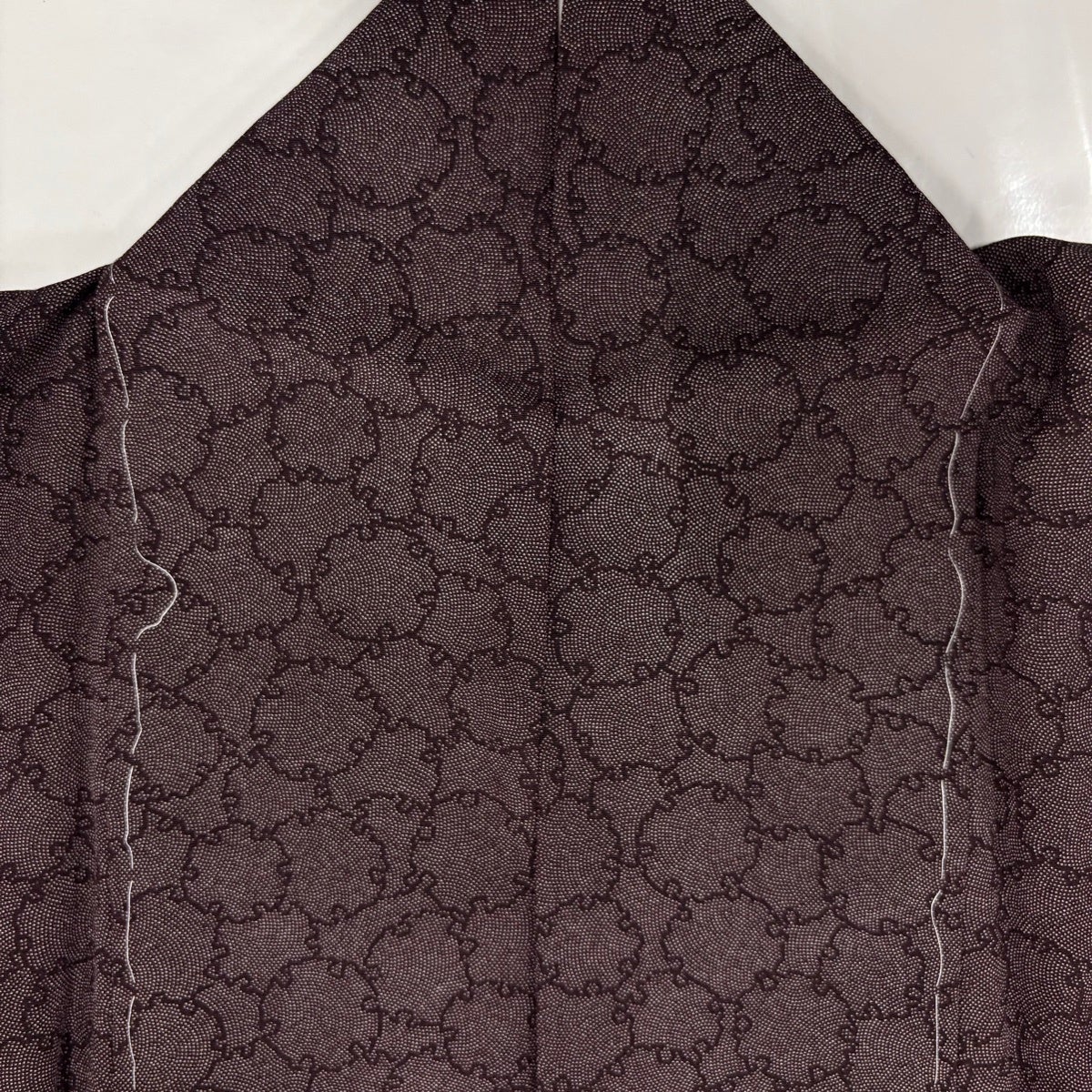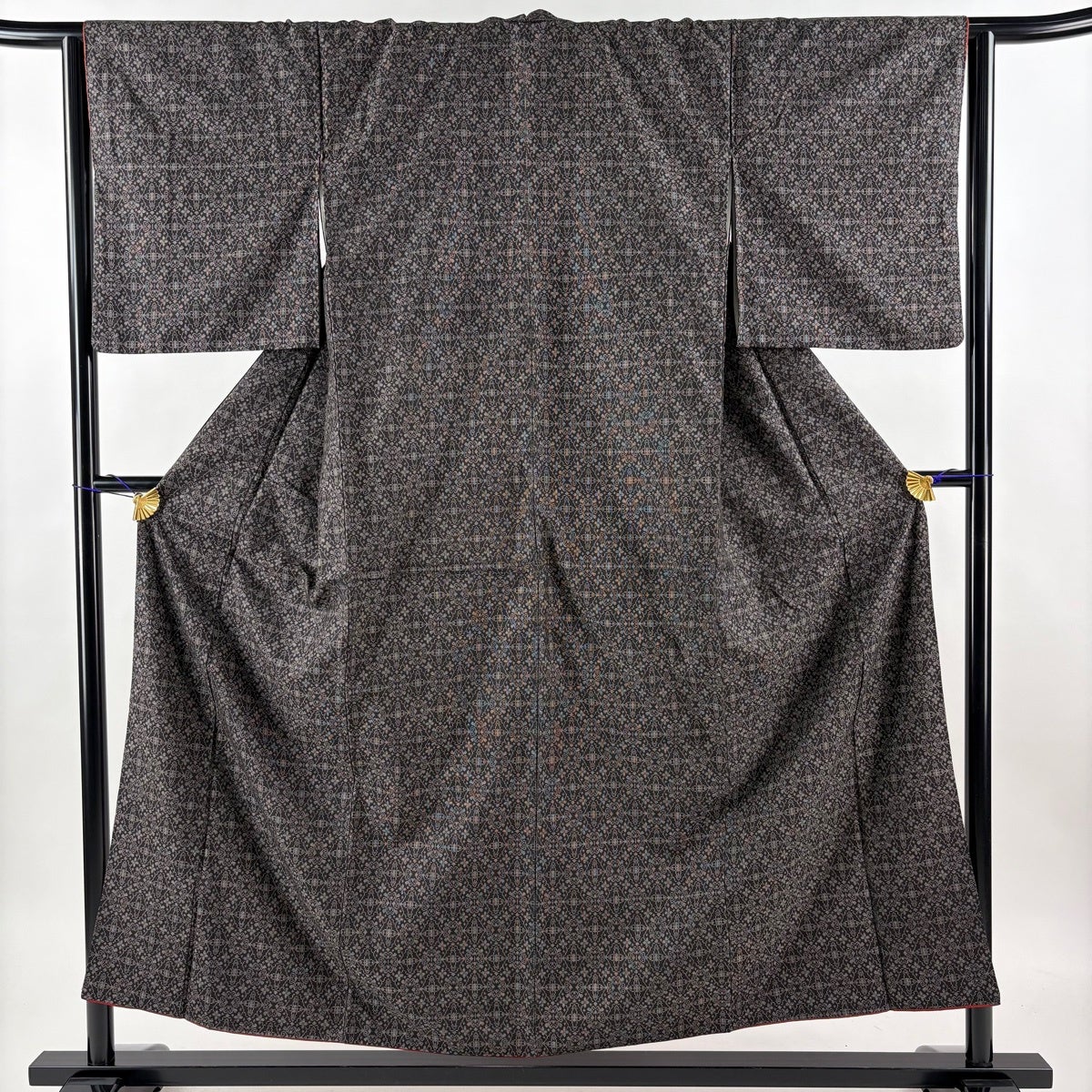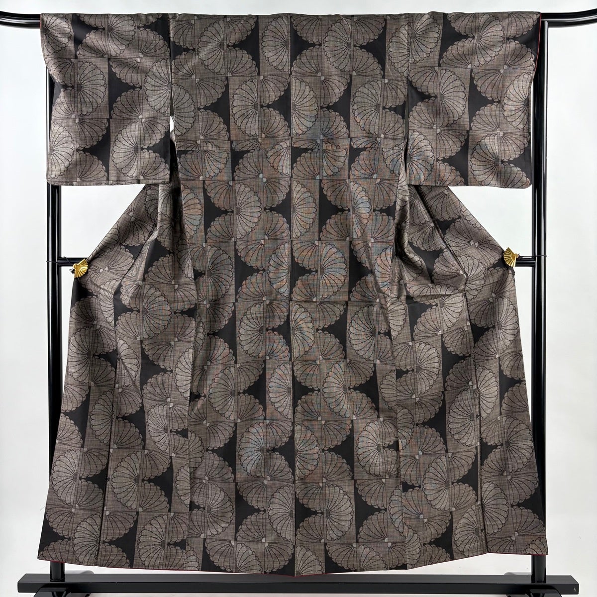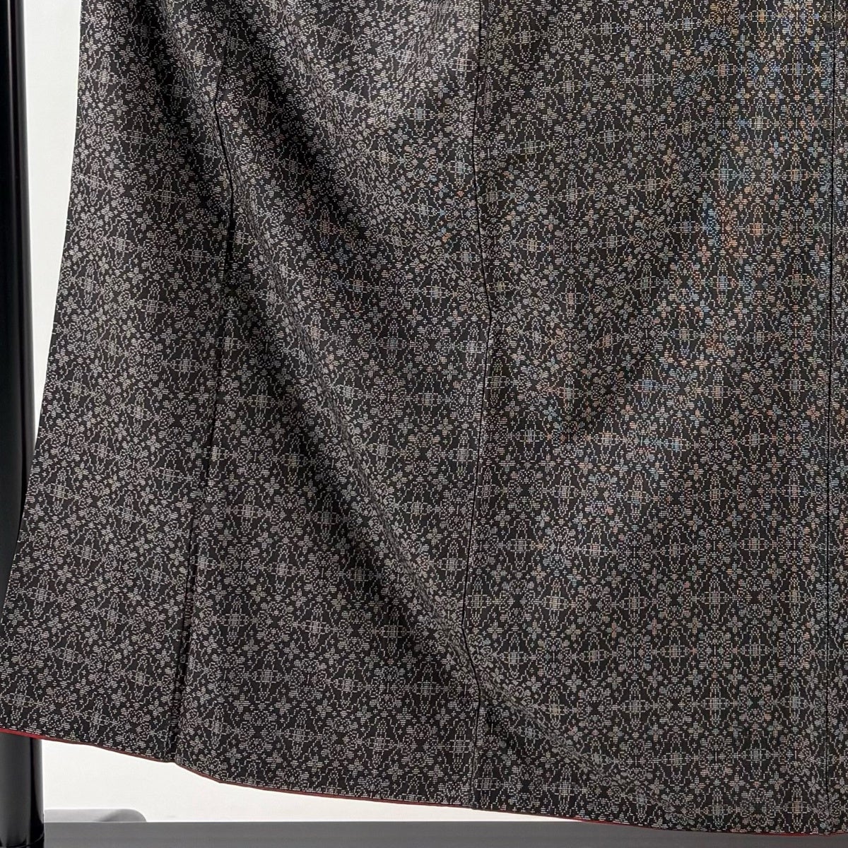 【美品】 紬 身丈155cm 裄丈65cm M 袷 花 幾何学 焦茶色 正絹 秀品