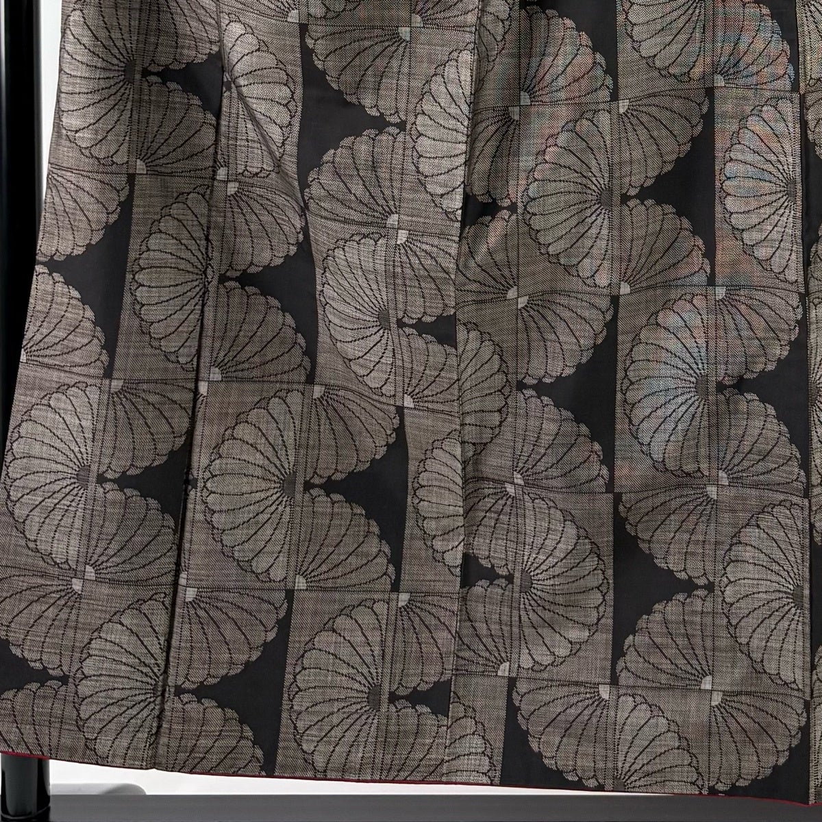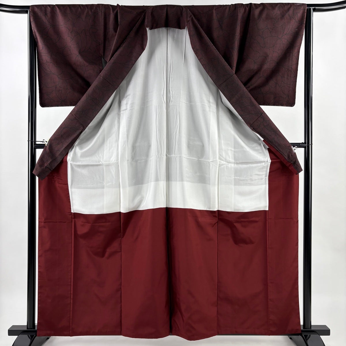 【美品】 紬 身丈161.5cm 裄丈66cm M 袷 ますいわ屋 花 赤黒 正絹 秀品