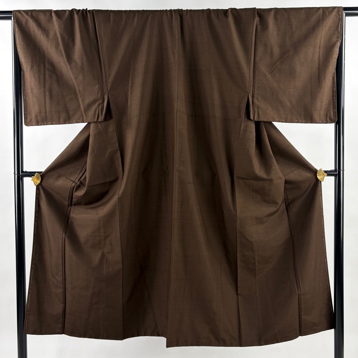 【美品】 男着物 身丈142cm 裄丈69.5cm M 袷 アンサンブル 紬 焦茶色 正絹 秀品