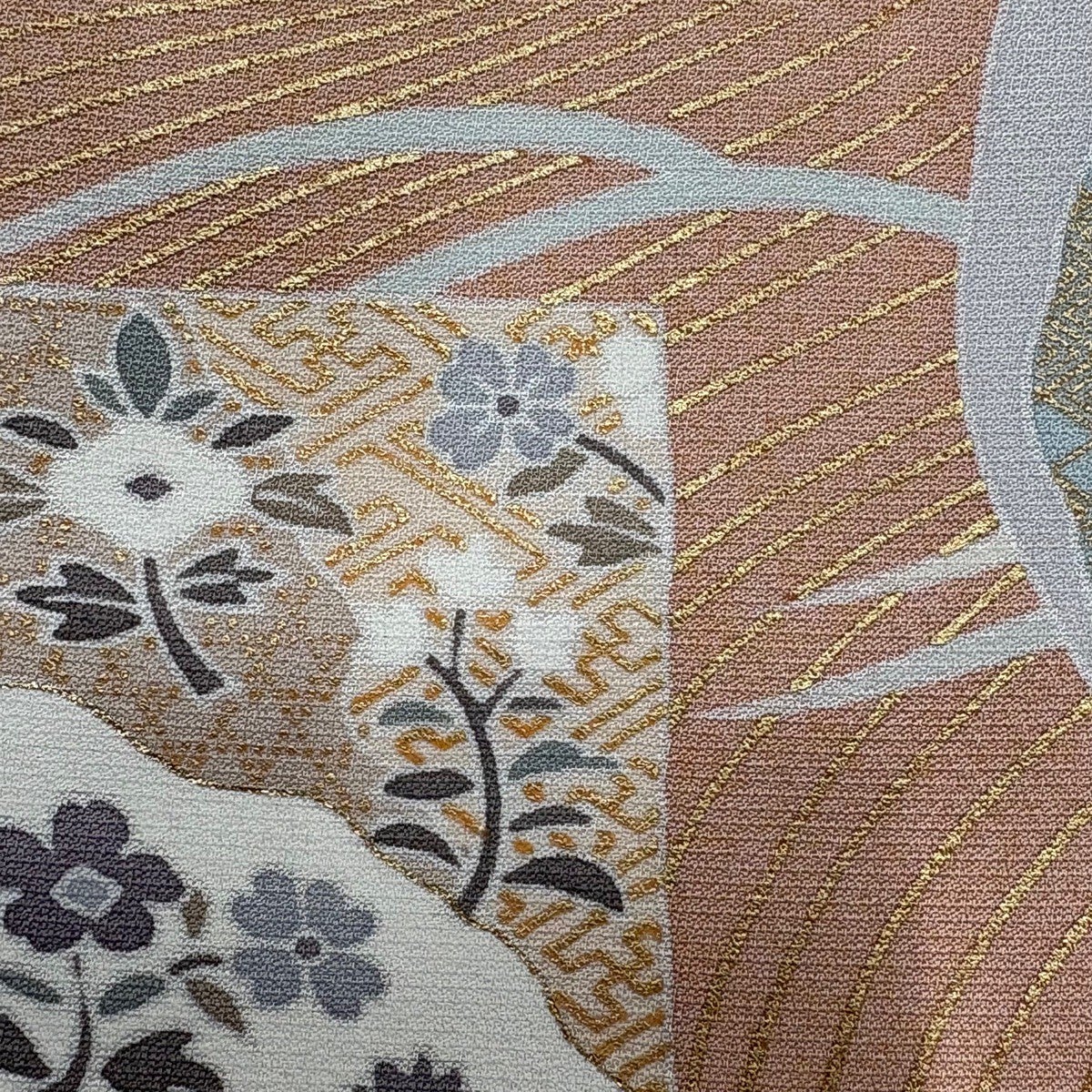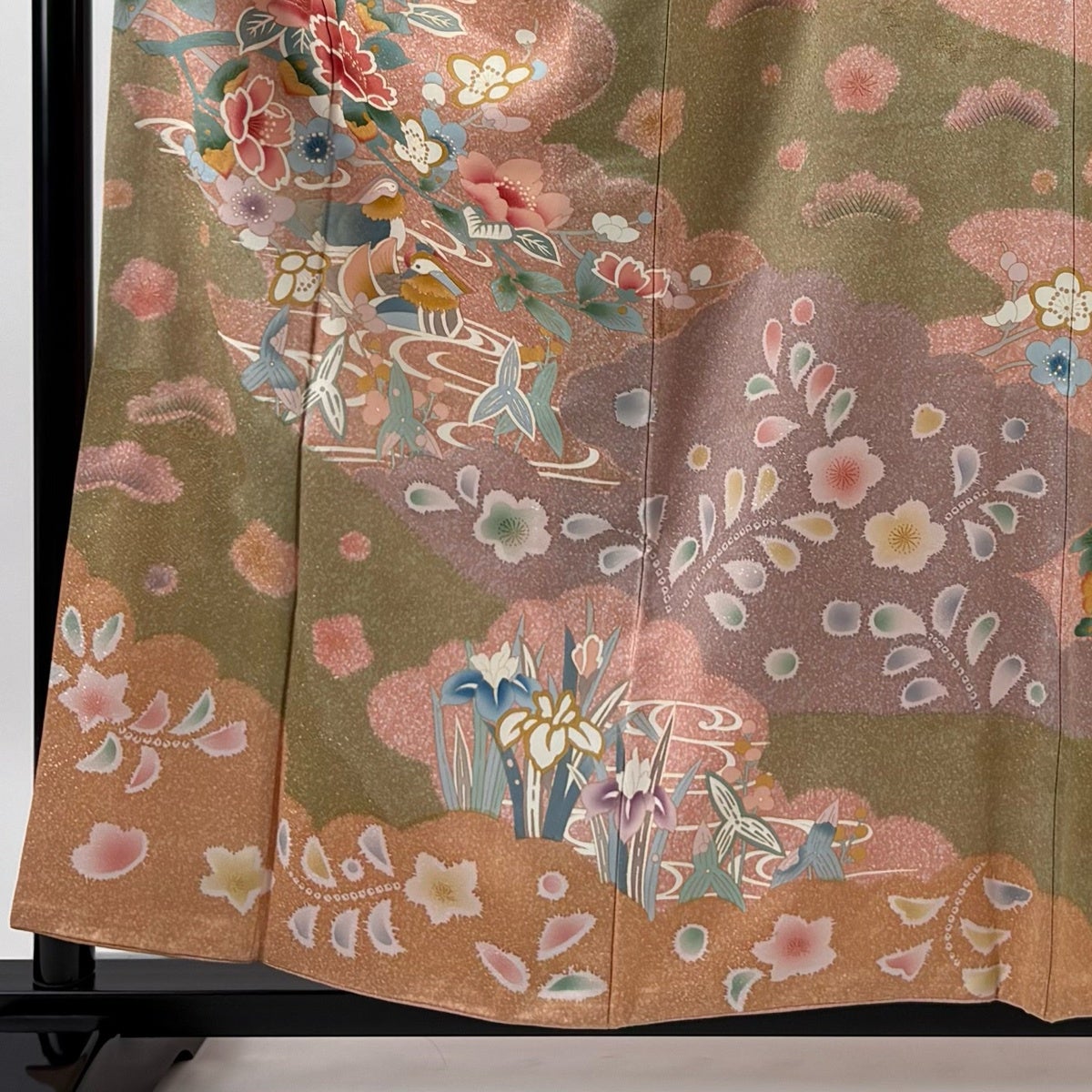 訪問着 身丈158.5cm 裄丈62.5cm S 袷 鴛鴦 草花 金銀彩 ピンク 正絹 秀品