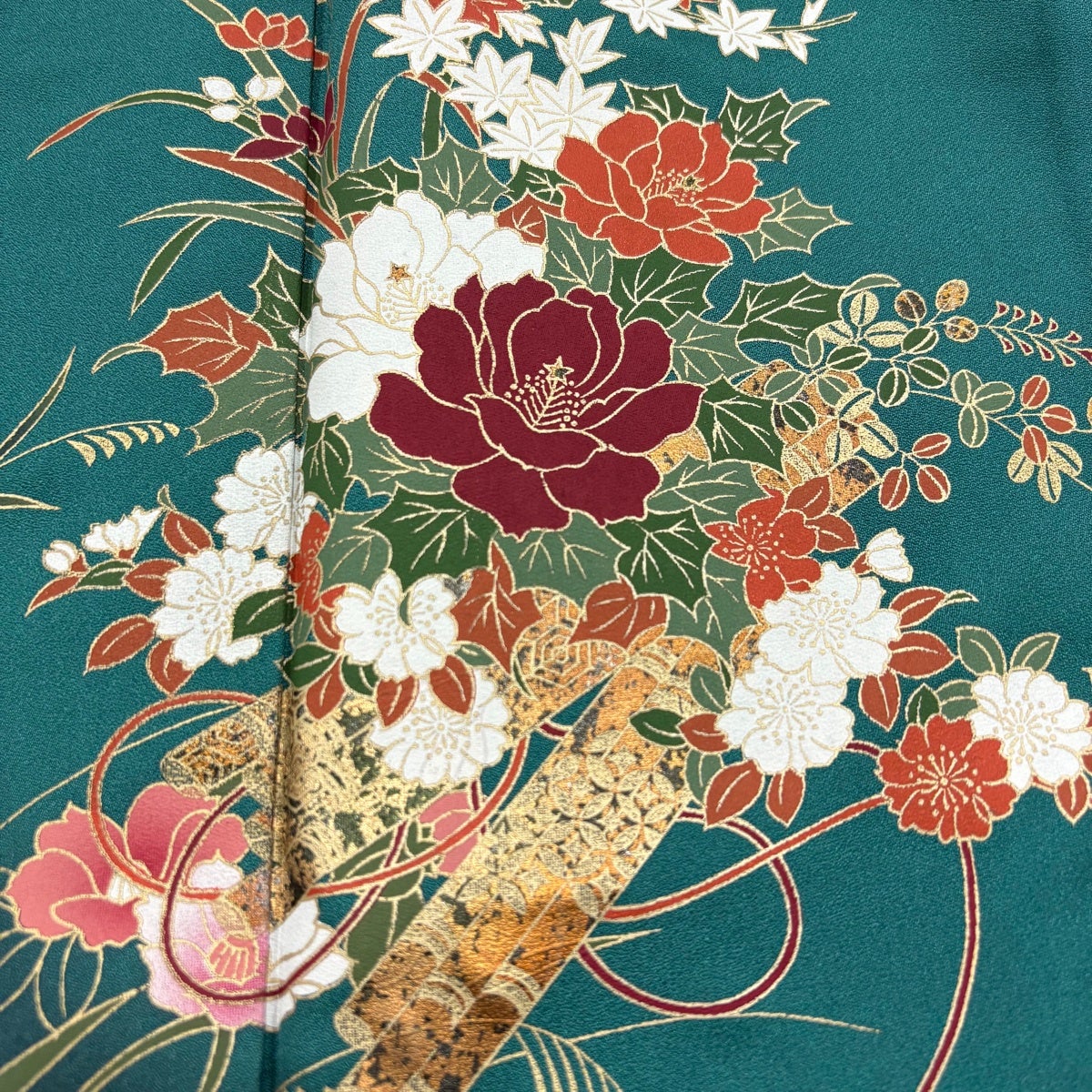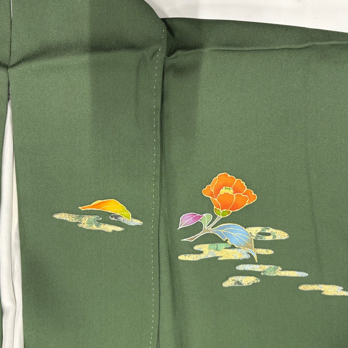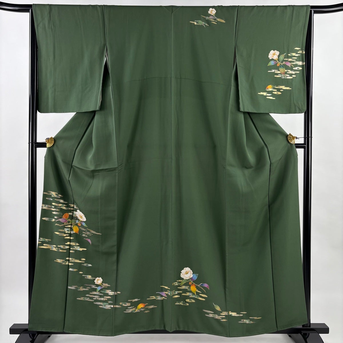 訪問着 身丈159.5cm 裄丈65.5cm M 袷 椿 霞 金銀彩 緑 正絹 秀品