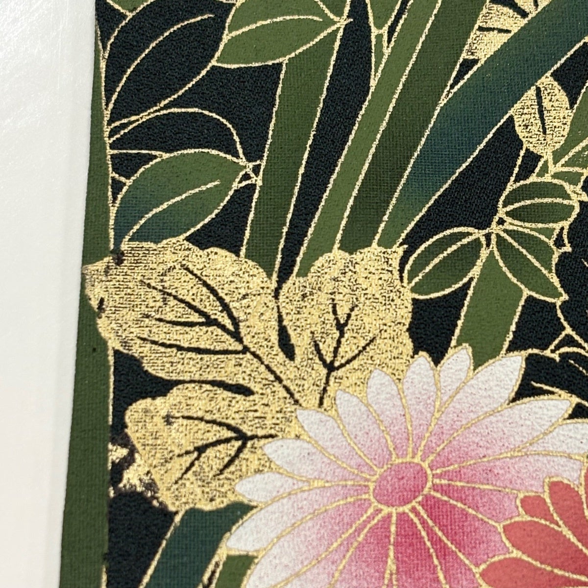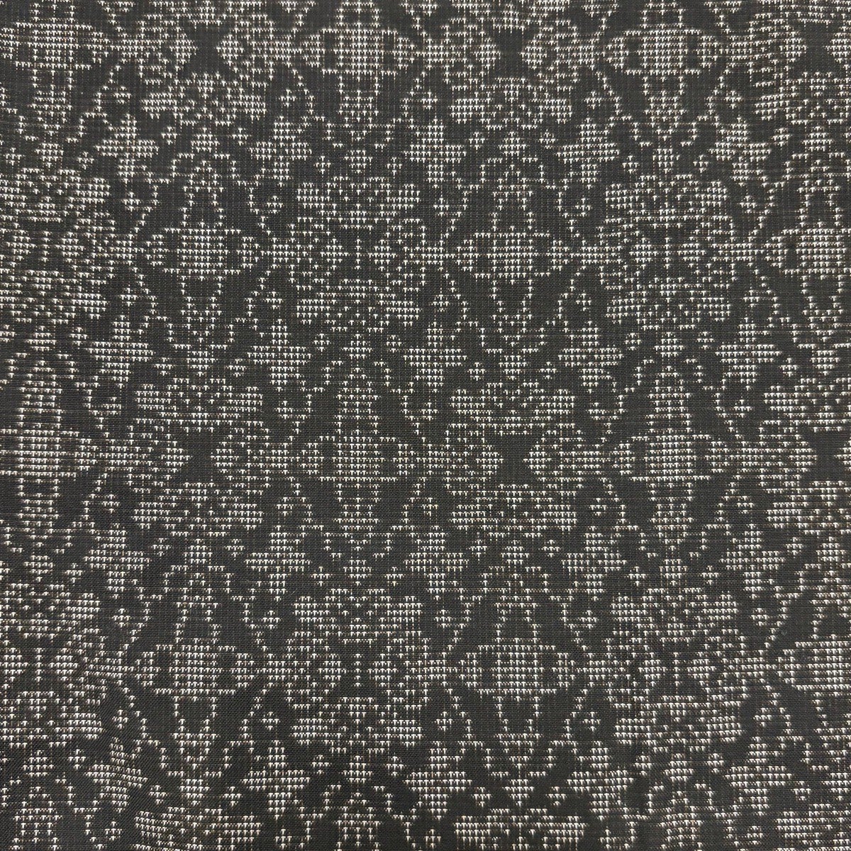【美品】 小紋 身丈159cm 裄丈64.5cm M 袷 葉柄 有職文様 縮緬 黒 正絹 秀品