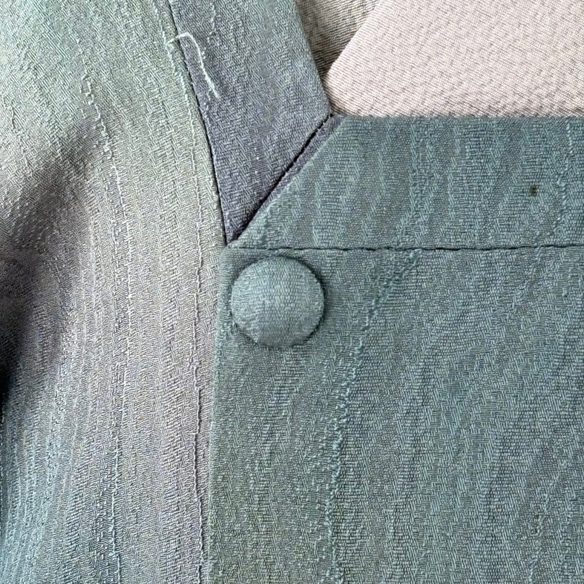 道行 身丈94.5cm 裄丈63.5cm S 和装コート 角衿 地紋 ぼかし 灰緑 正絹 秀品