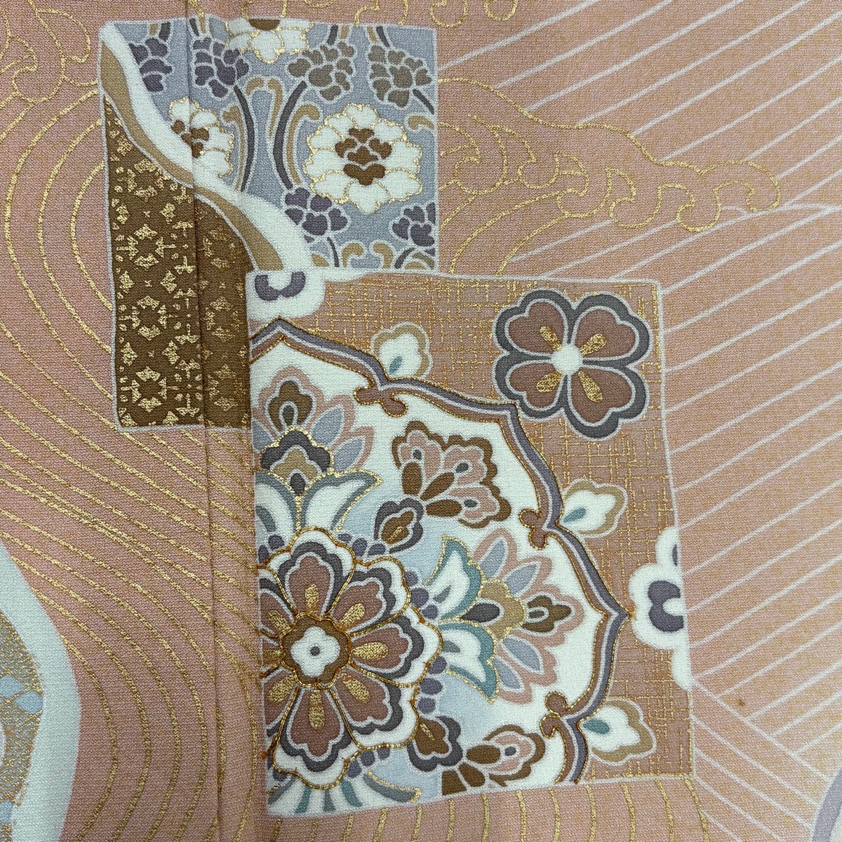 訪問着 身丈162cm 裄丈67.5cm L 袷 華文 波頭 金糸 金彩 ベージュ 正絹 秀品