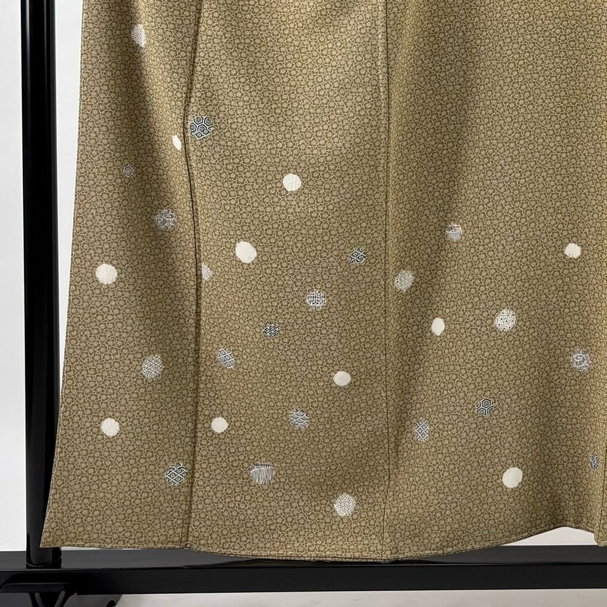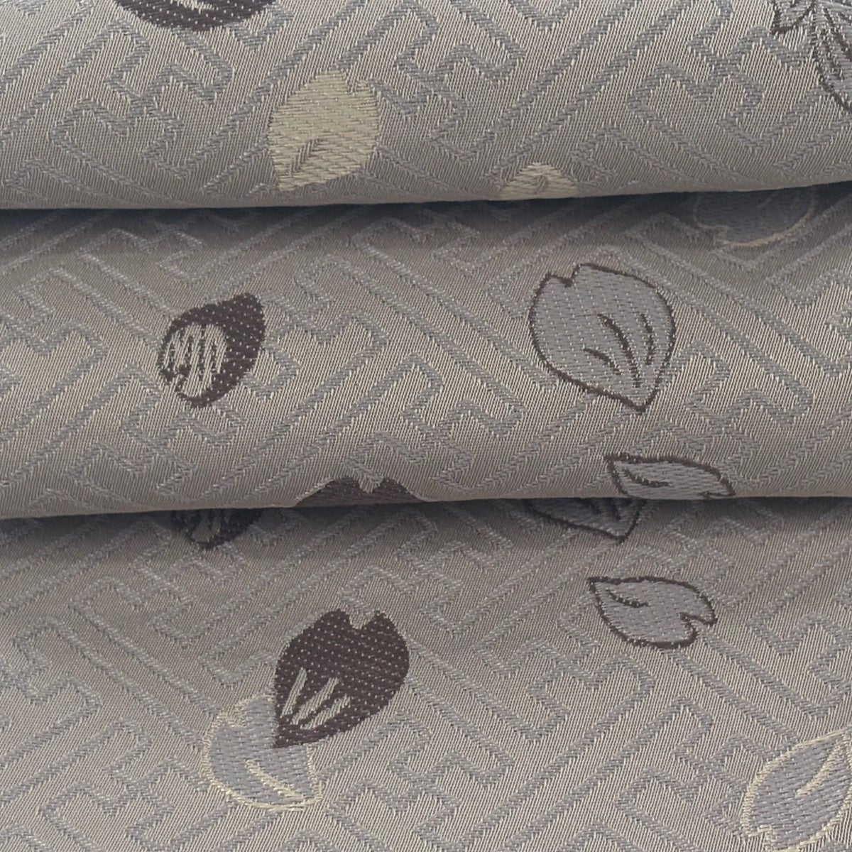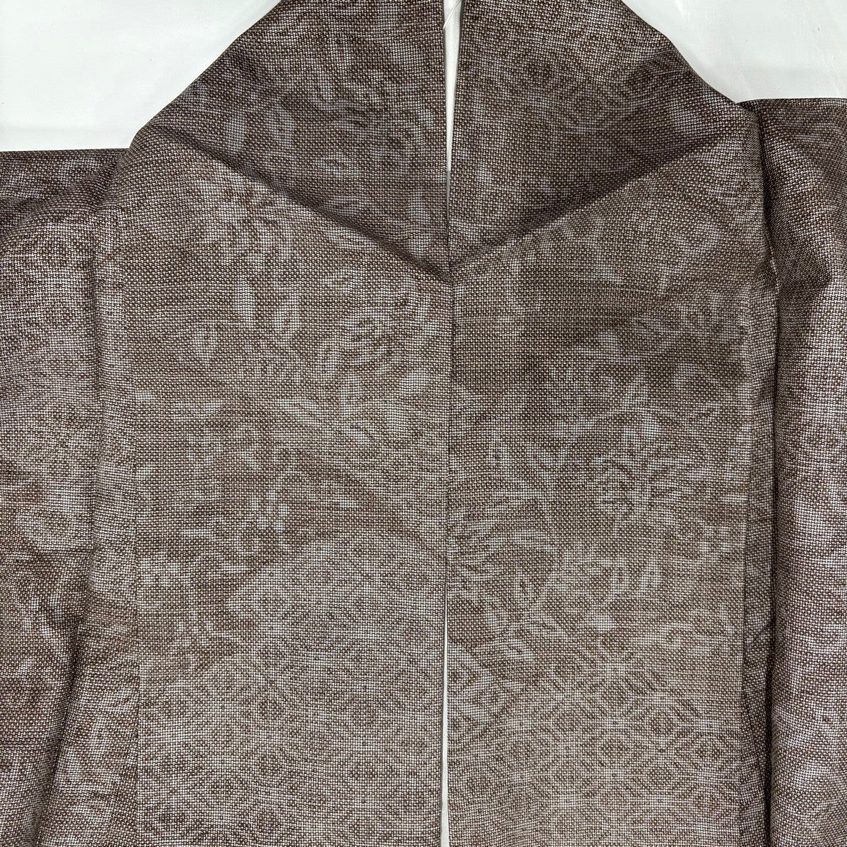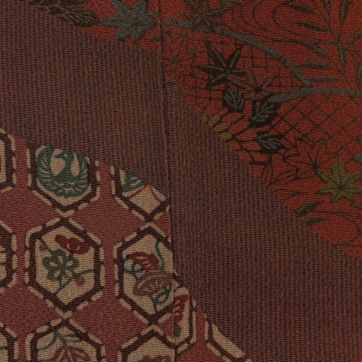 【美品】 紬 身丈162cm 裄丈63.5cm S 袷 花唐草 麻の葉 灰茶 正絹 秀品