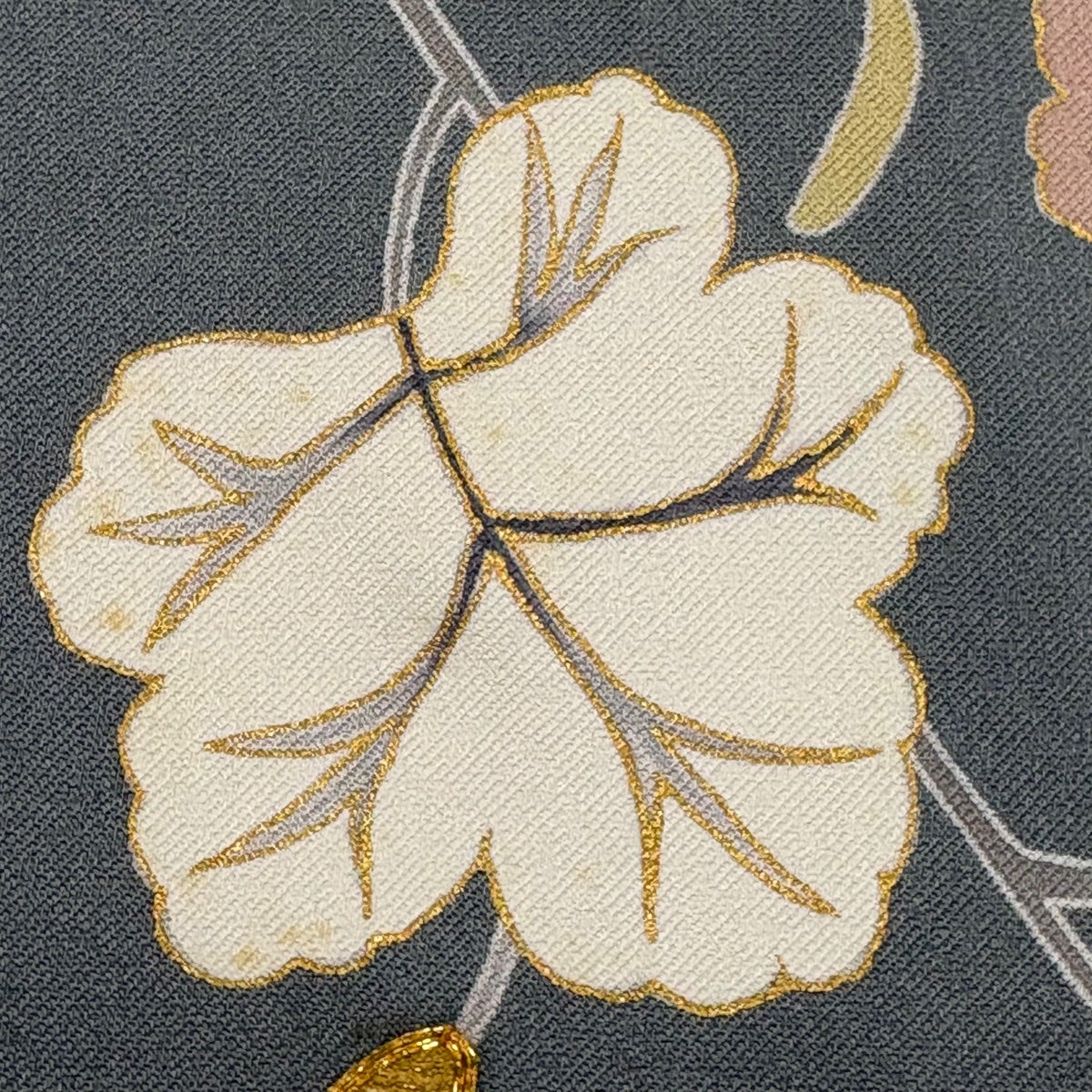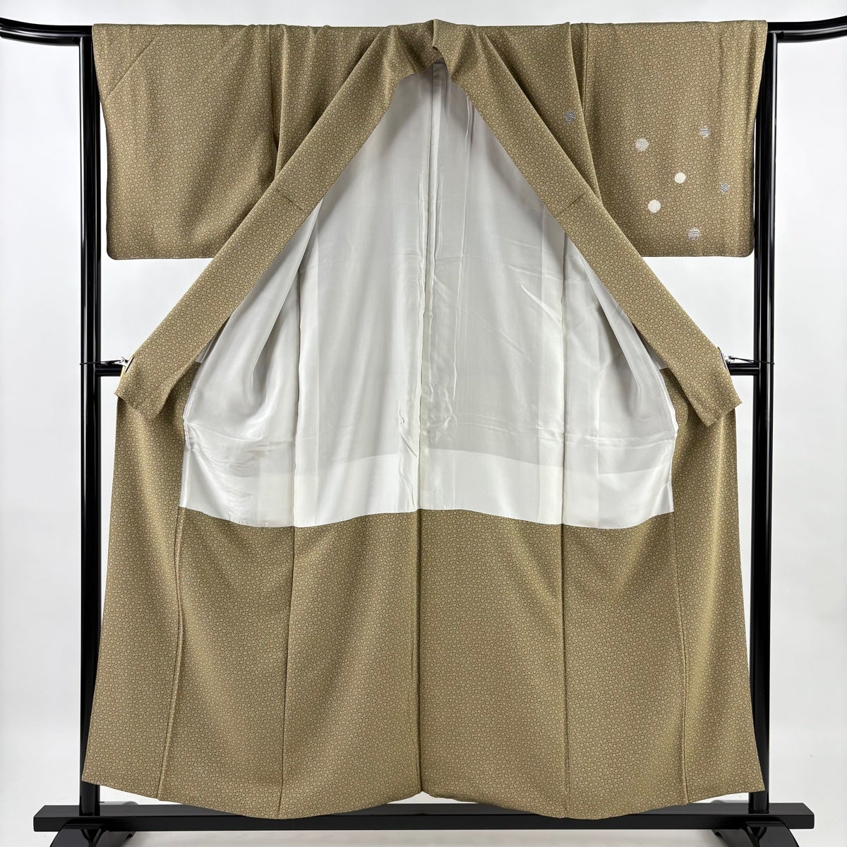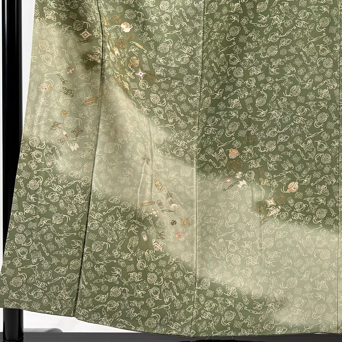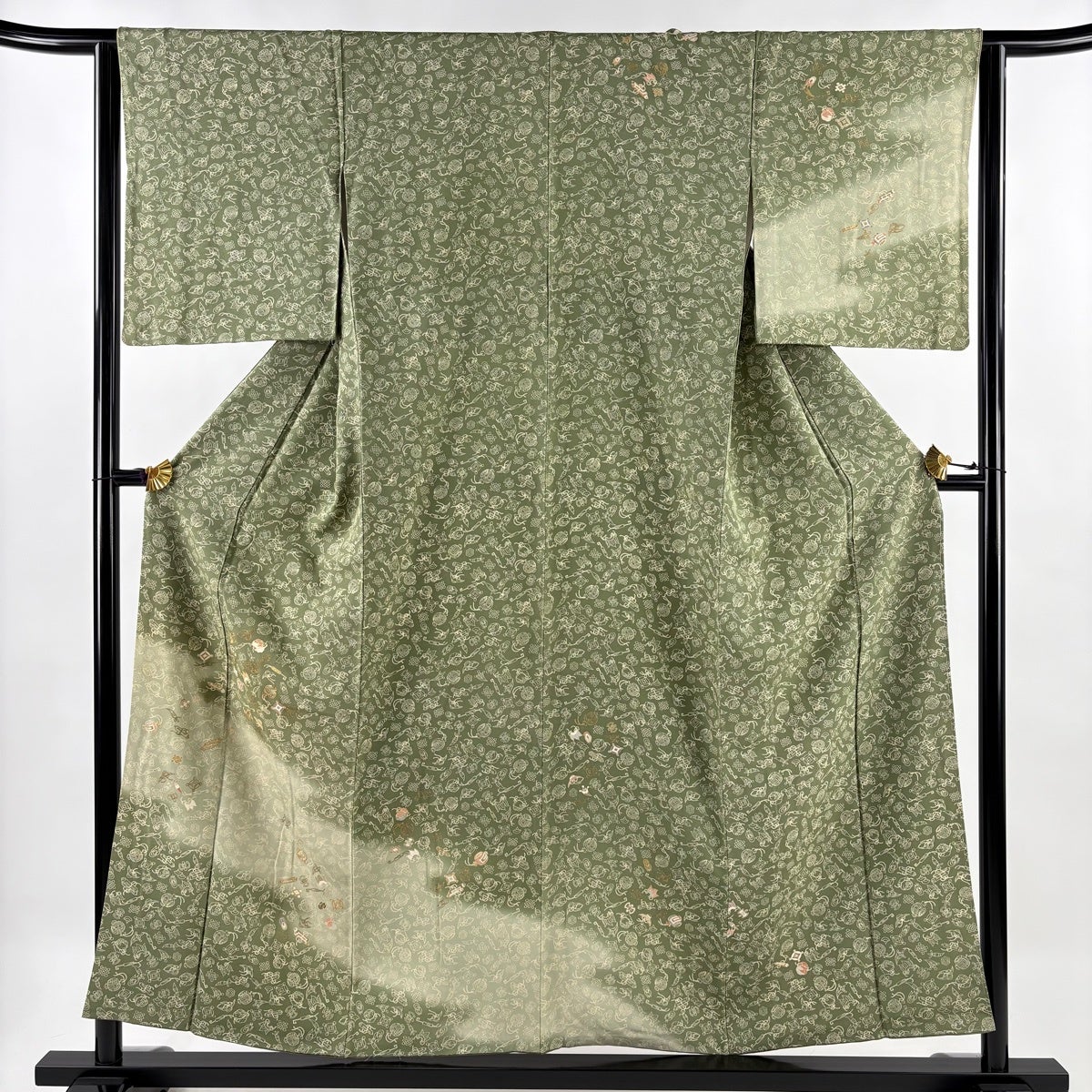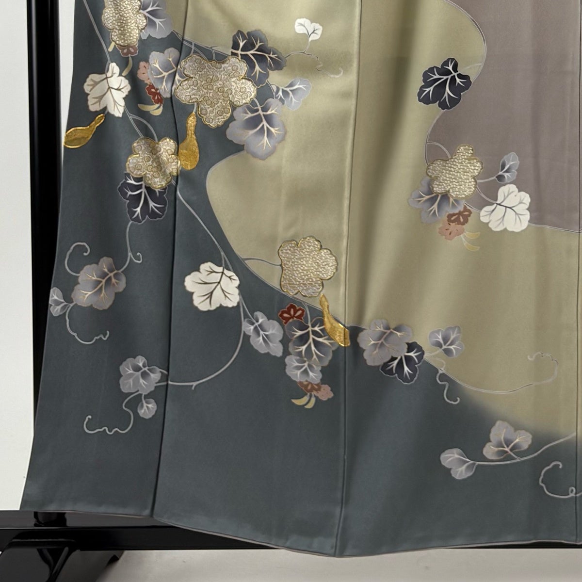 訪問着 身丈159cm 裄丈67cm M 袷 瓢箪 金糸 金彩 灰緑 正絹 秀品