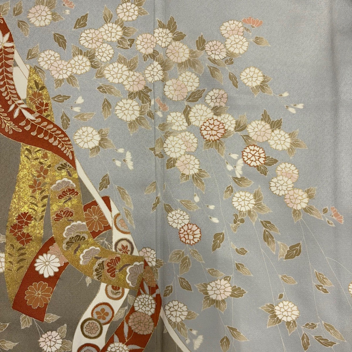 訪問着 身丈162cm 裄丈64cm M 袷 熨斗 草花 金彩 金糸 青灰色 正絹 秀品