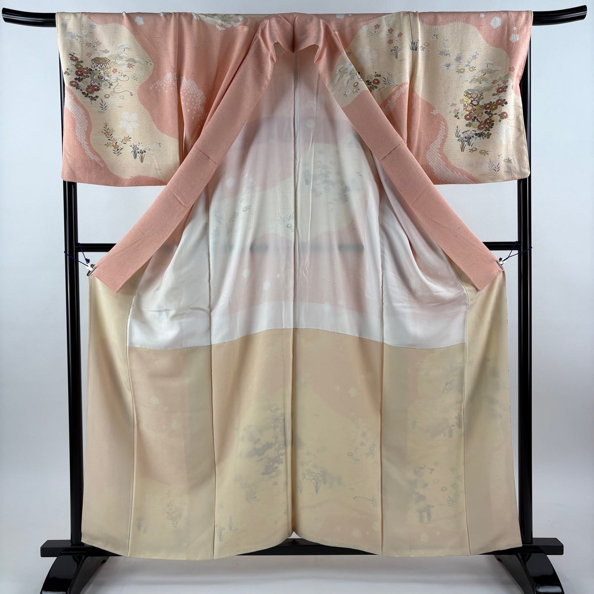 訪問着 身丈165cm 裄丈68cm L 袷 やまと 扇 草花 金彩 ぼかし ピンク 正絹 秀品