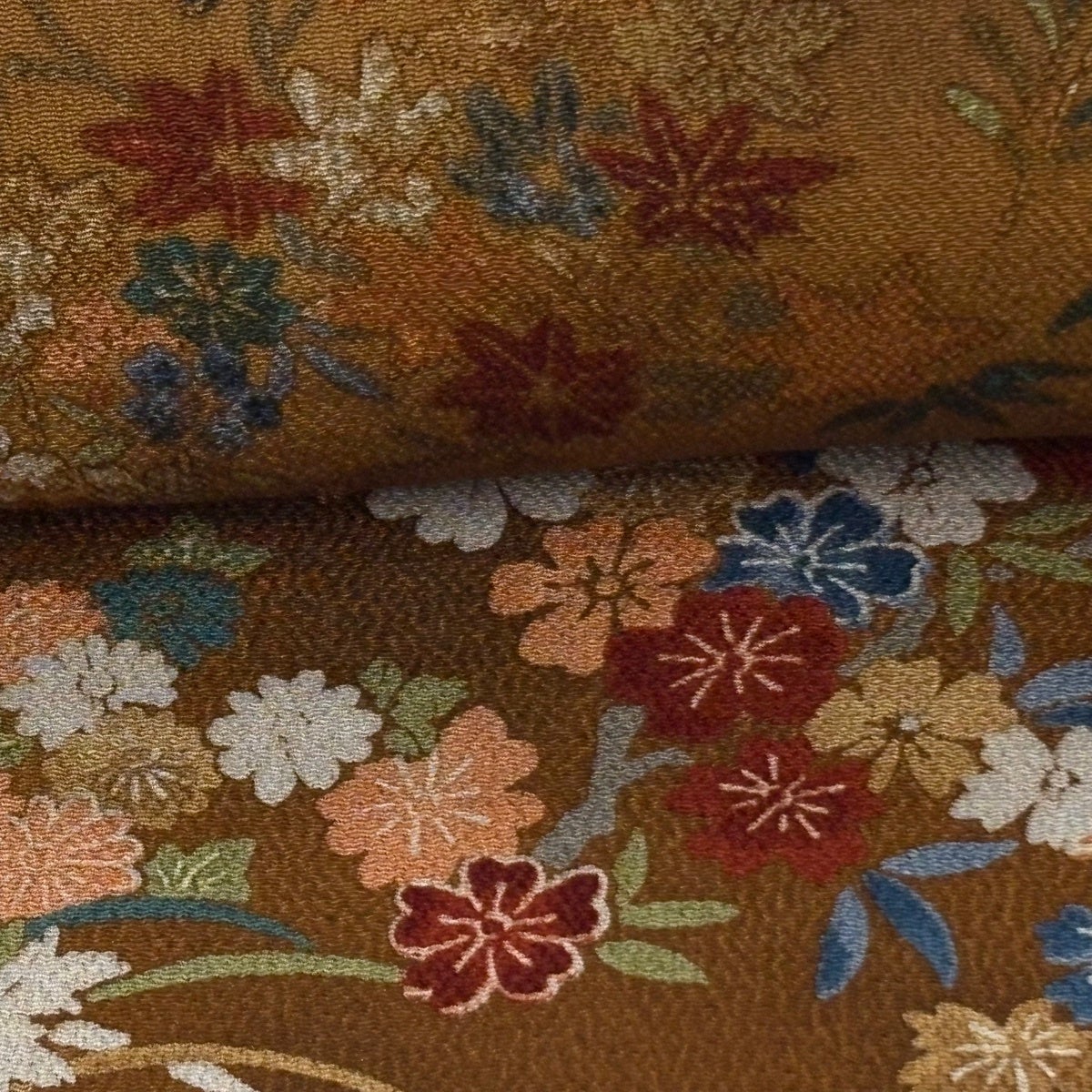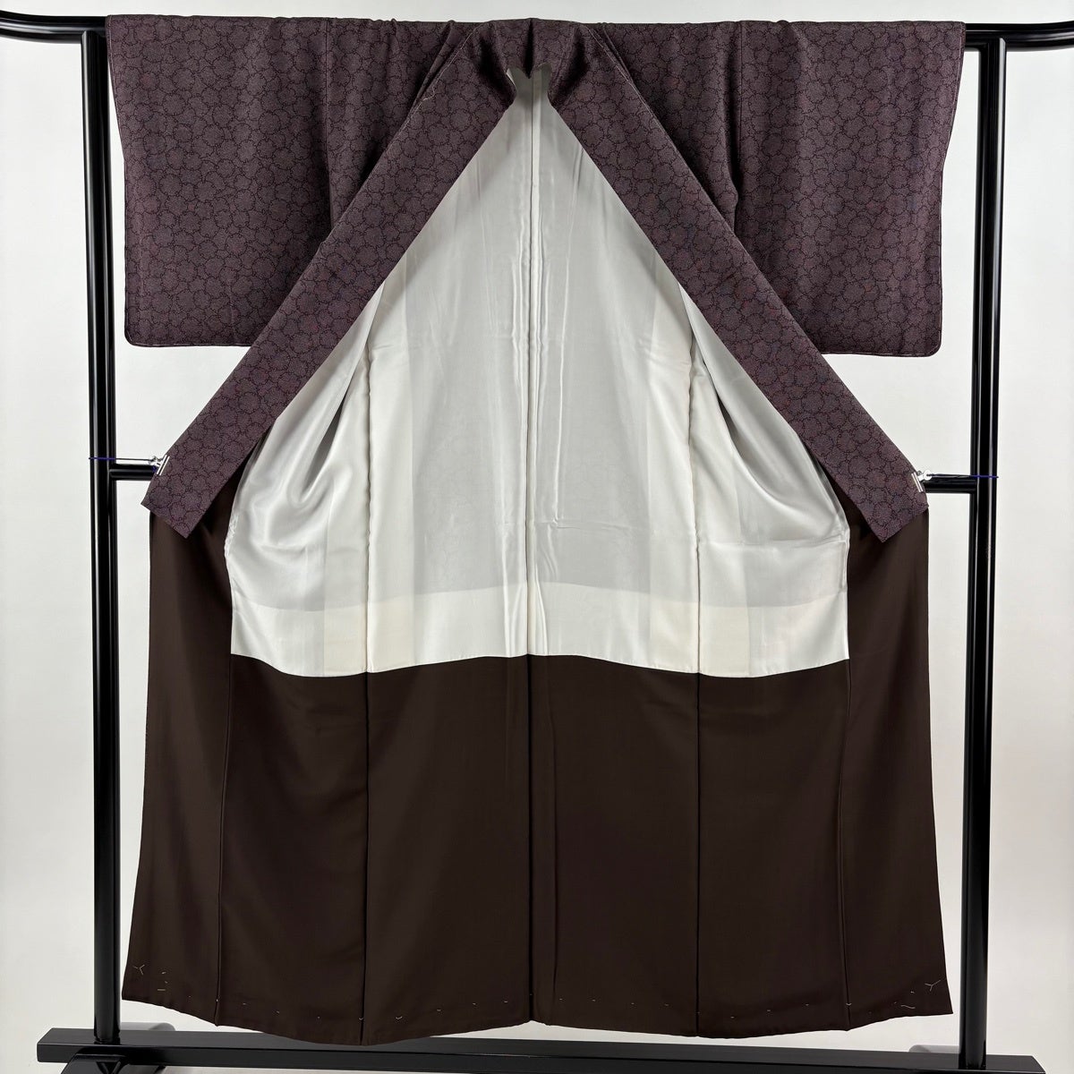 【美品】 紬 身丈156cm 裄丈67cm M 袷 菊 焦茶色 正絹 秀品