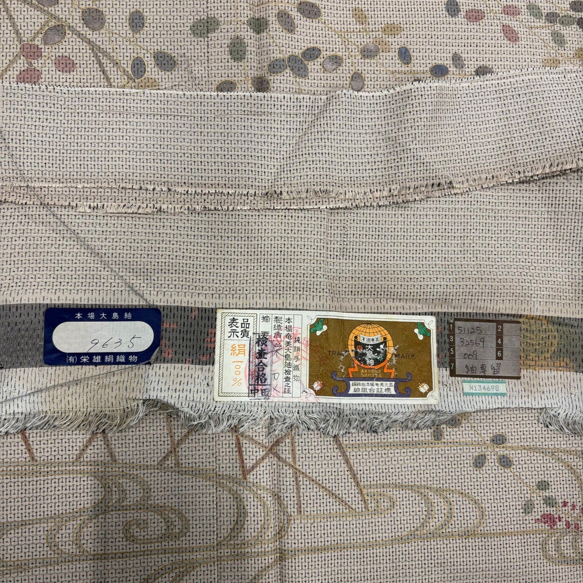 【美品】 大島紬 身丈159cm 裄丈63.5cm S 袷 証紙あり 花唐草 薄オレンジ 正絹 秀品