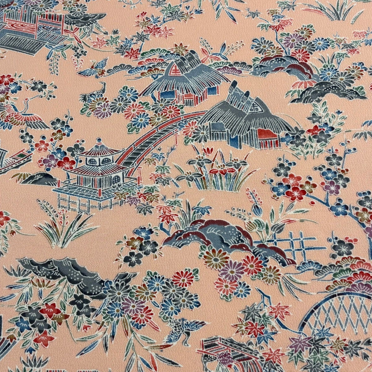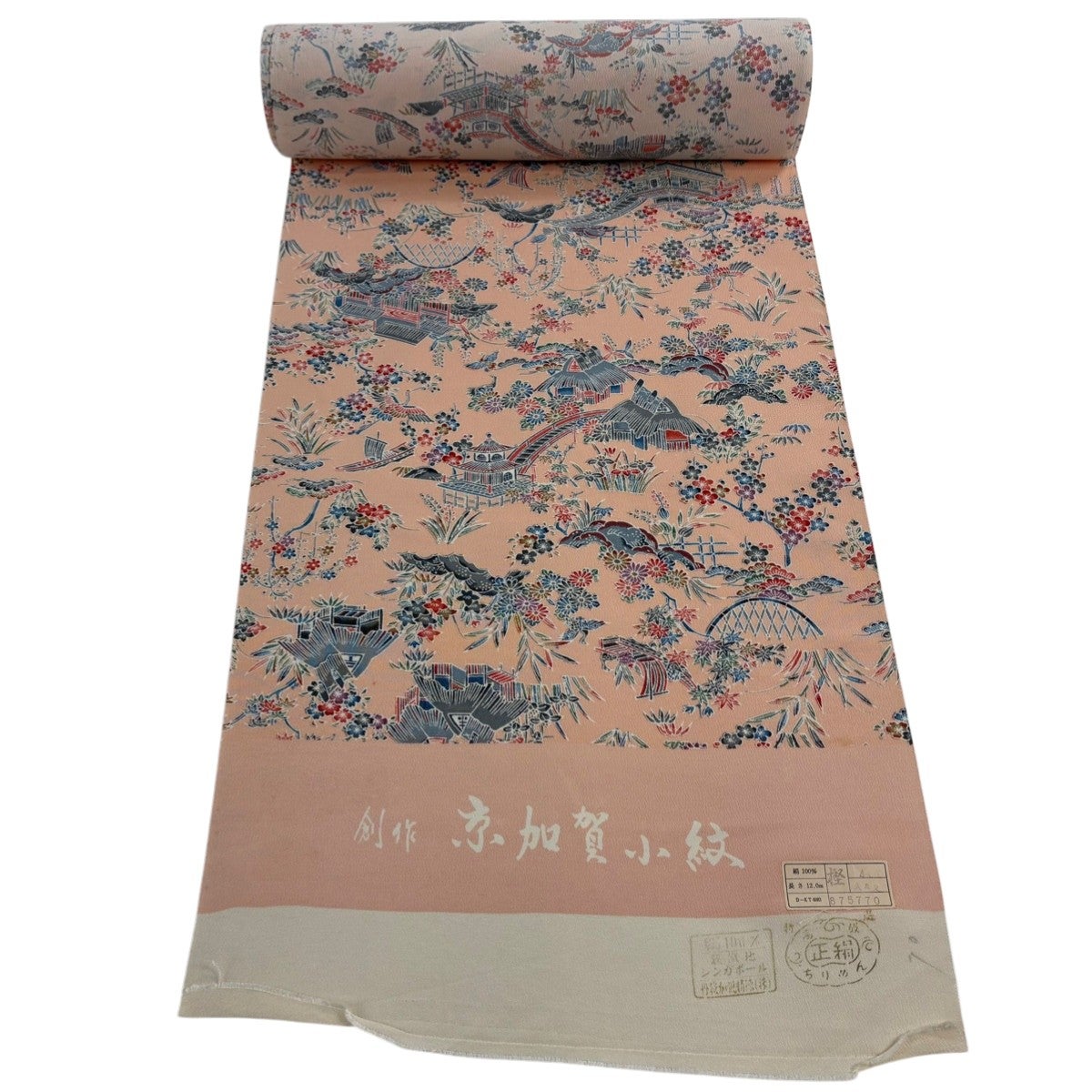 【美品】 江戸小紋 身丈163cm 裄丈64.5cm M 袷 角通し 薄オレンジ 正絹 秀品