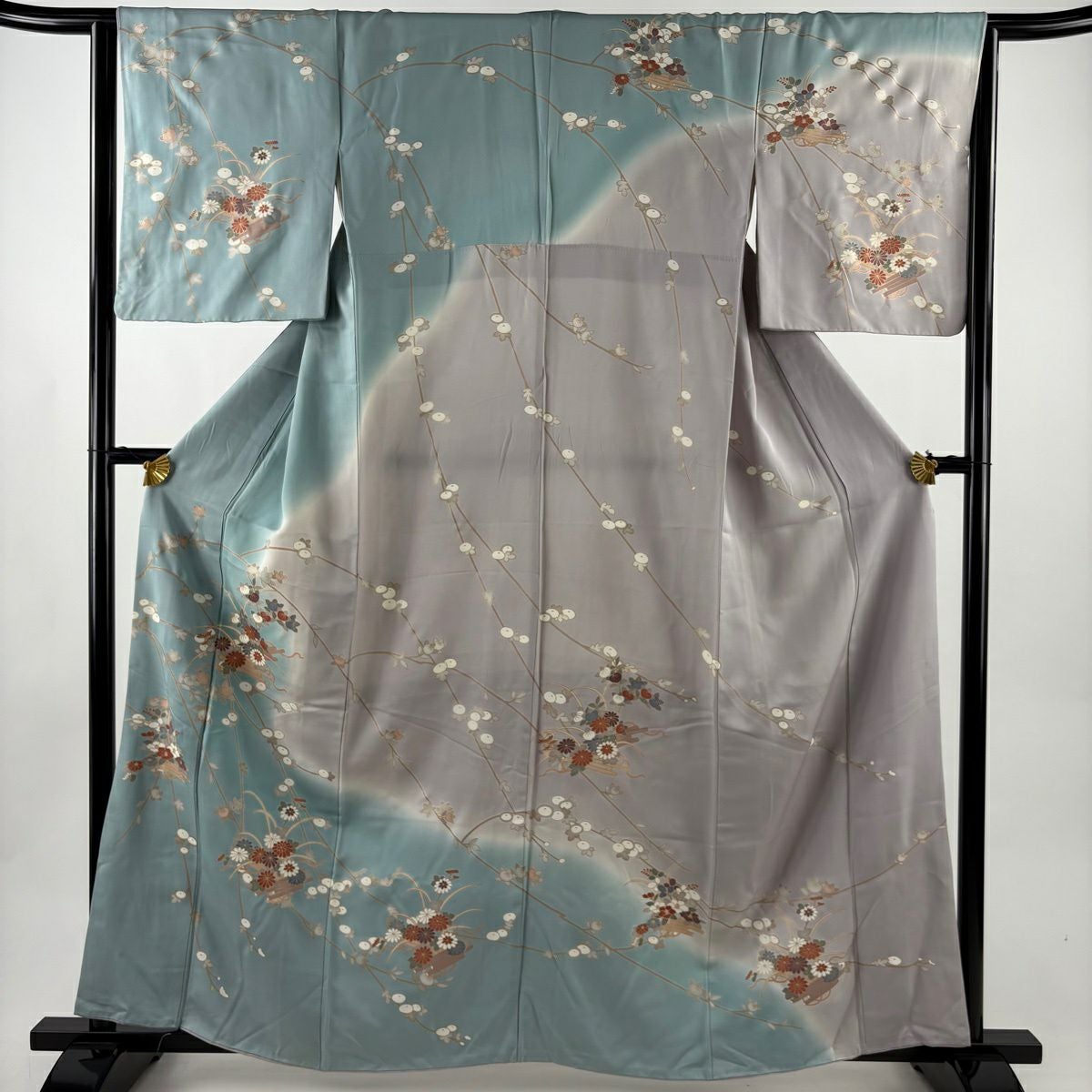 他の画像を見る 30%OFF 【美品】 色留袖 身丈160.5cm 裄丈65cm M 袷 几帳 笠松 金糸 ぼかし 青灰色 正絹 秀品 一つ紋 K30 当店通常価格 ¥ 8,800 ¥ 6,160 税込