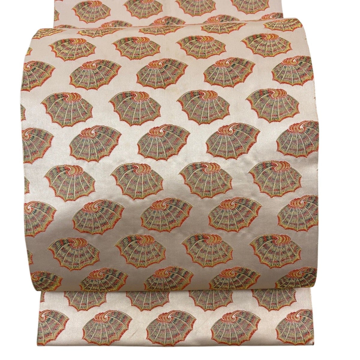 開き名古屋帯 秀品 龍村美術織物 比翼仕立て 彩貝 金糸 ベージュ 正絹
