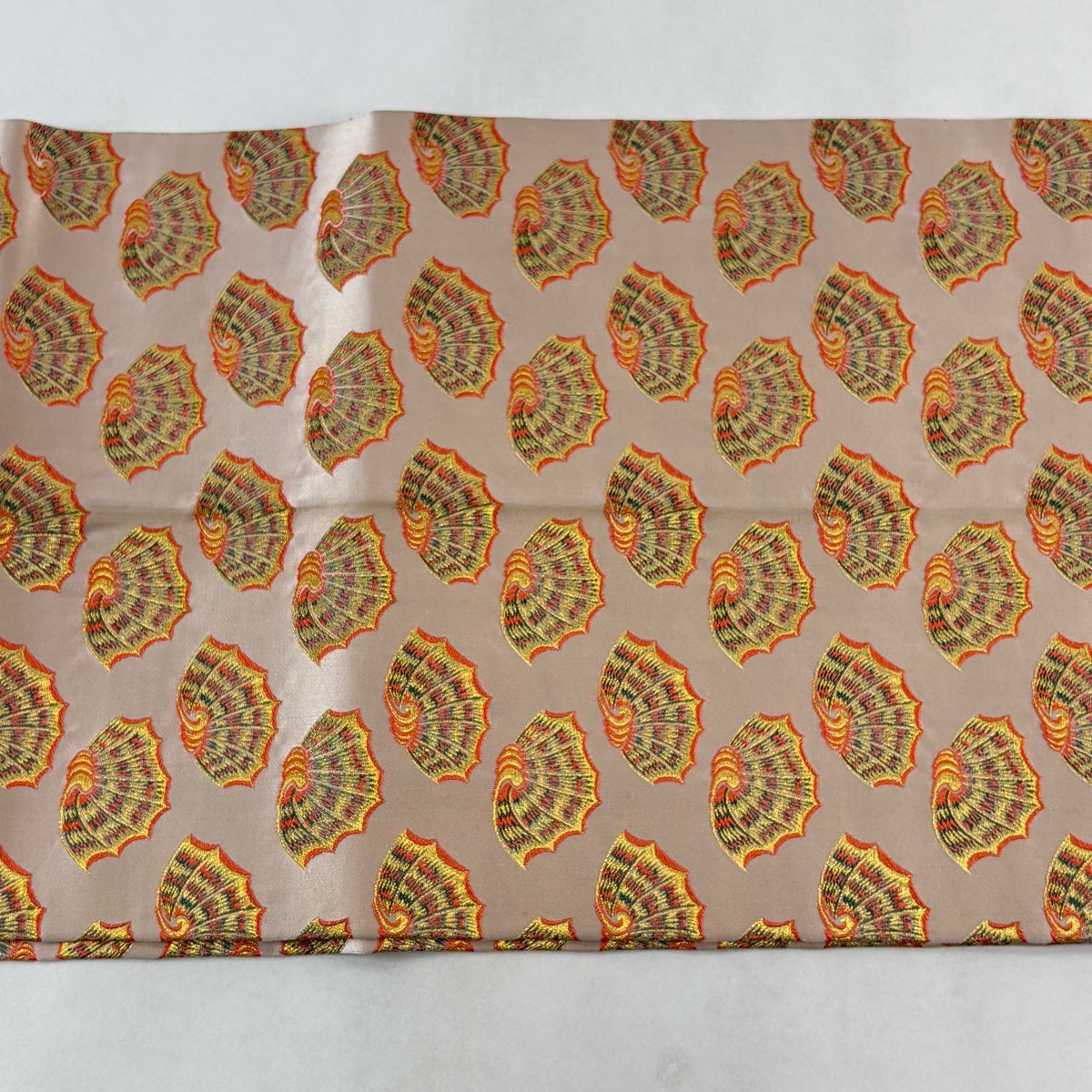 【美品】 袋帯 秀品 明綴 名物裂文様 金糸 箔 ピンクベージュ 六通 正絹