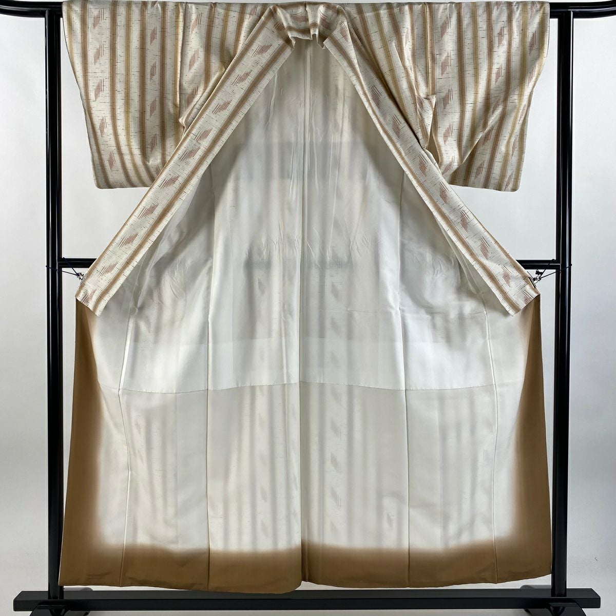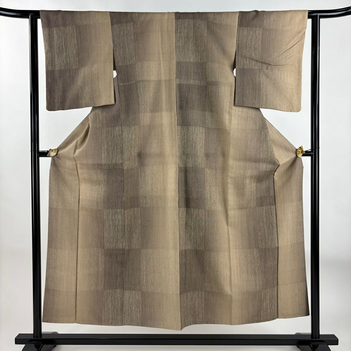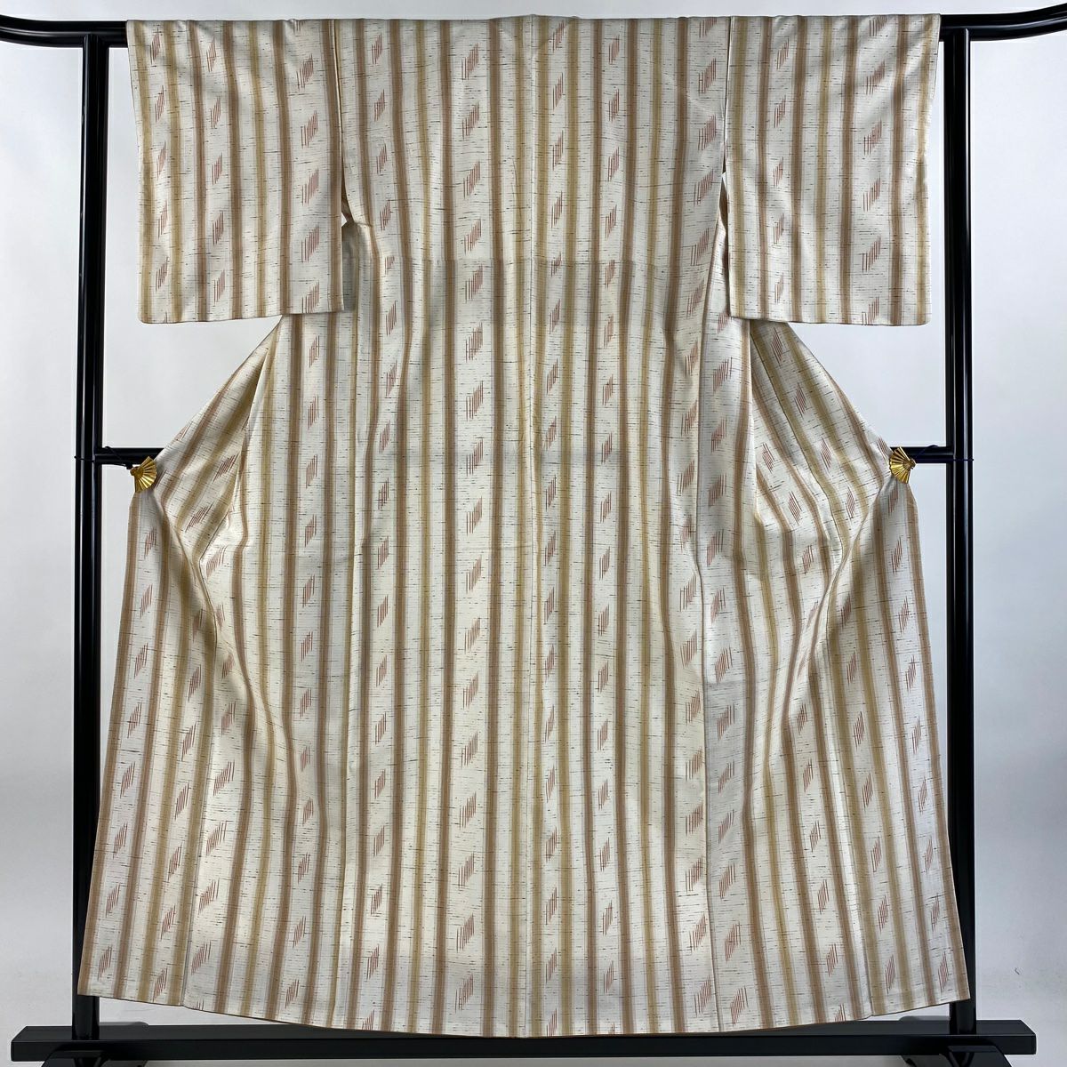 【在庫一掃】 紬 身丈156cm 裄丈60.5cm S 袷 縞 幾何学 ベージュ 正絹 名品