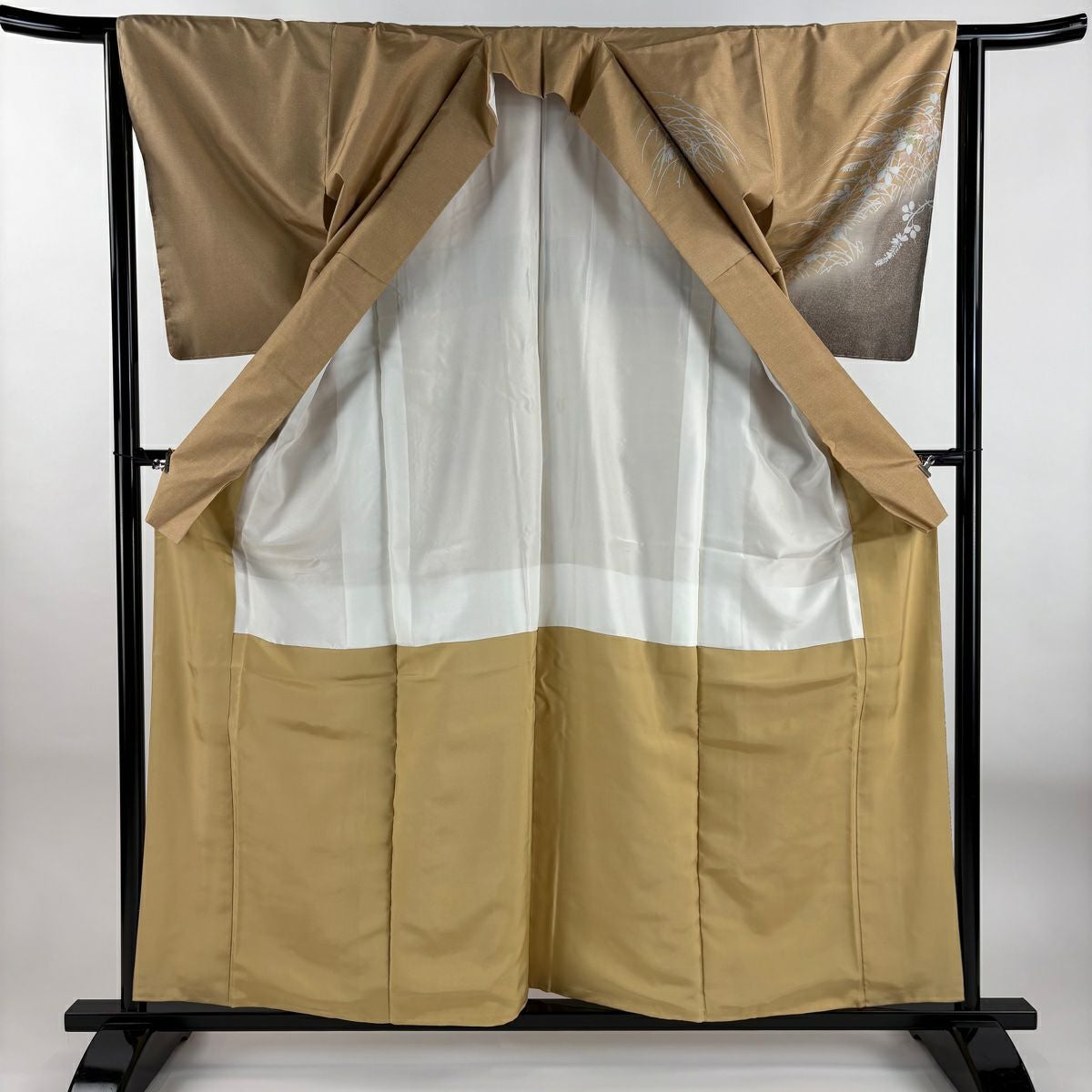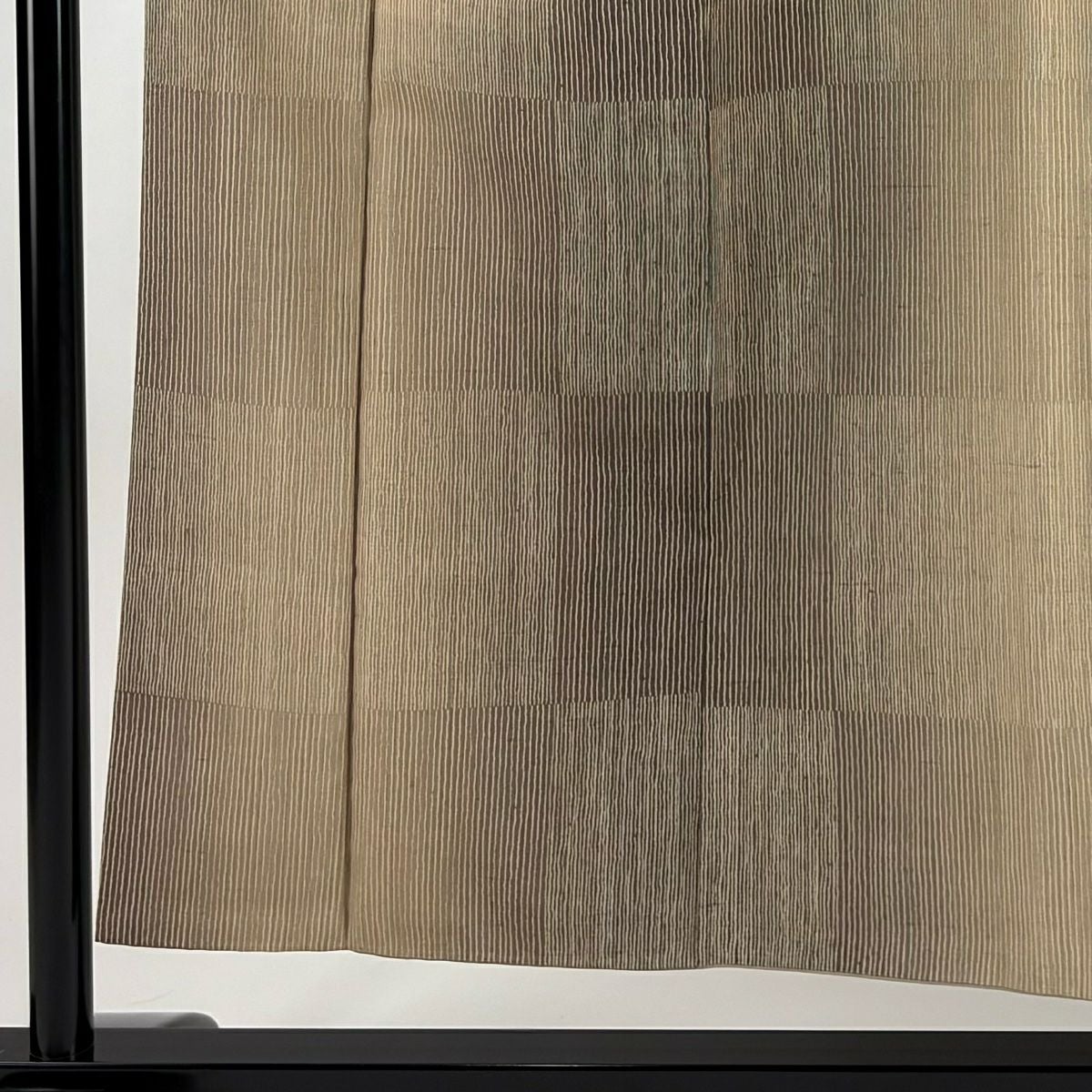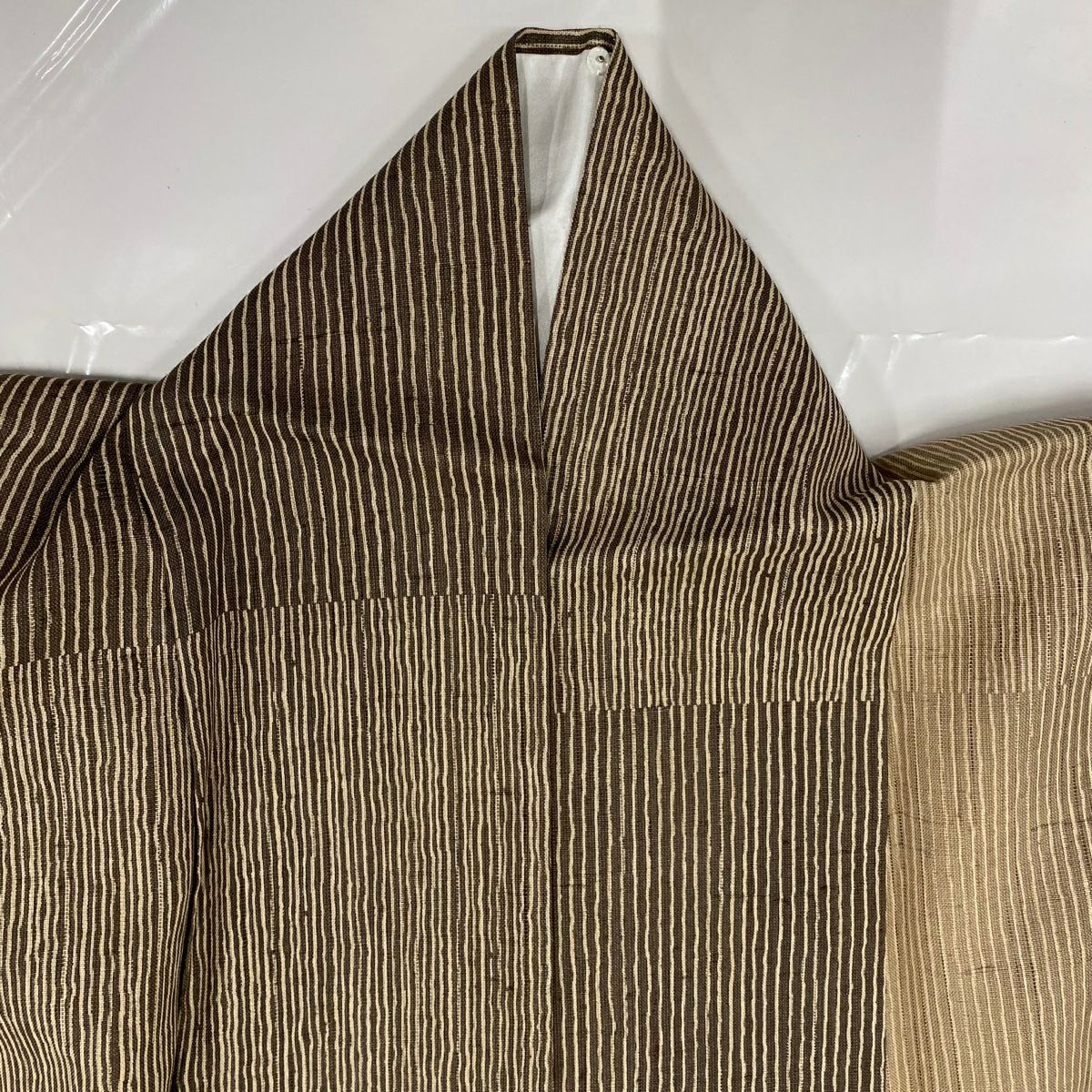 【在庫一掃】 紬 身丈156cm 裄丈60.5cm S 袷 縞 幾何学 ベージュ 正絹 名品
