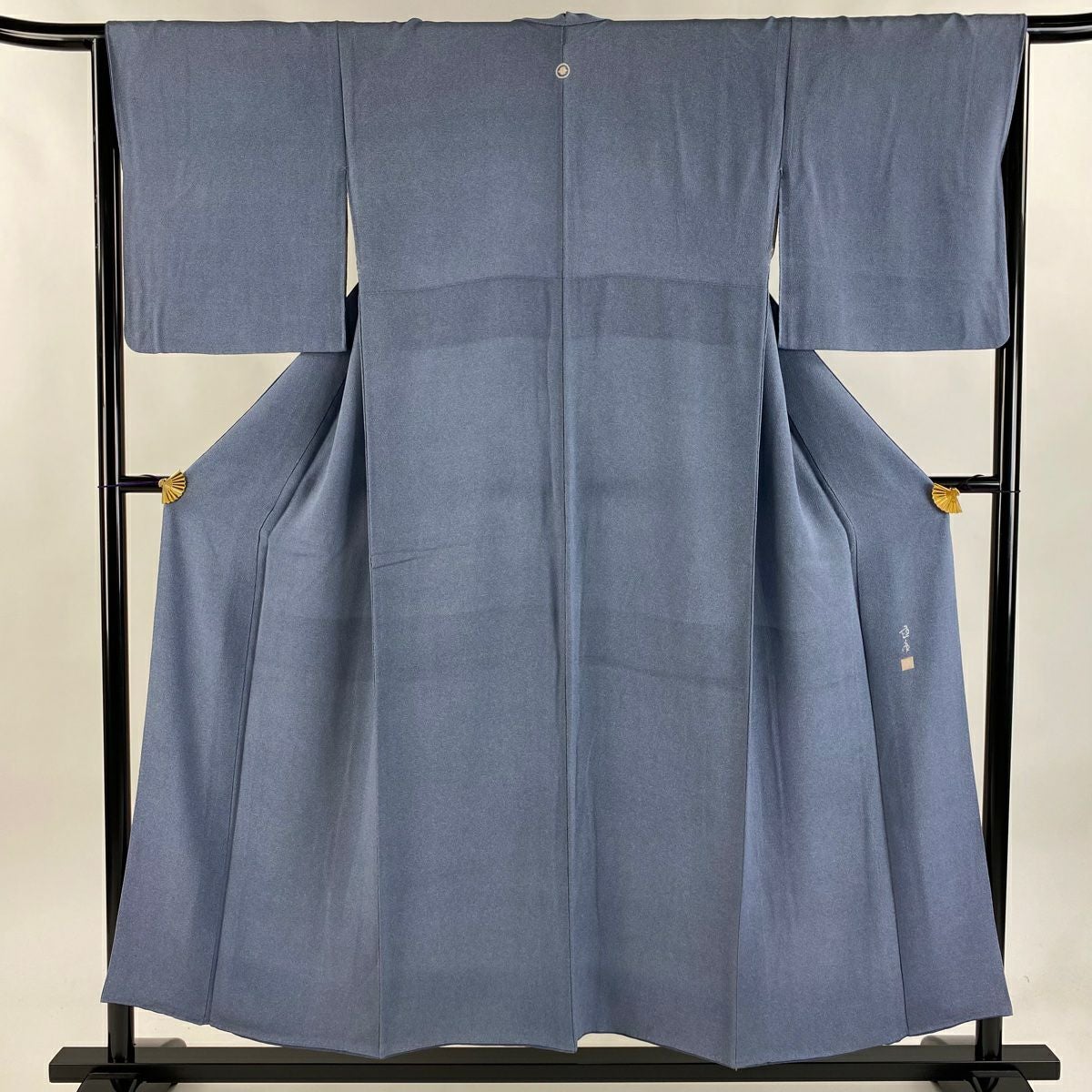 【在庫一掃】 江戸小紋 身丈153cm 裄丈65cm M 袷 落款あり 鮫 青灰色 正絹 名品 一つ紋