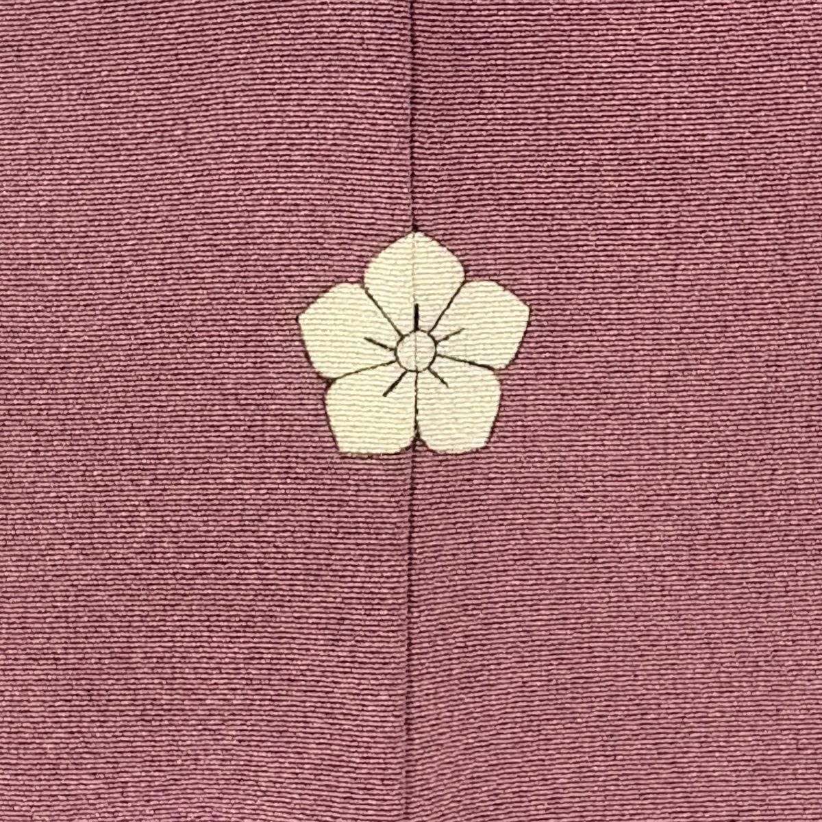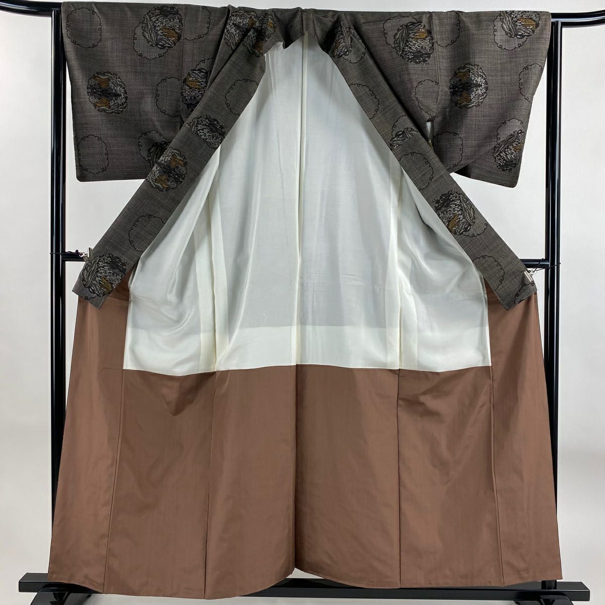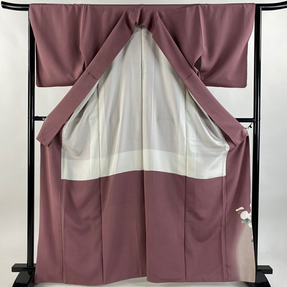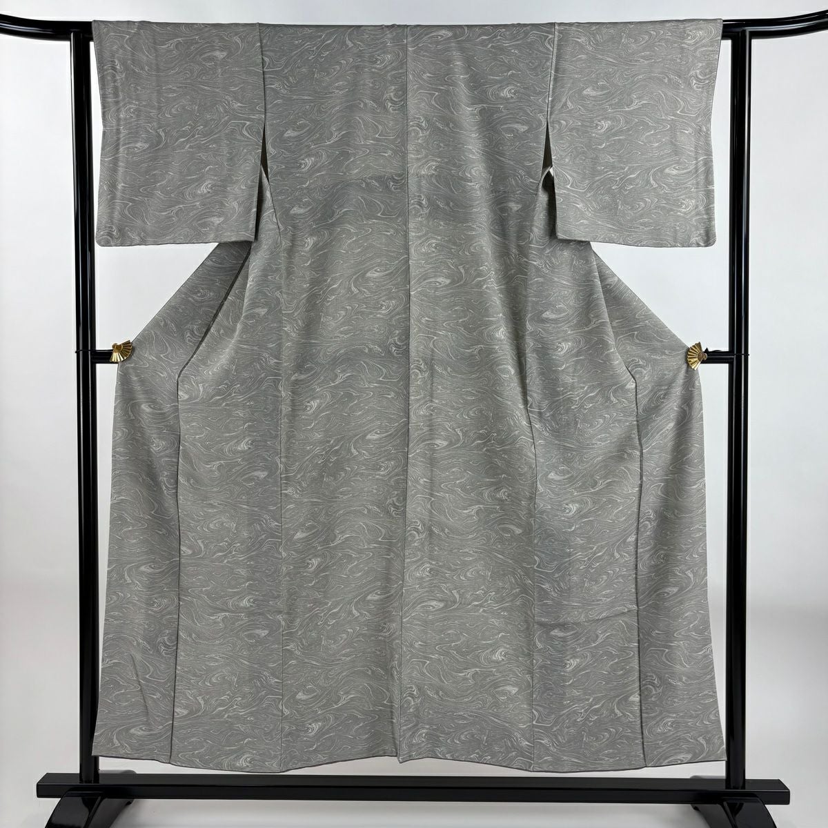 【在庫一掃】 小紋 身丈155.5cm 裄丈64cm M 袷 落款あり 菊 ちりめん 灰紫 正絹 名品