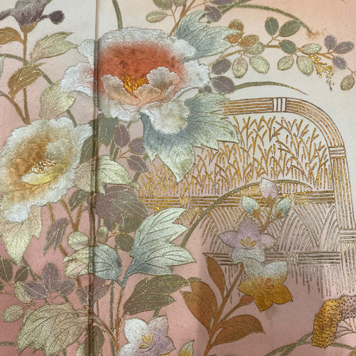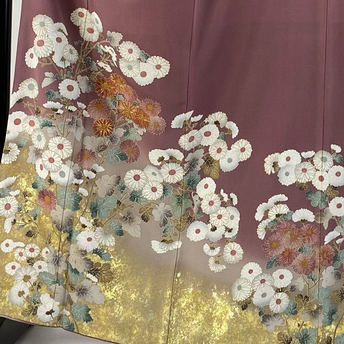 【在庫一掃】 色留袖 身丈165cm 裄丈65cm M 袷 中村乃武夫 落款あり 菊 金糸 金彩 濃ピンク 正絹 名品 一つ紋