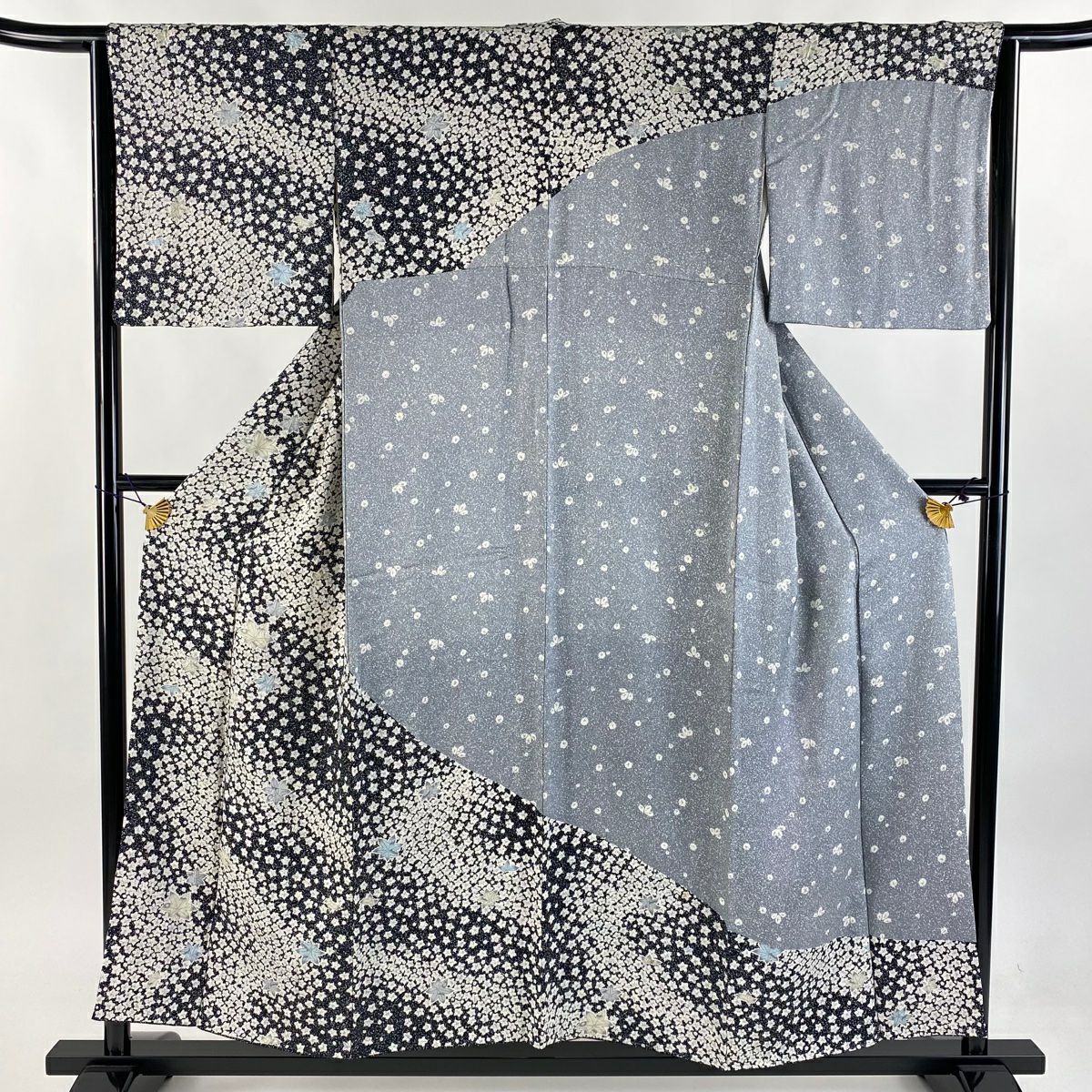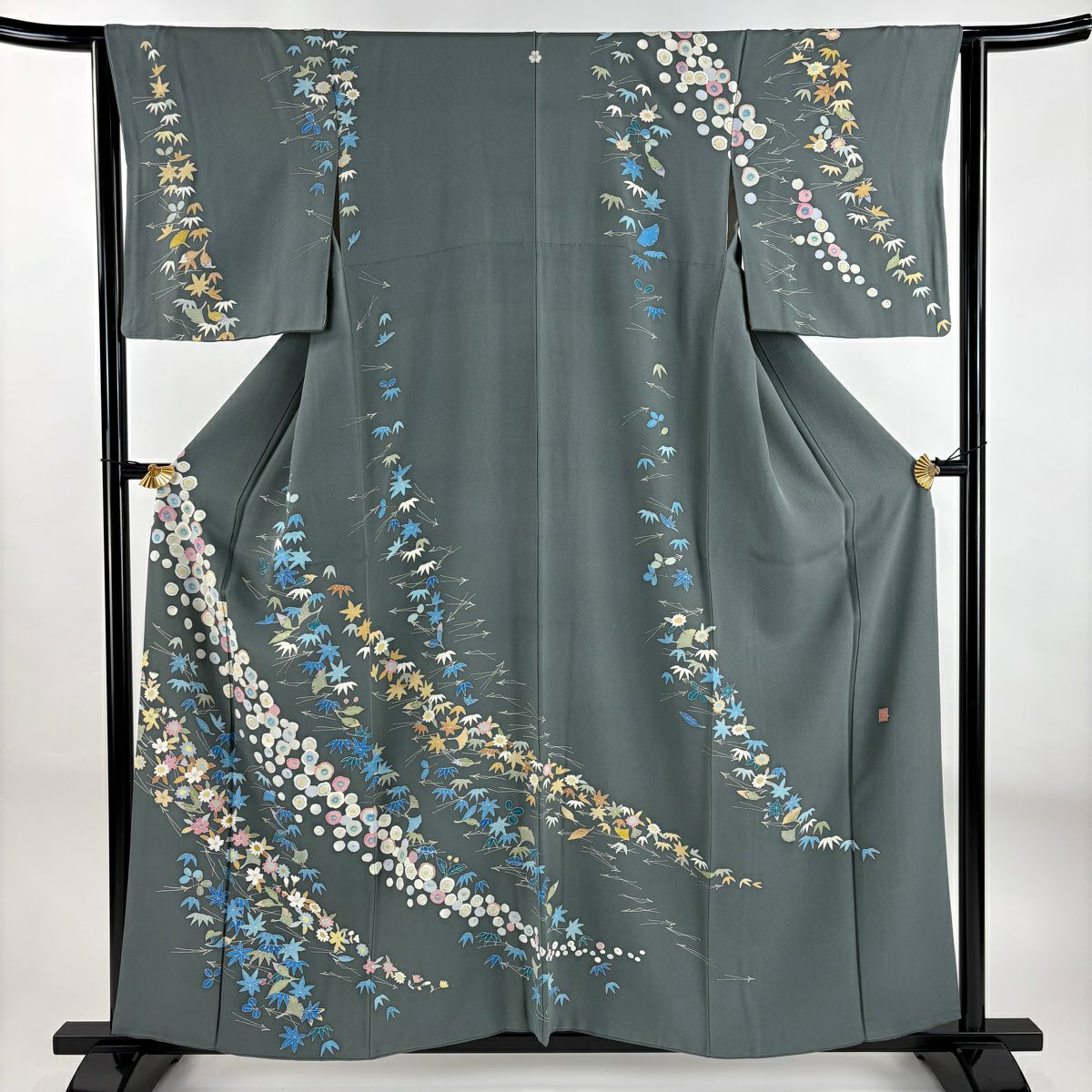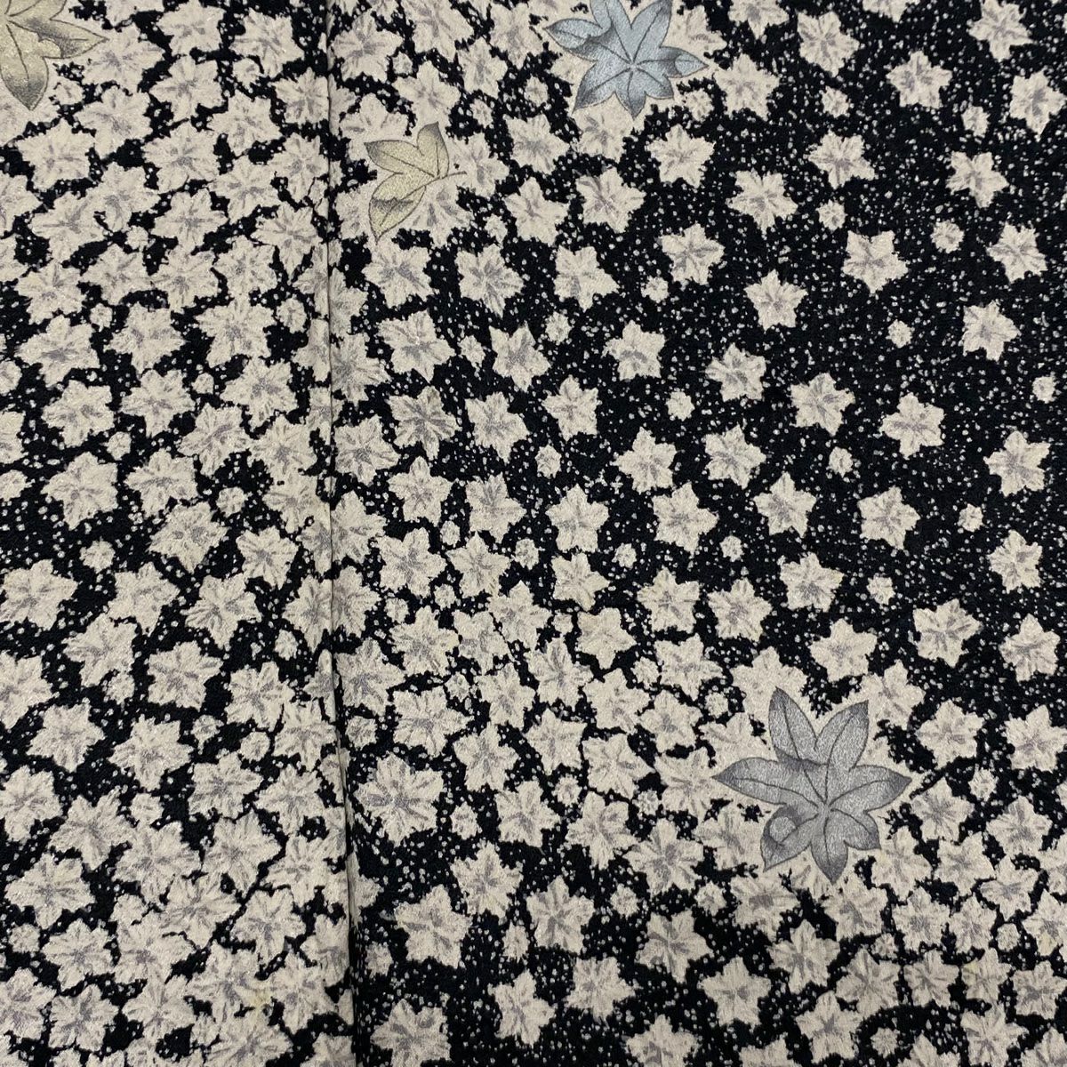 【在庫一掃】 訪問着 身丈157cm 裄丈62cm S 袷 楓 花 黒灰 正絹 名品