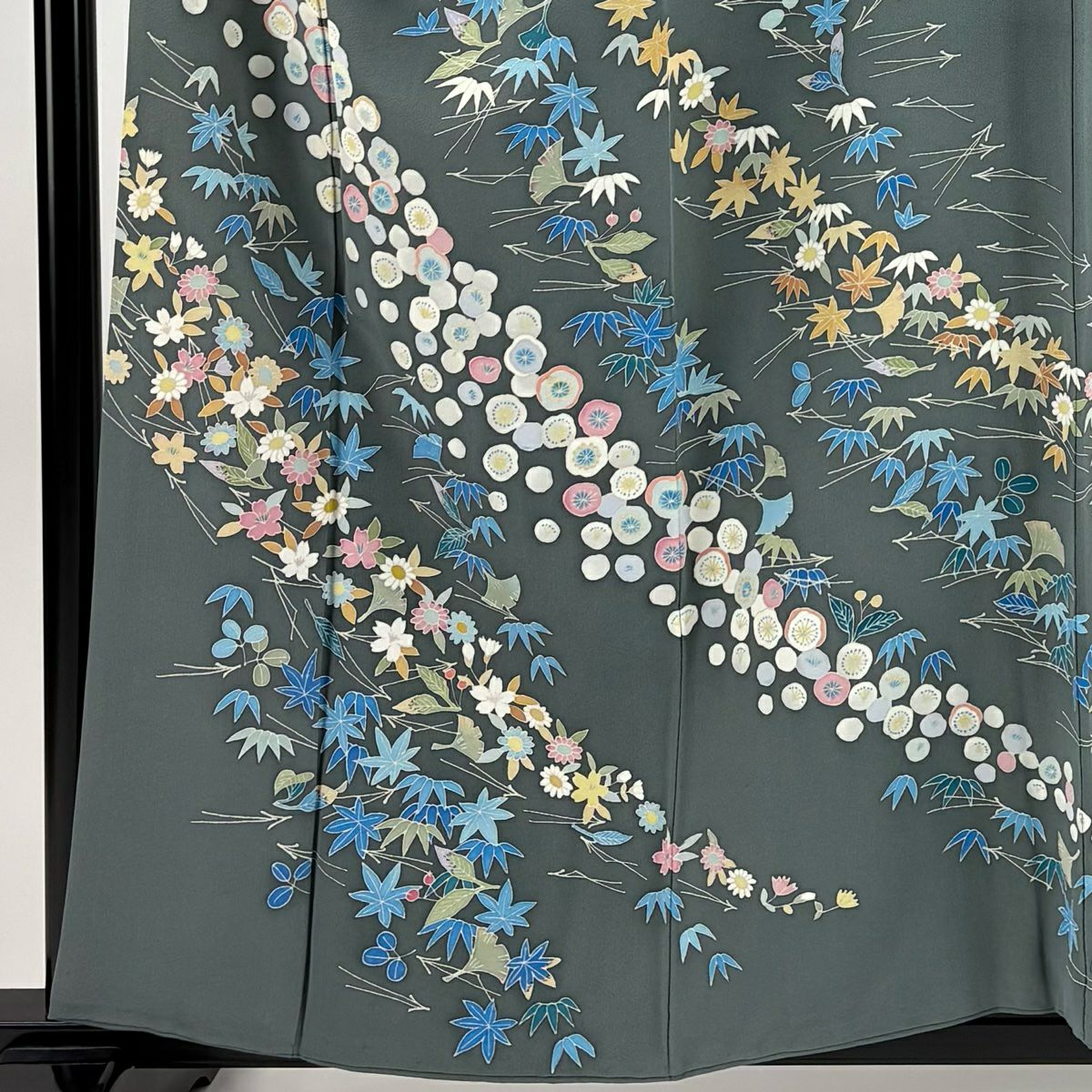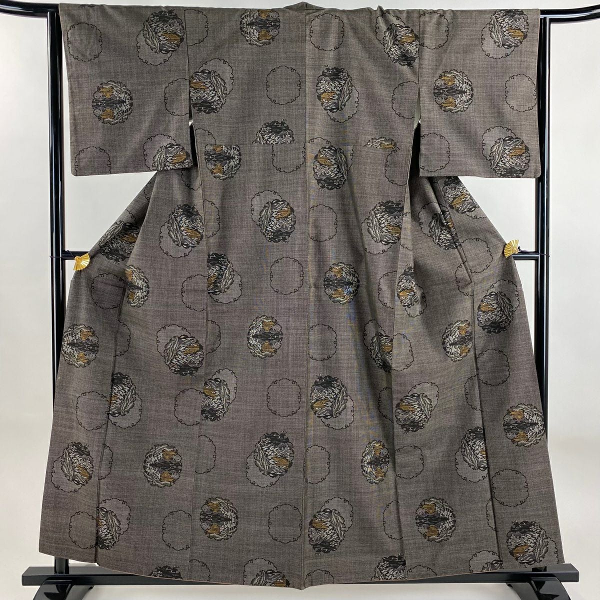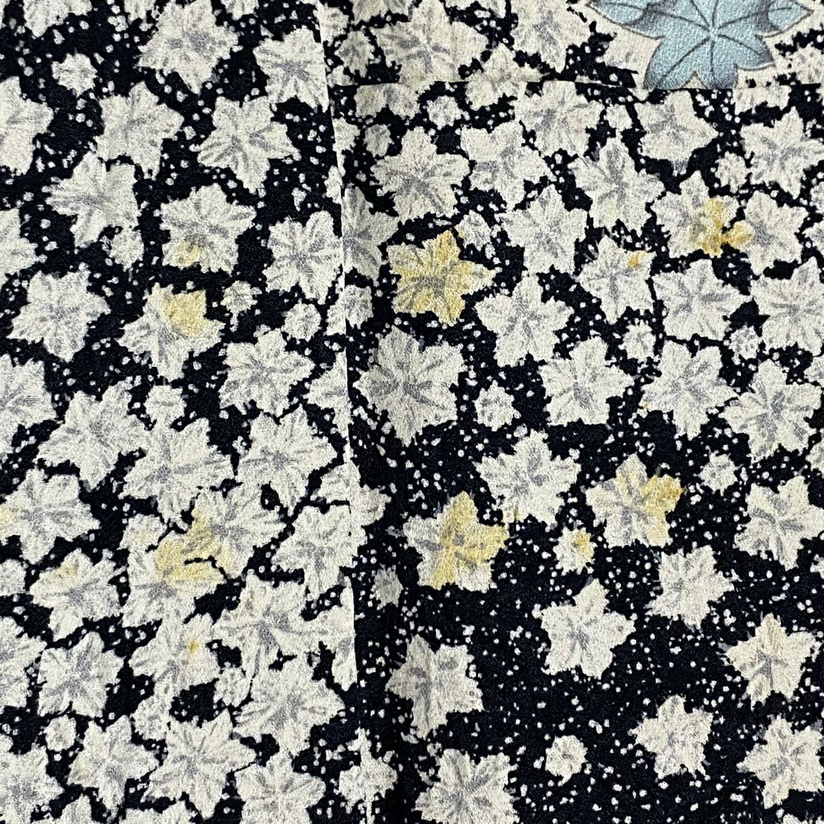 【在庫一掃】 訪問着 身丈157cm 裄丈62cm S 袷 楓 花 黒灰 正絹 名品