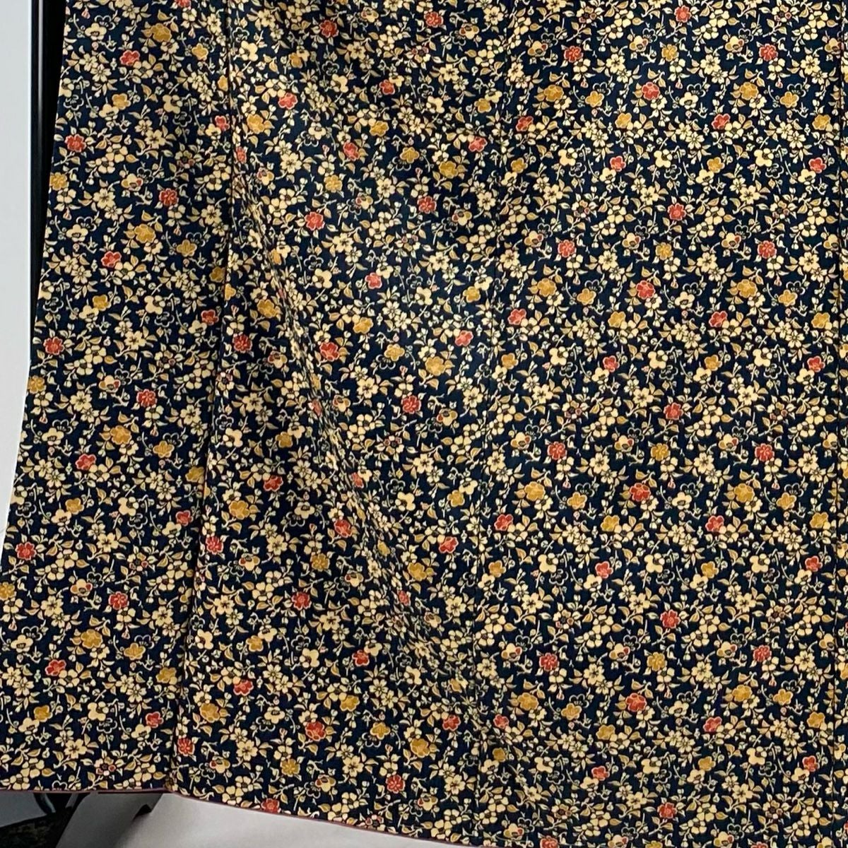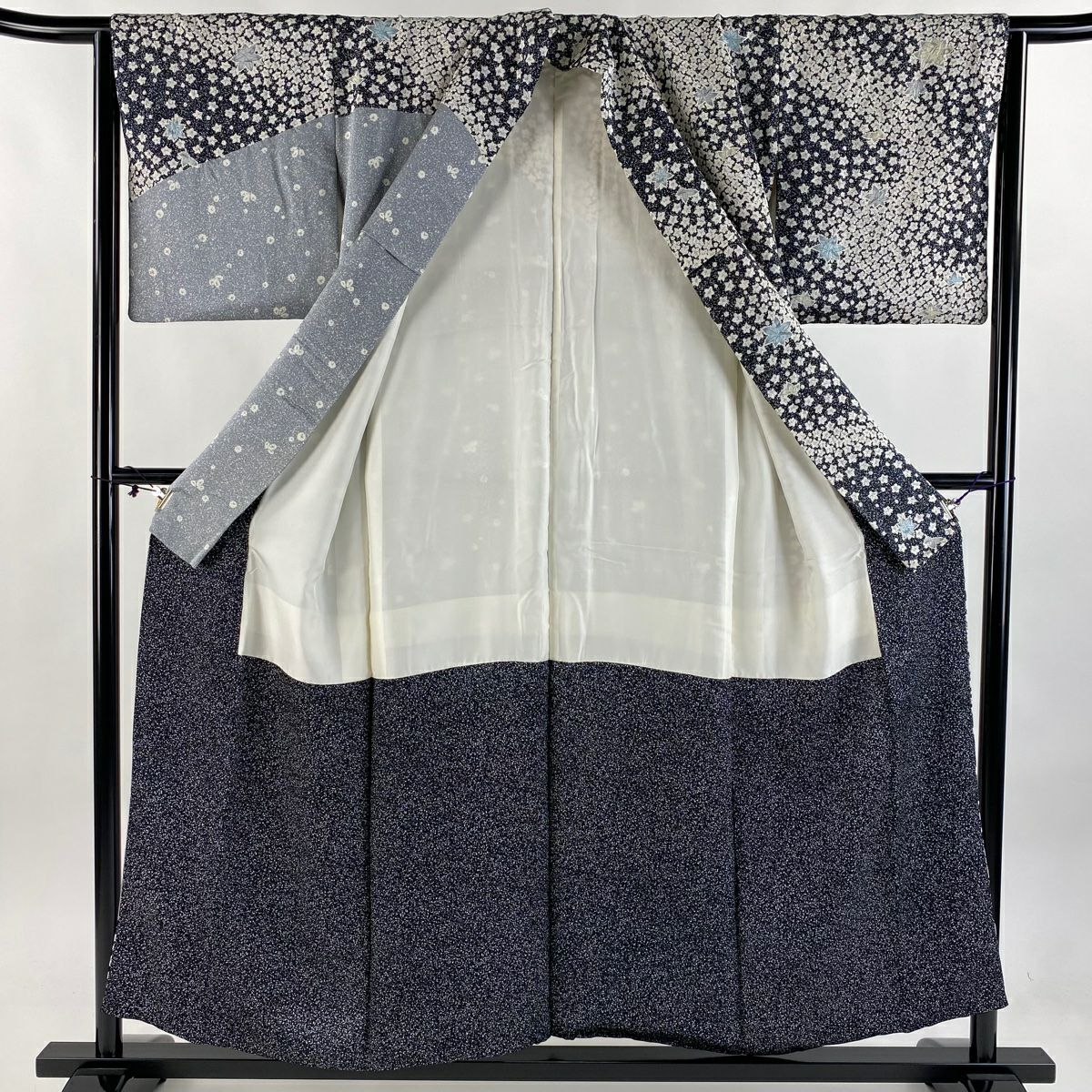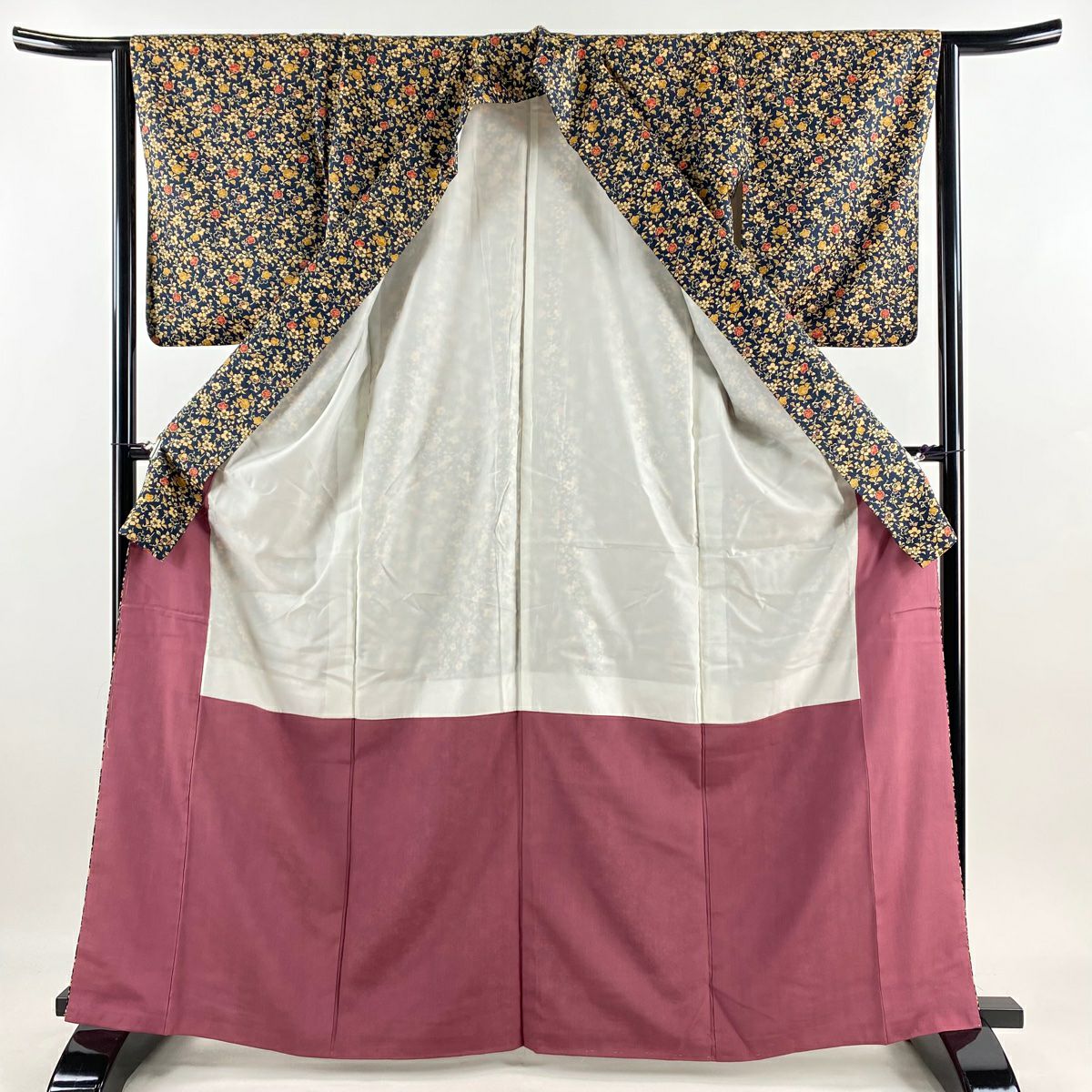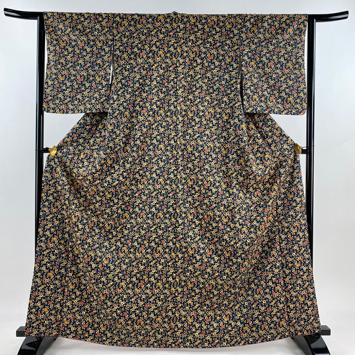 【在庫一掃】 【美品】 小紋 身丈164cm 裄丈63cm S 袷 草花 地紋 濃紺 化繊 優品