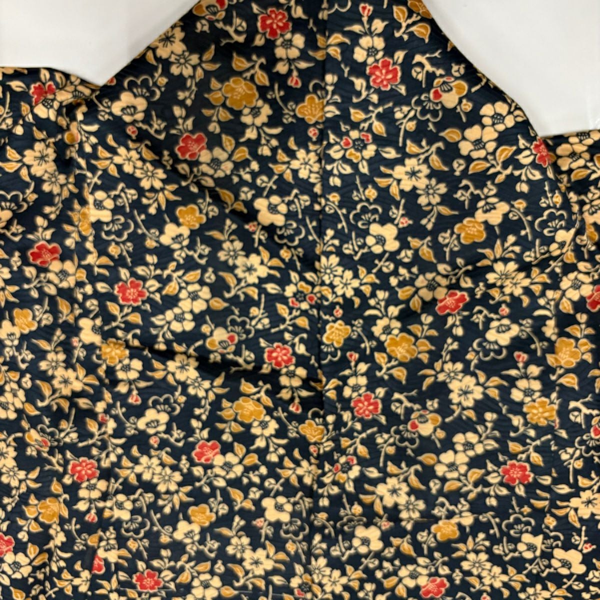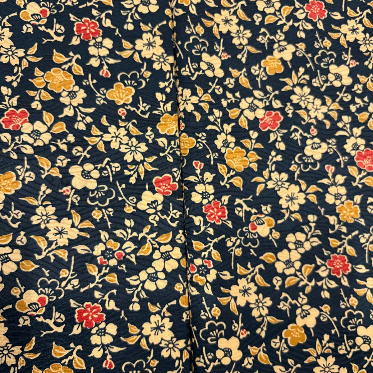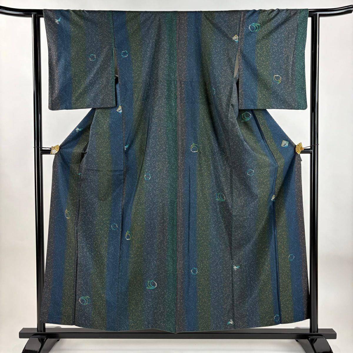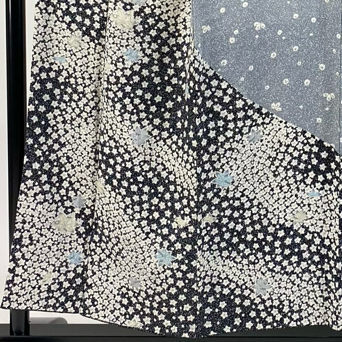 【在庫一掃】 【美品】 小紋 身丈164cm 裄丈63cm S 袷 草花 地紋 濃紺 化繊 優品